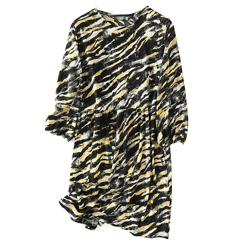 Летнее платье, лонгслив с круглым воротником, длинная юбка, в корейском стиле, свободный крой, средней длины