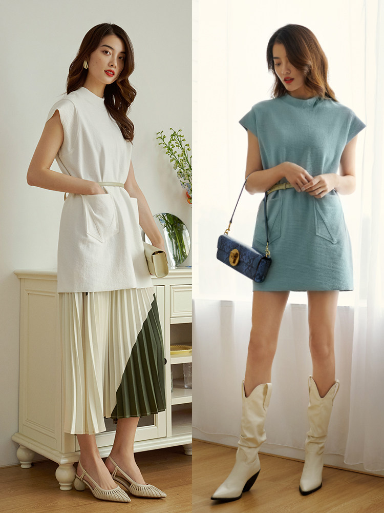 Жилет, платье без рукавов, (в наличии на складе), французский стиль, свободный прямой крой