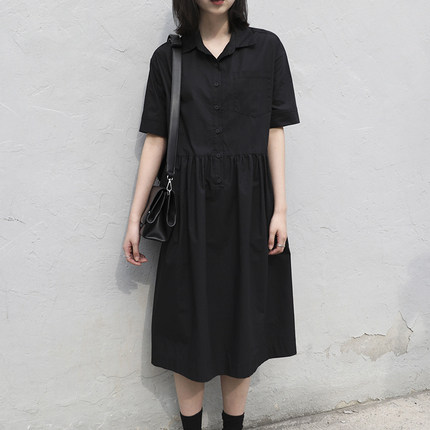 Платье, длинная юбка, свободный крой, воротник поло, длина миди
