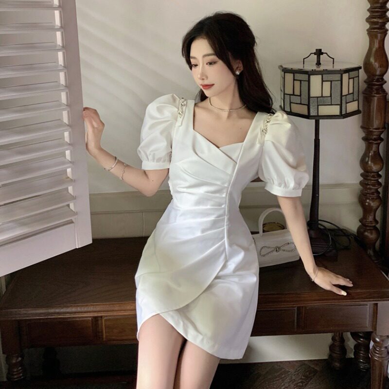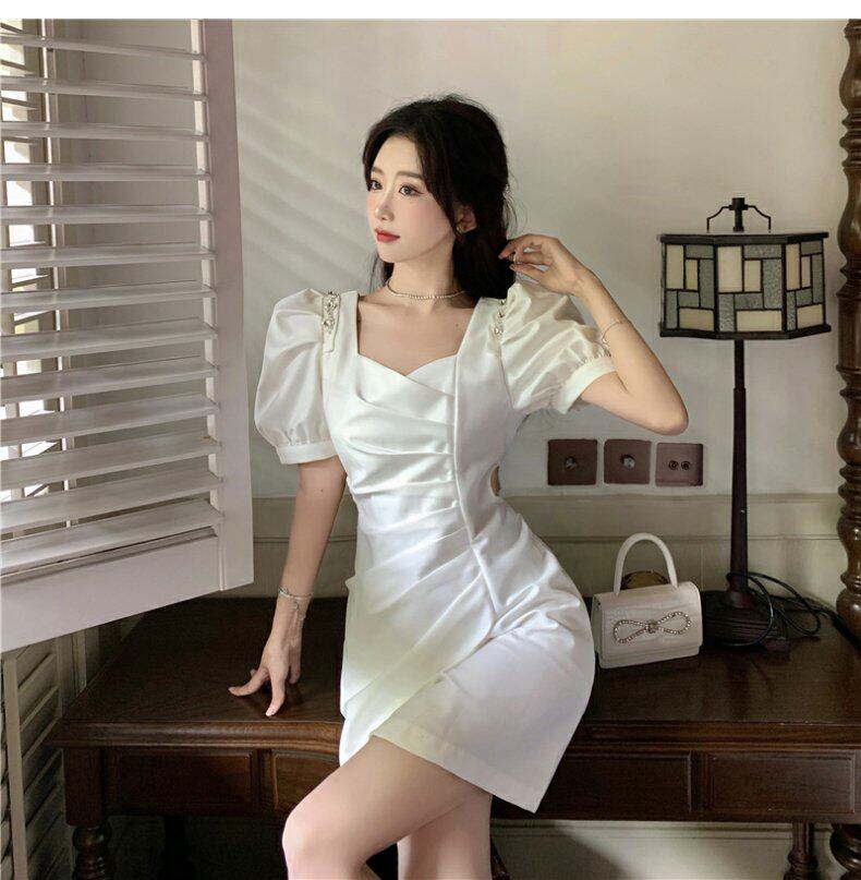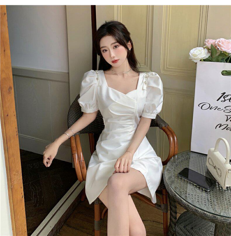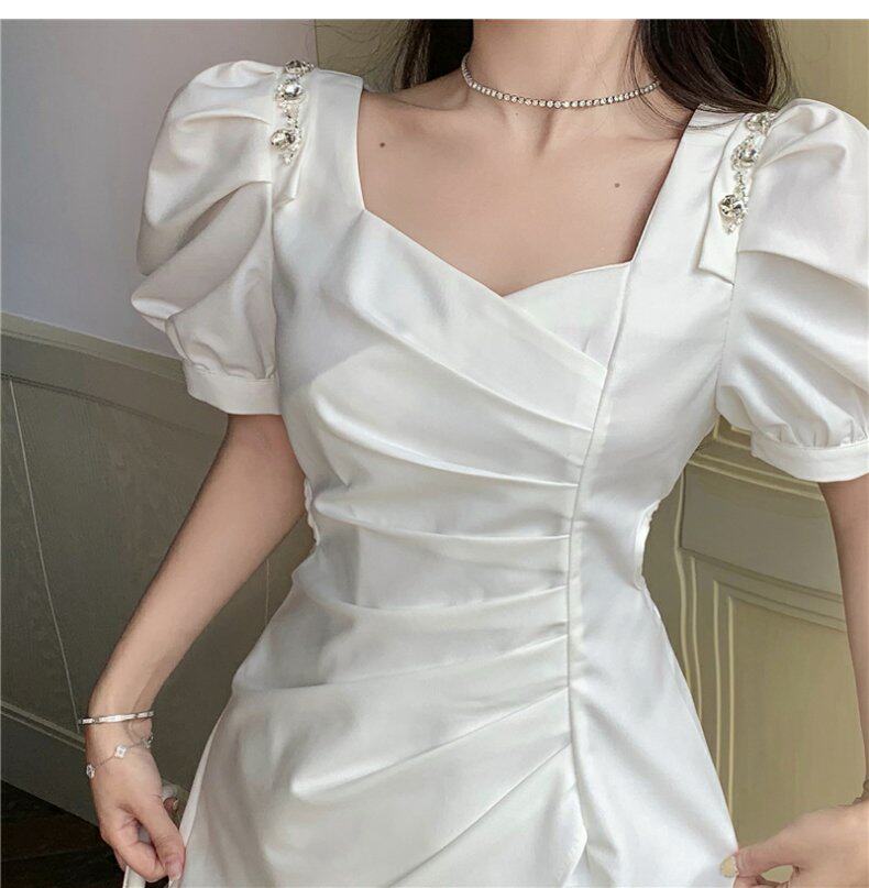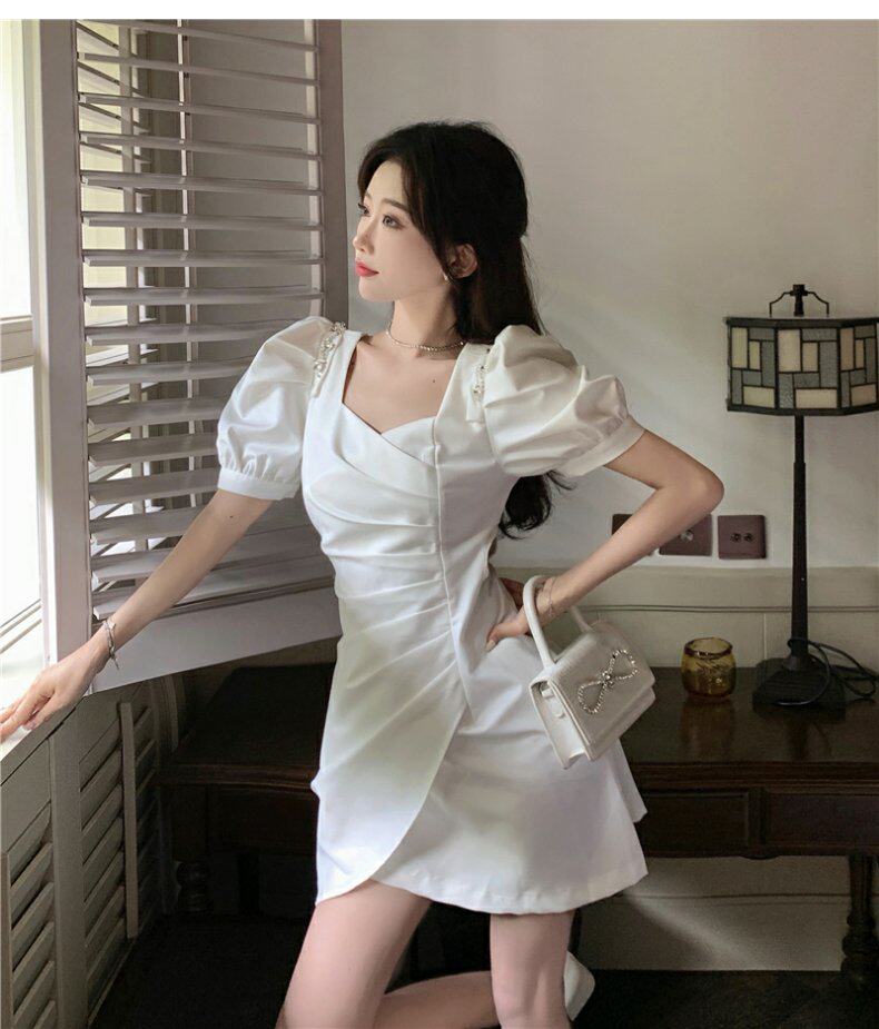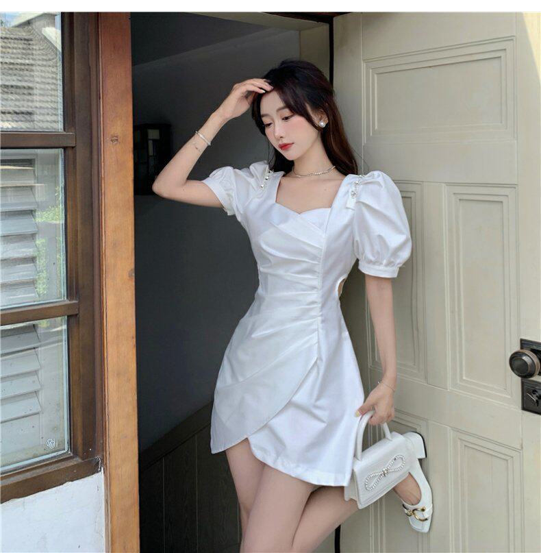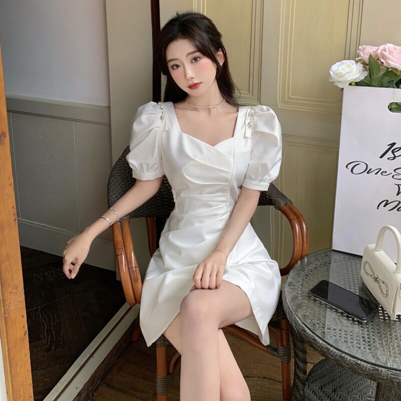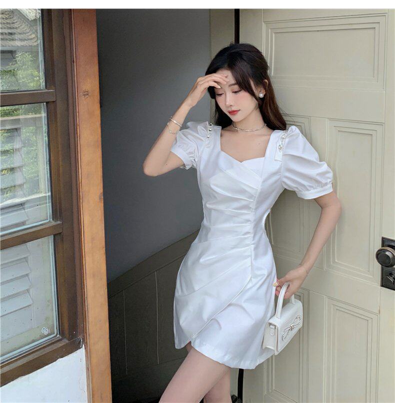 Юбка, небольшое дизайнерское летнее платье, французский стиль, рукава фонарики, яркий броский стиль, изысканный стиль, подходит для подростков