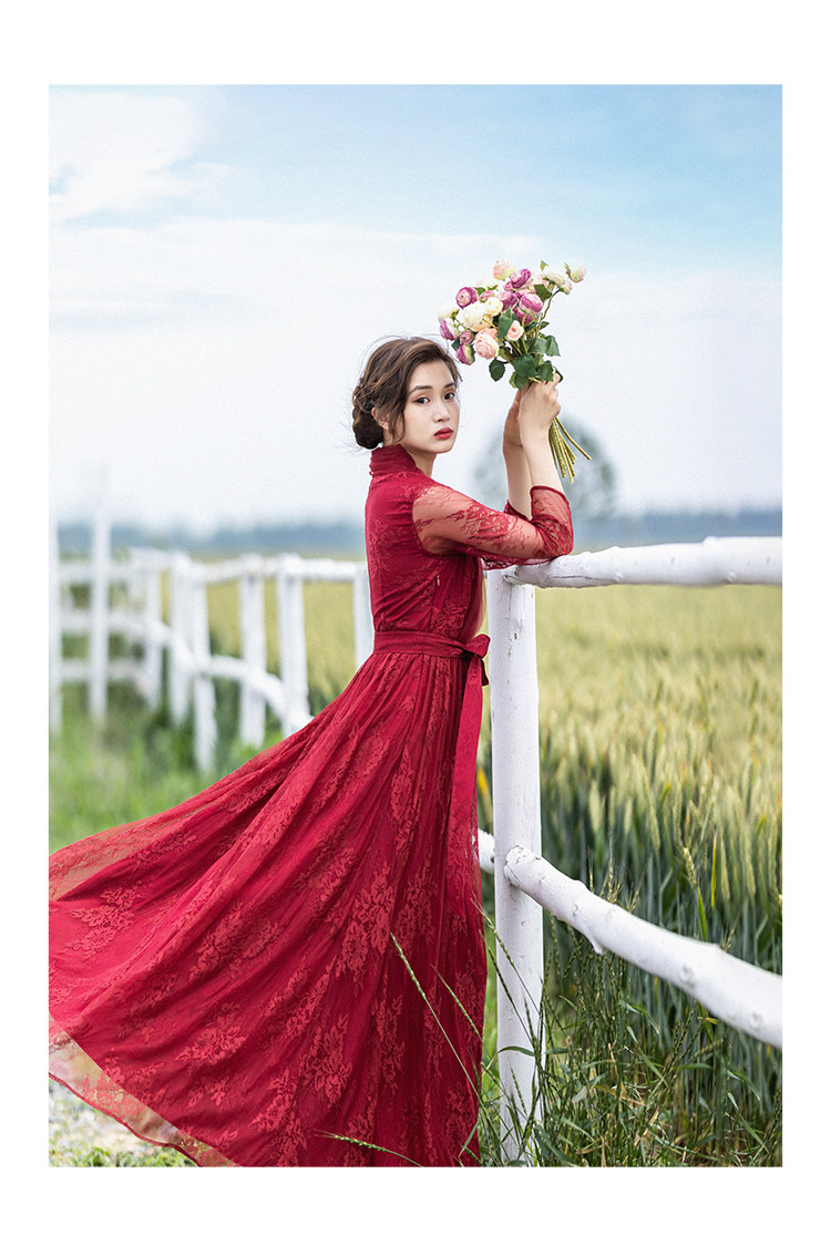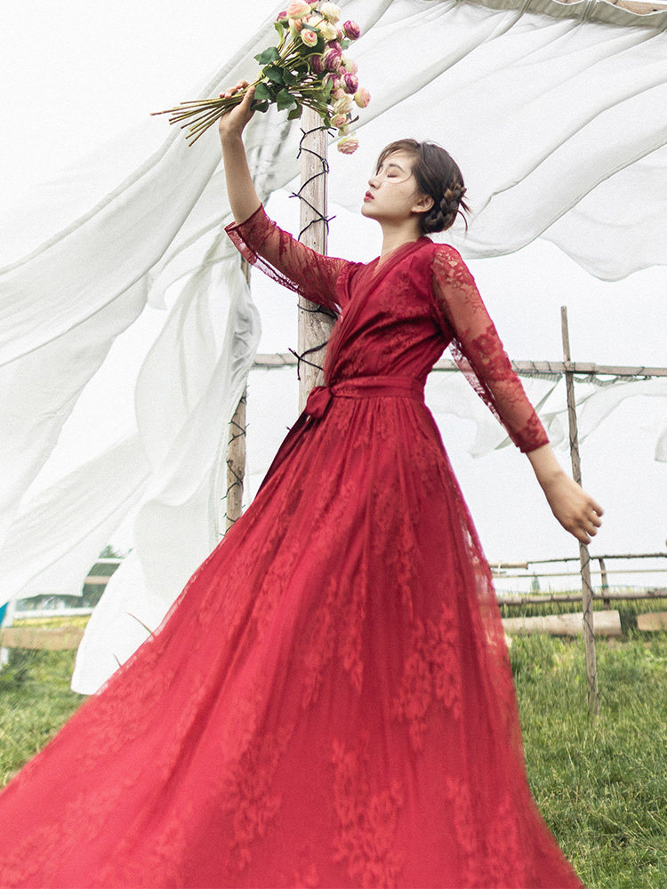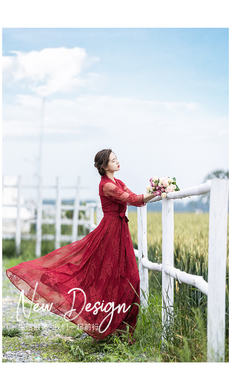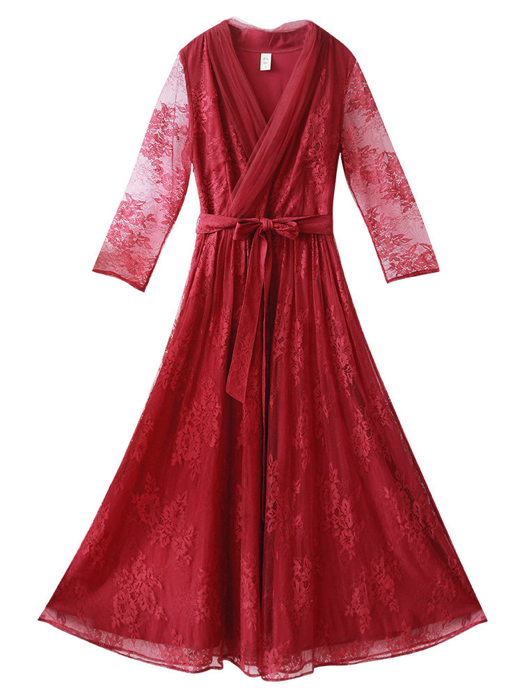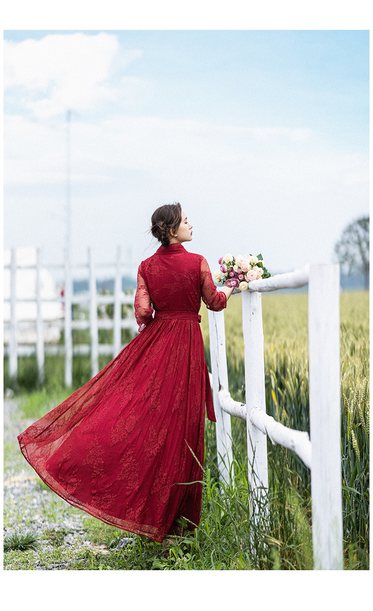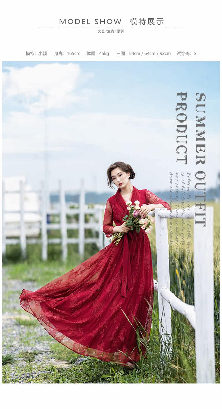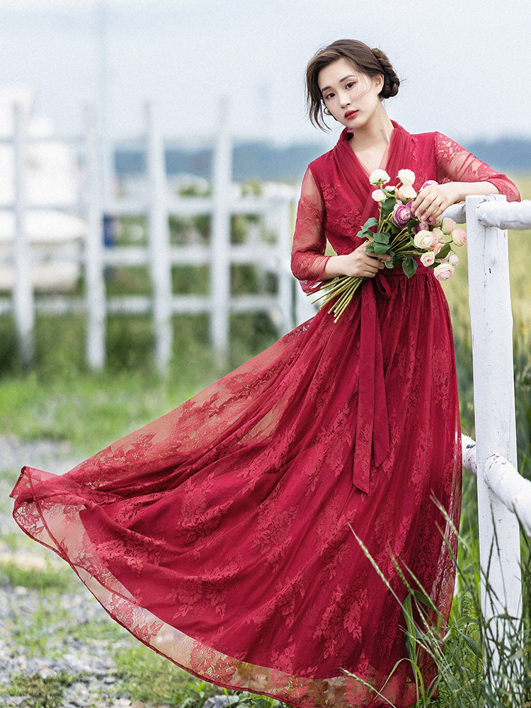 Кружевное летнее платье, ретро красная длинная юбка, высокая талия