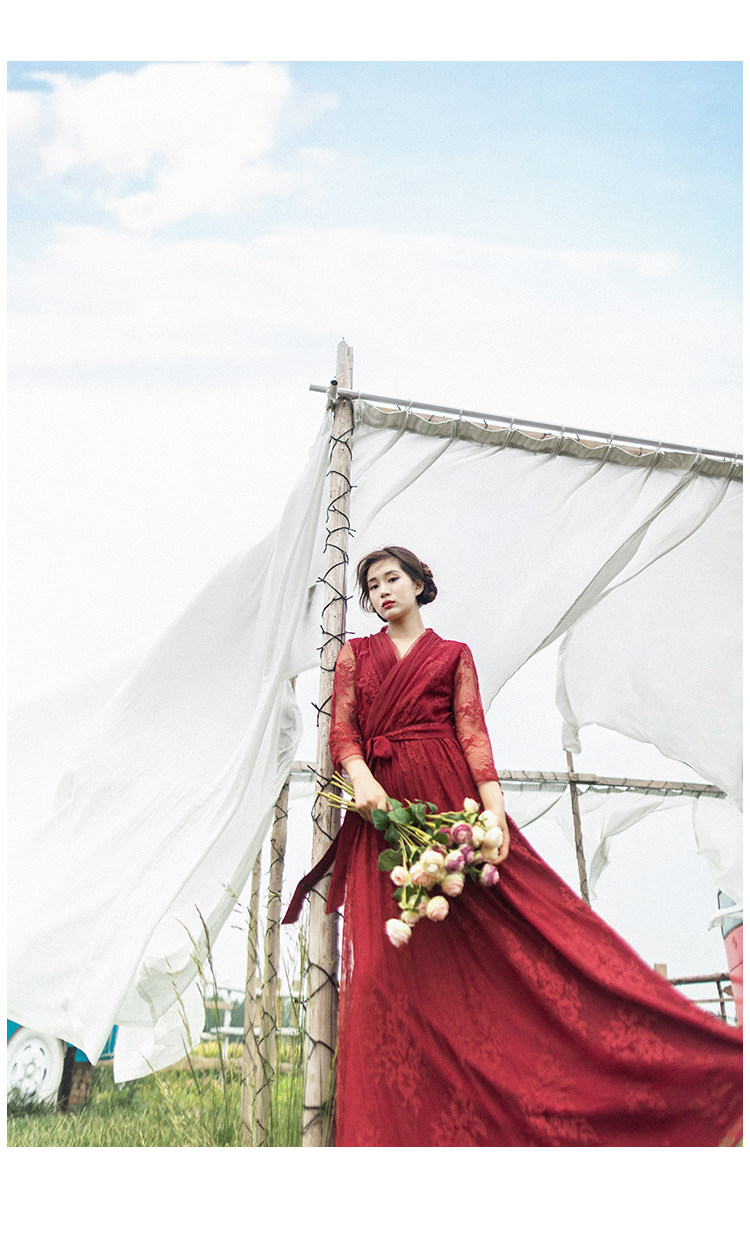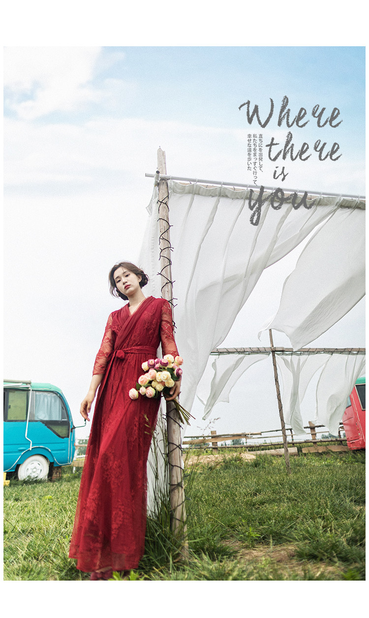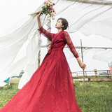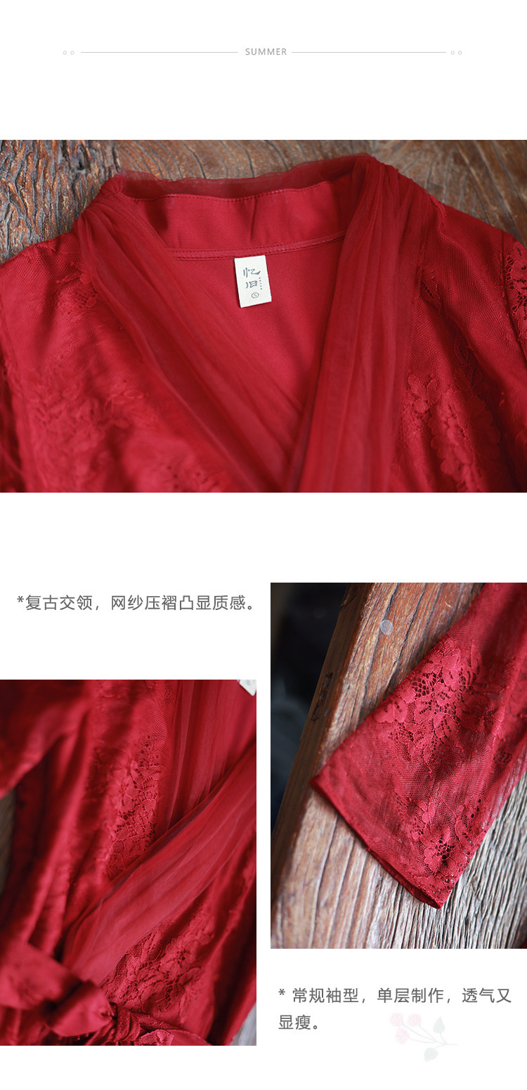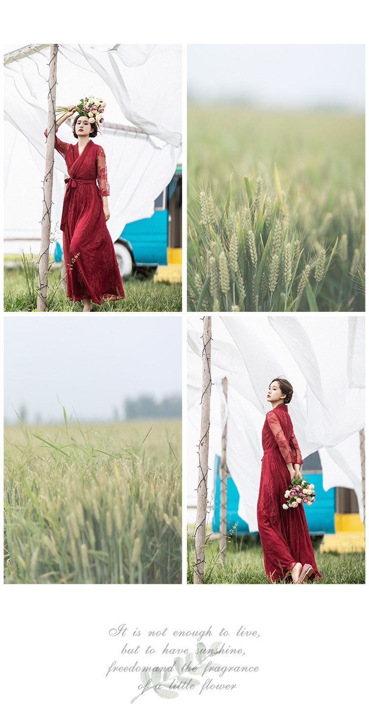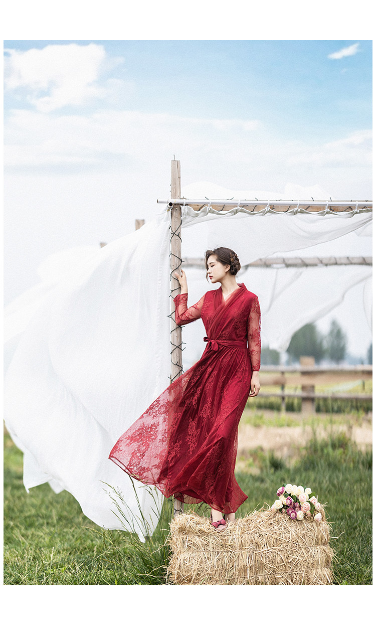 Кружевное летнее платье, ретро красная длинная юбка, высокая талия