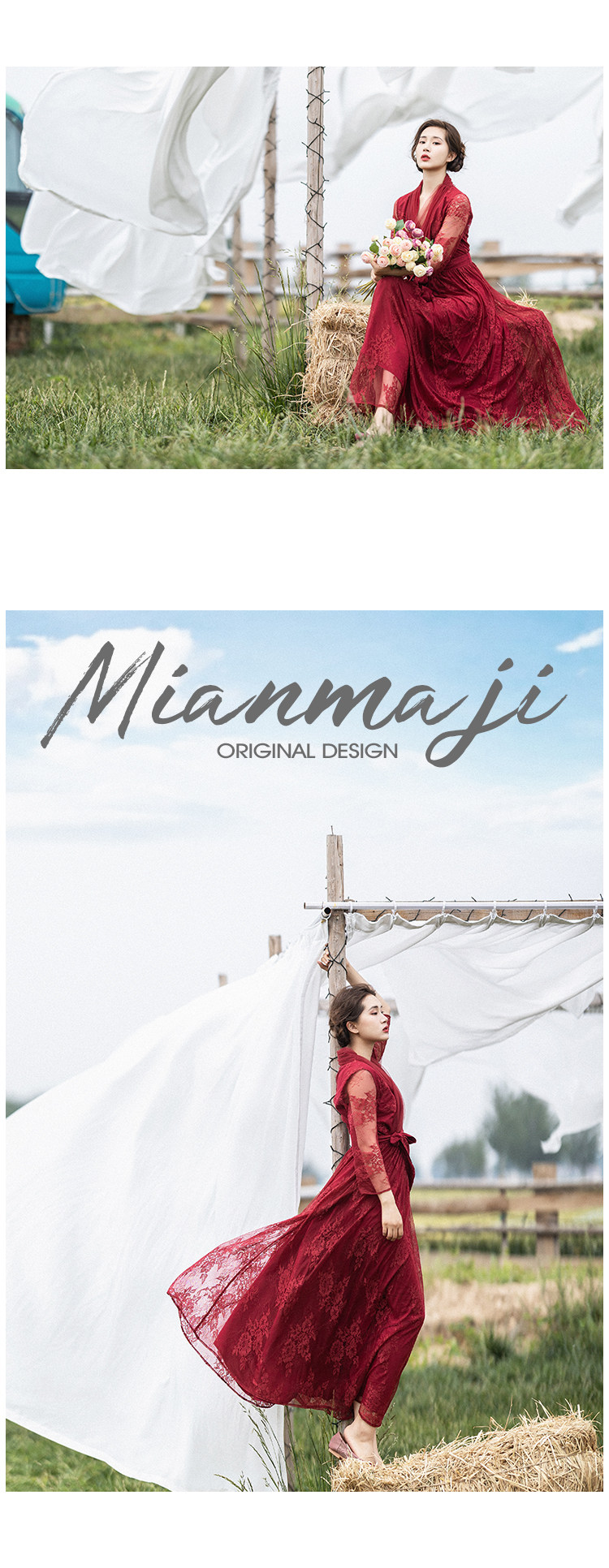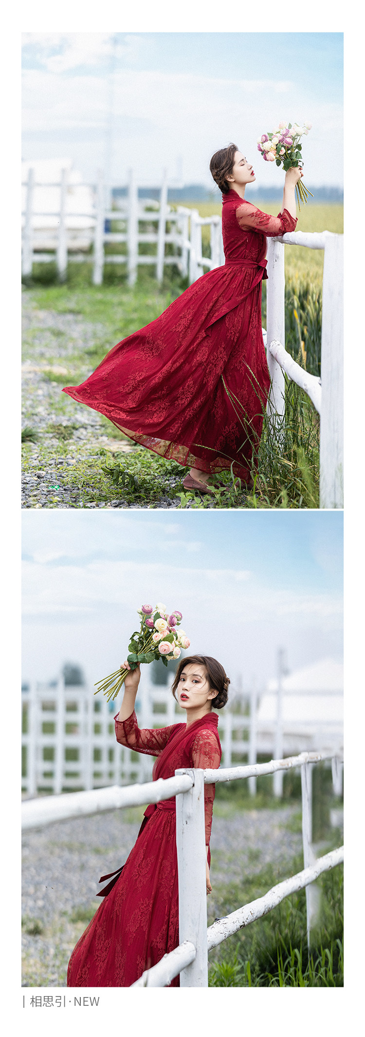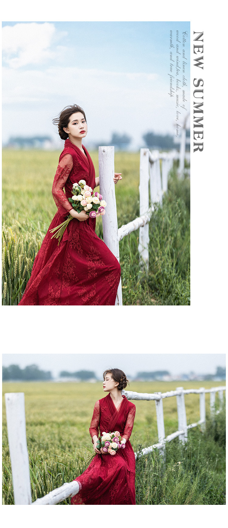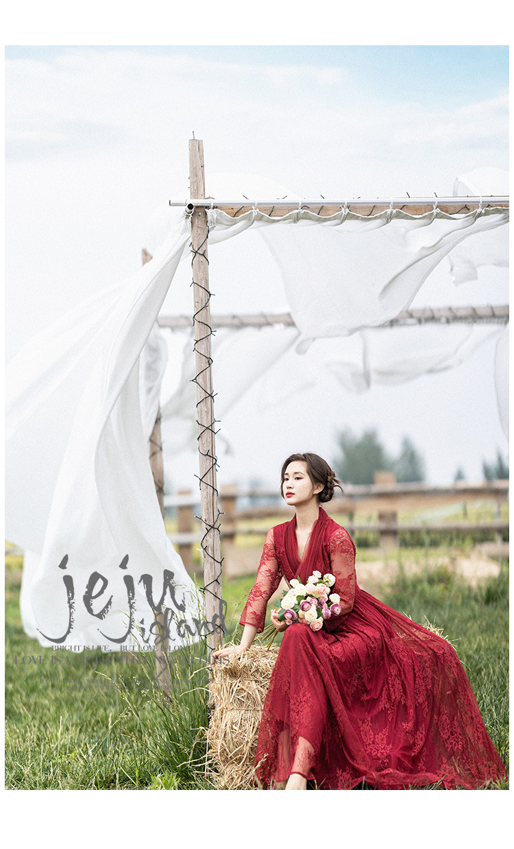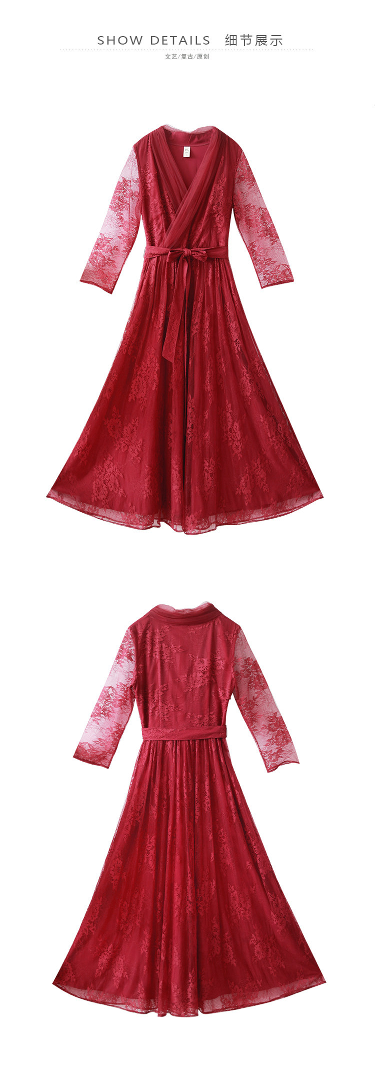 Кружевное летнее платье, ретро красная длинная юбка, высокая талия