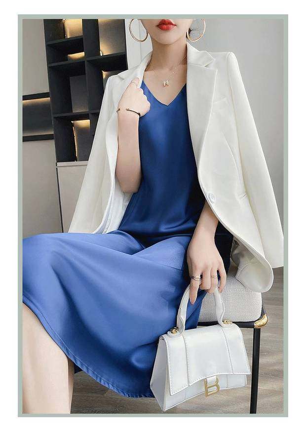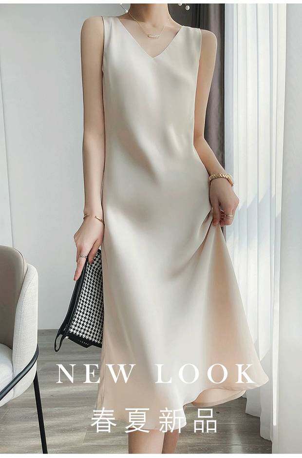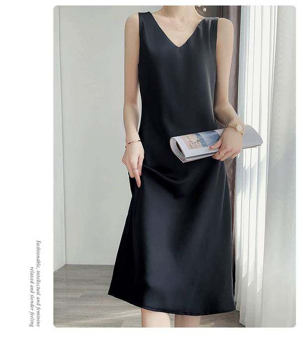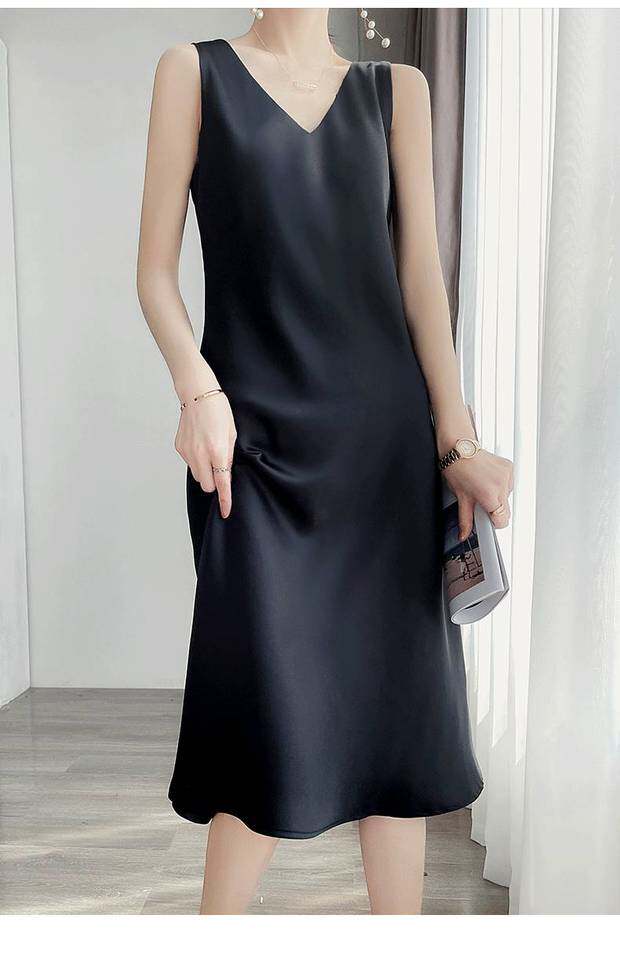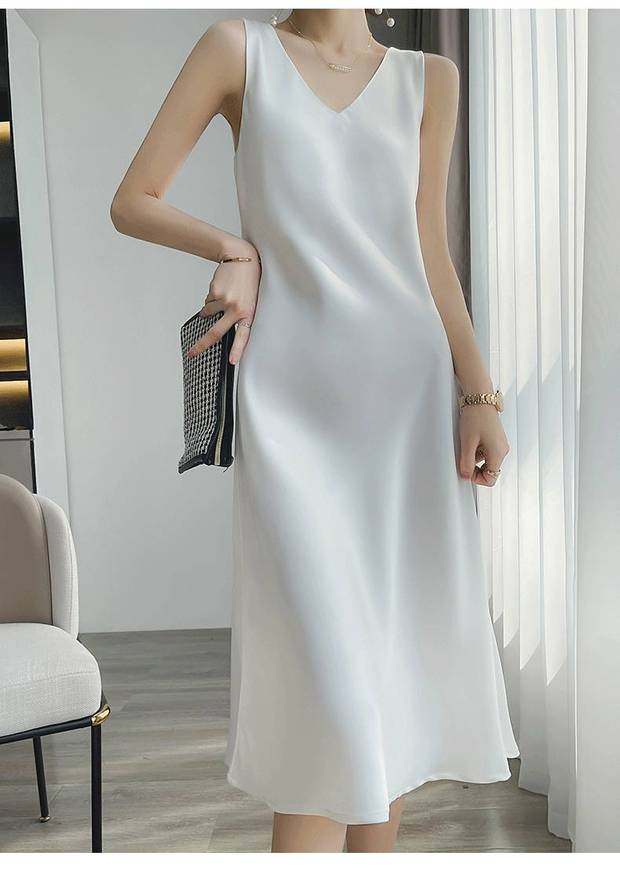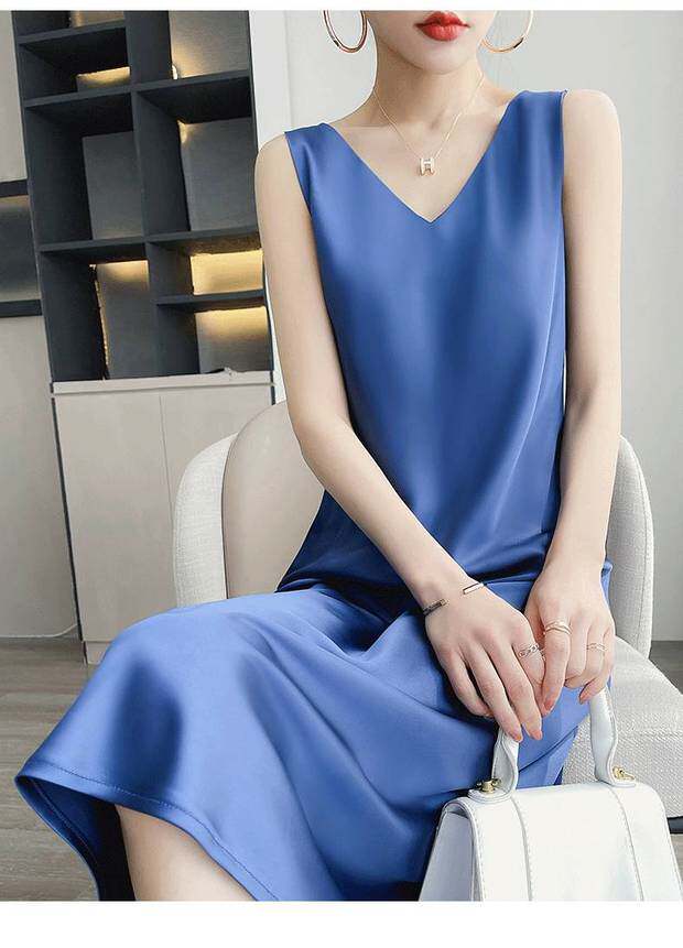 Шелковое летнее платье, длинная юбка без рукавов, изысканный стиль, средней длины