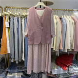 Весенний пиджак классического кроя, жилет, платье, комплект, в цветочек, яркий броский стиль
