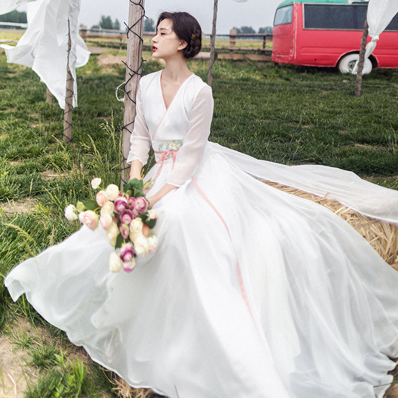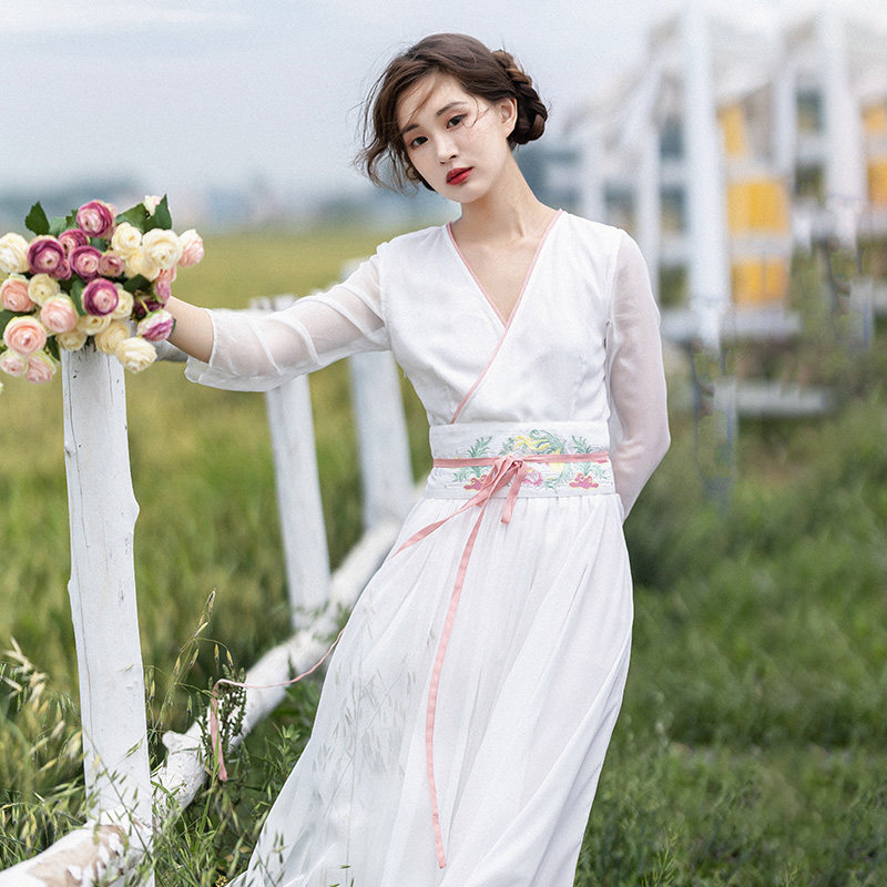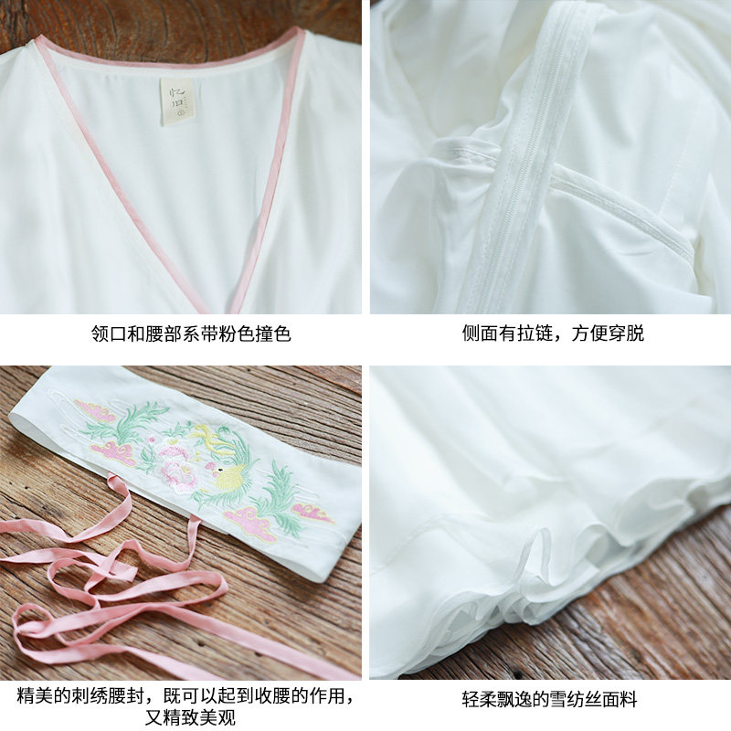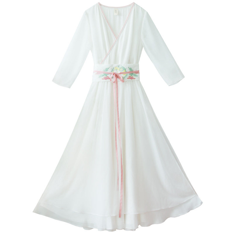 Ретро платье, белая шифоновая длинная юбка, китайский стиль, коллекция 2021