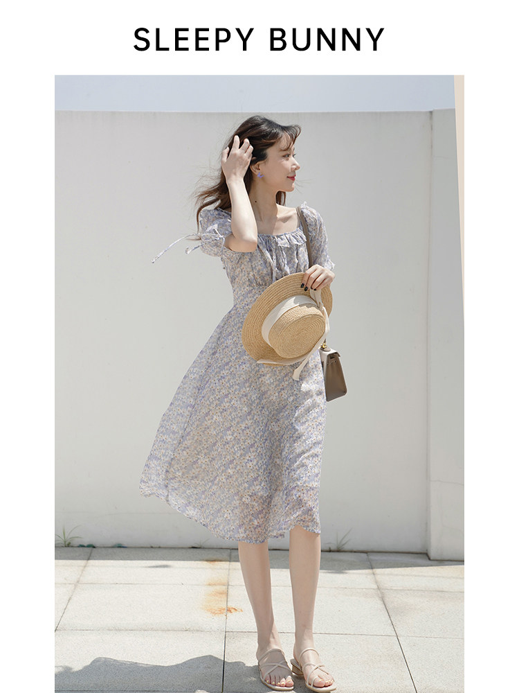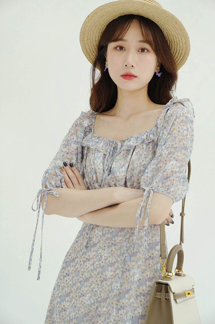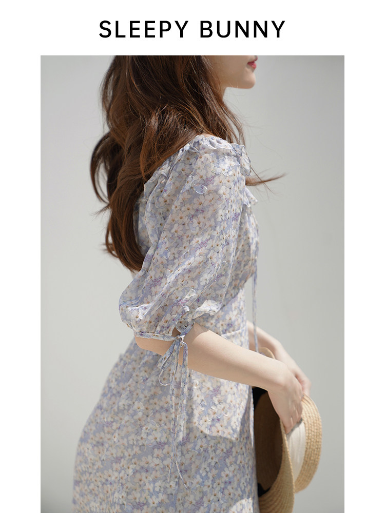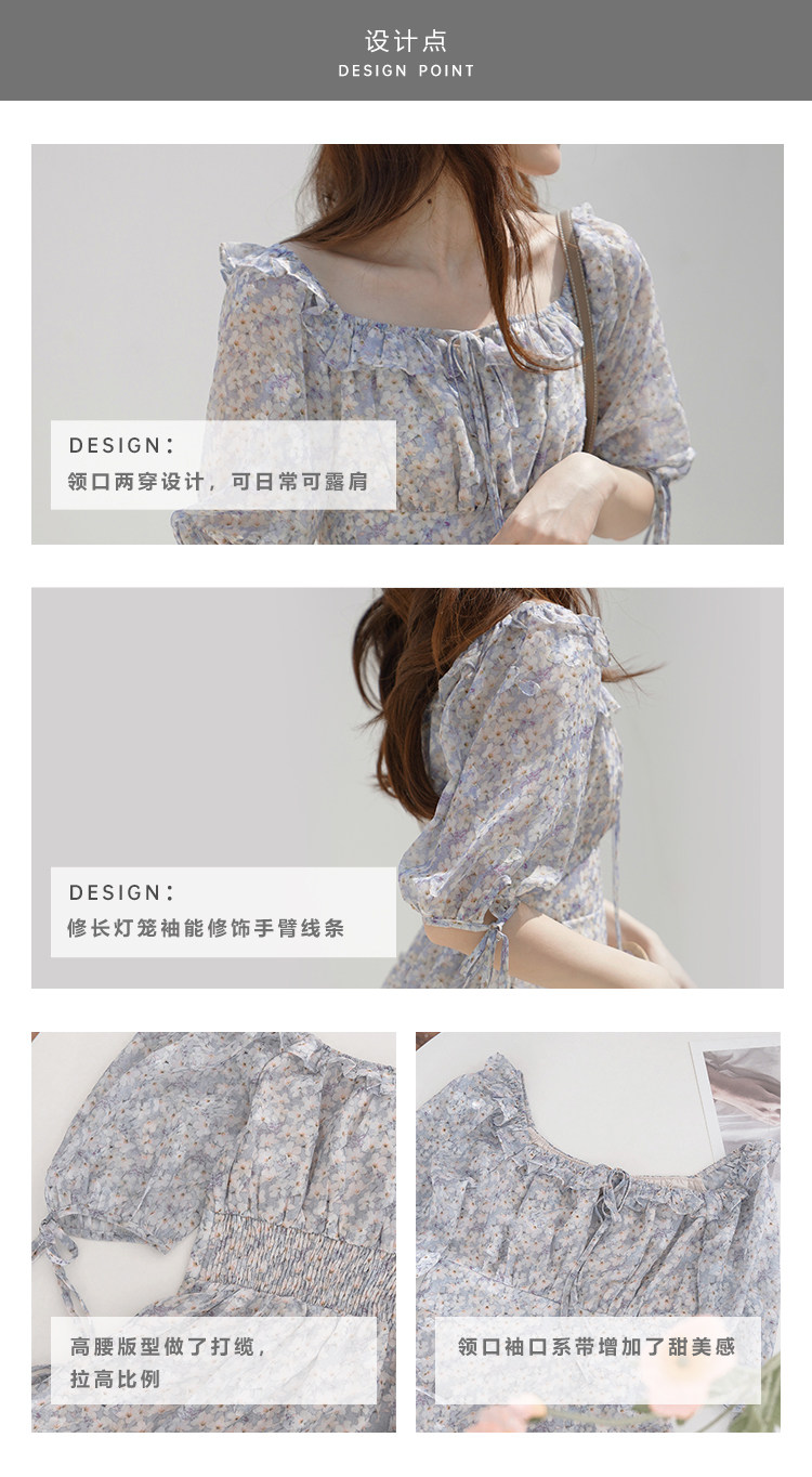 Шифоновое платье, юбка, квадратный вырез, высокая талия