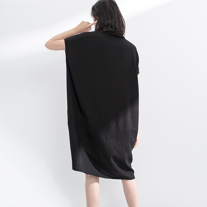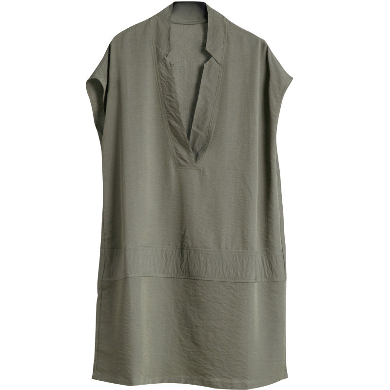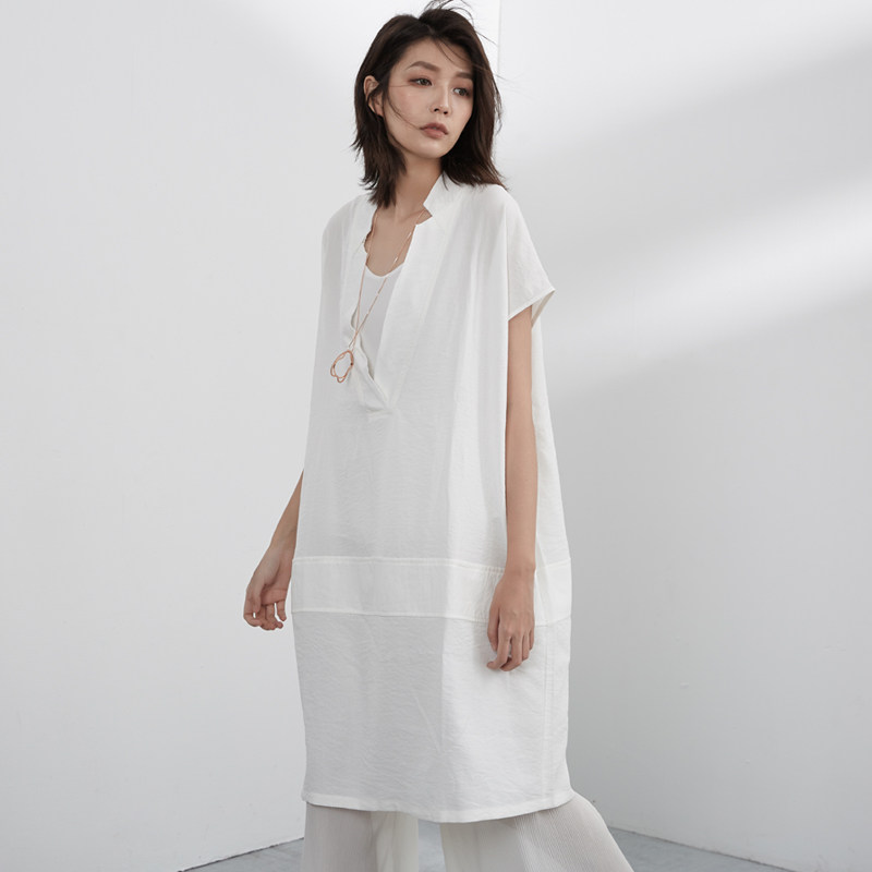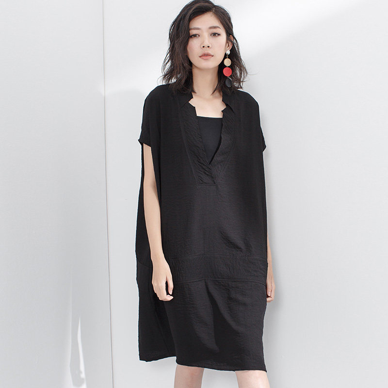 Оригинальное дизайнерское летнее длинное платье с коротким рукавом, V-образный вырез, свободный прямой крой, средней длины