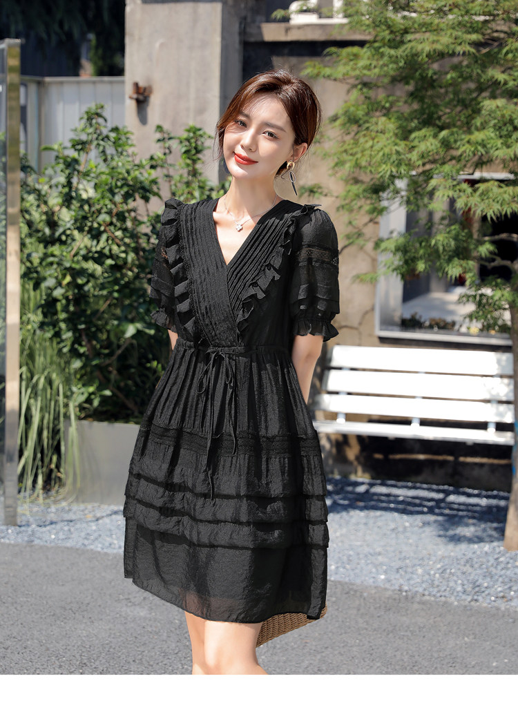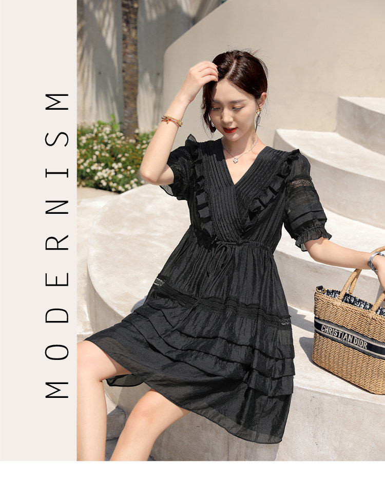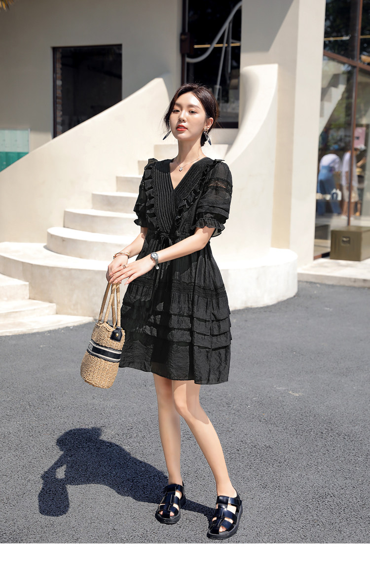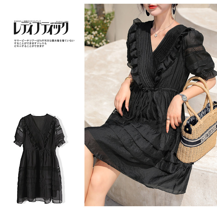 Платье, летний приталенный черный корсет, юбка, французский стиль, европейский стиль, юбка-пачка