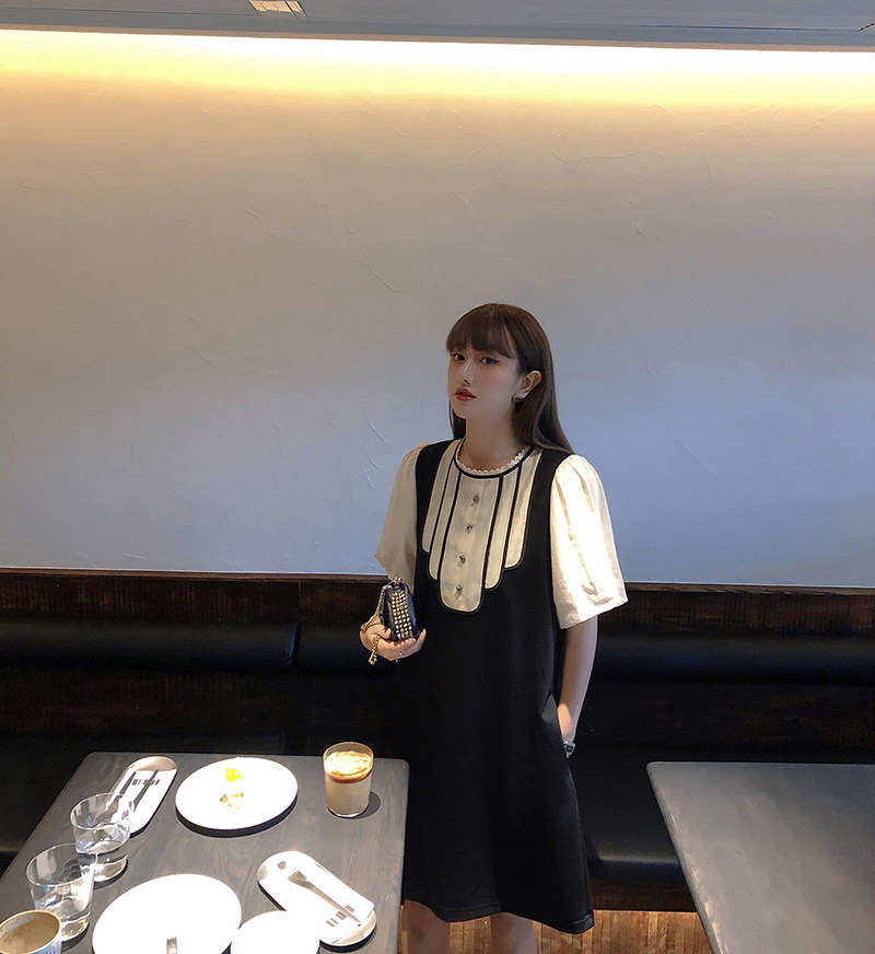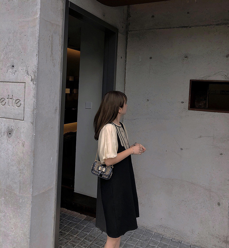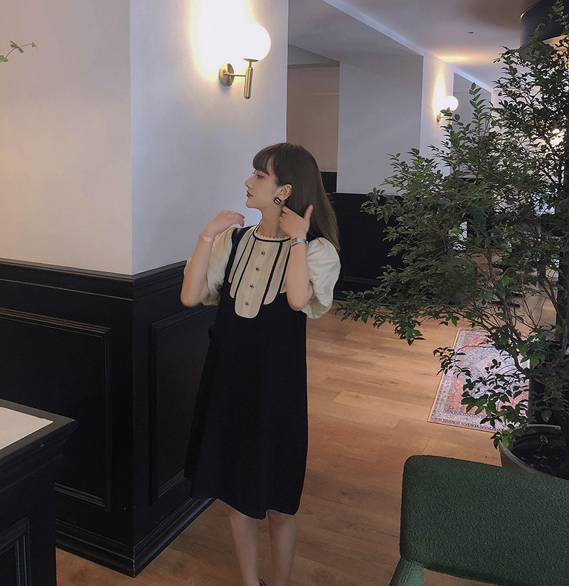 Черное тонкое летнее платье, свободный крой, короткий рукав, французский стиль