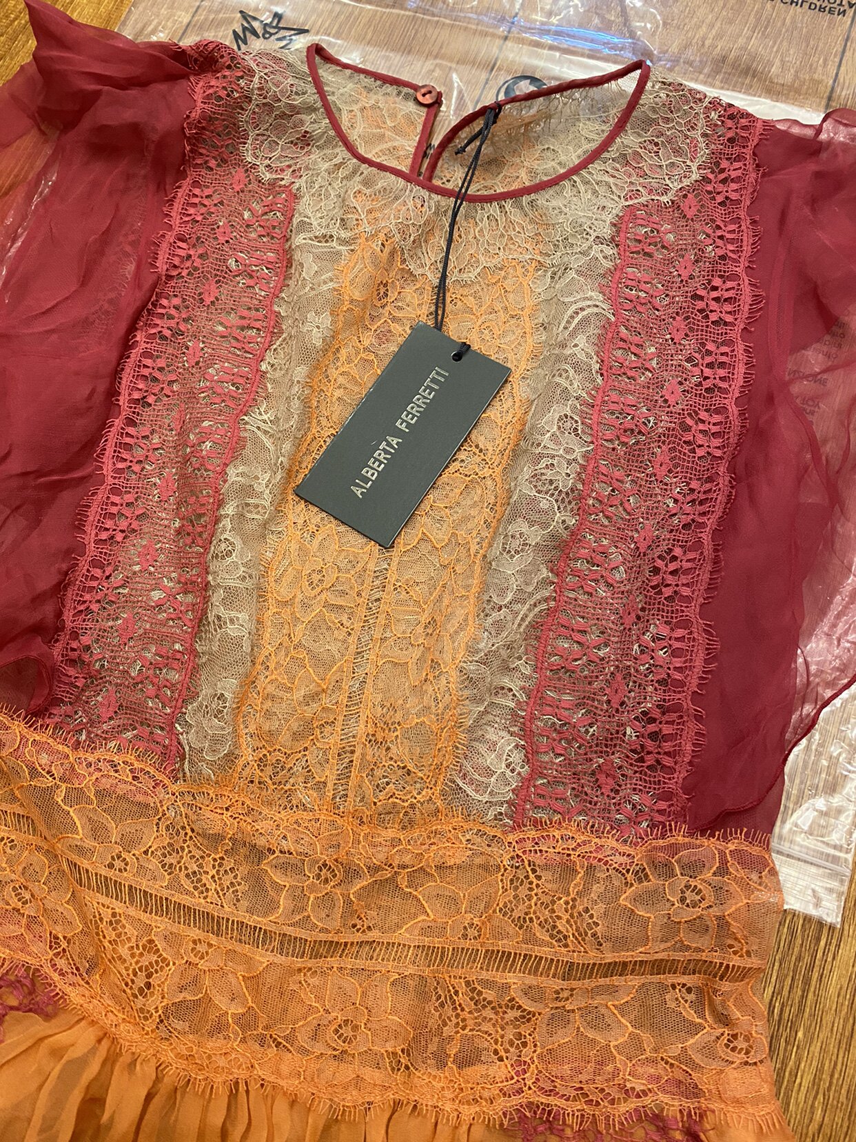 Платье Альберты Ферретти с шелковым кружевным шоу столовая $ 2850 размер IT38