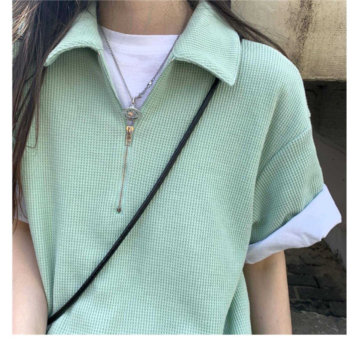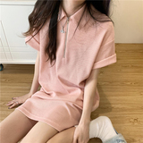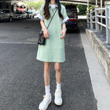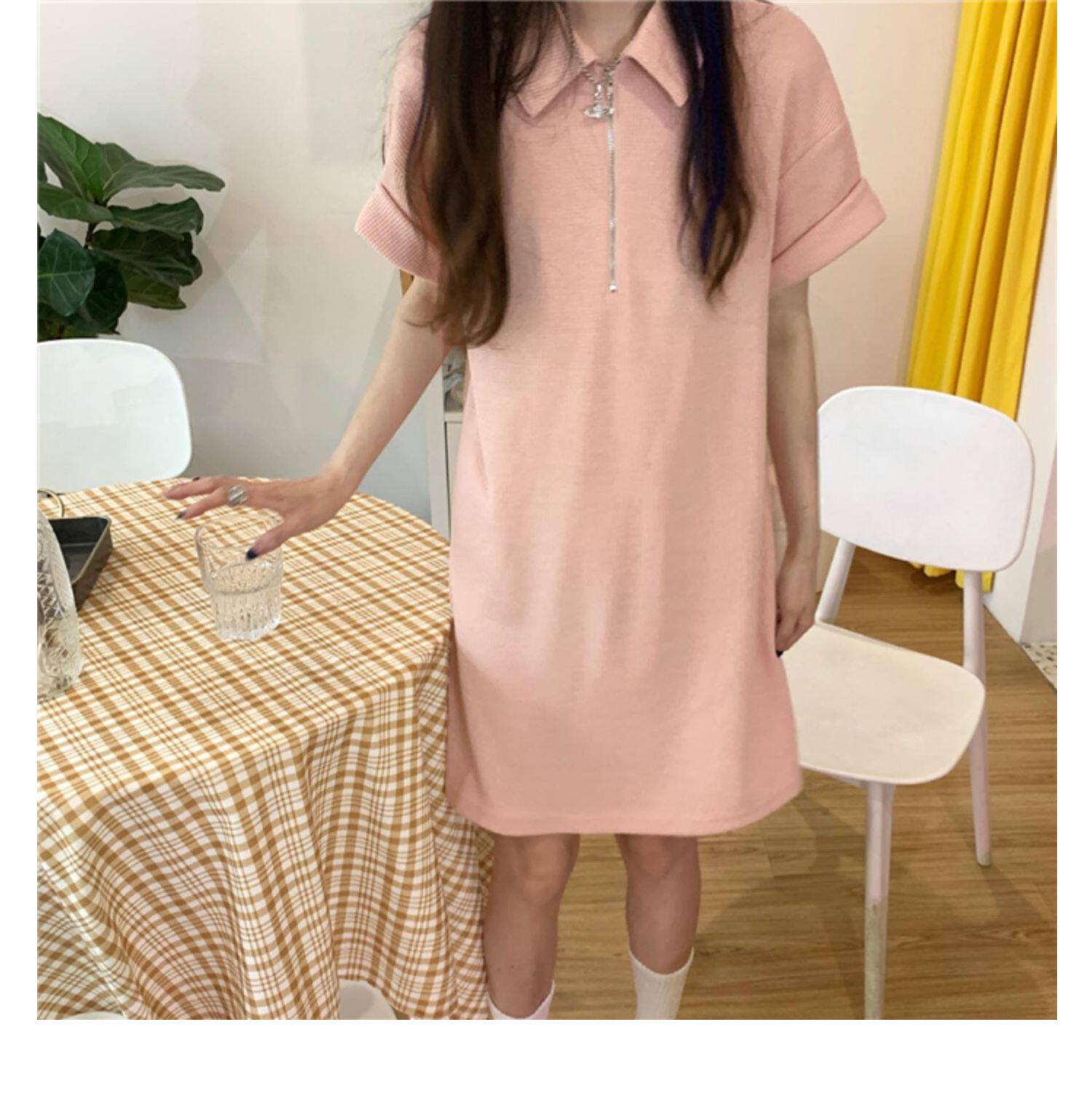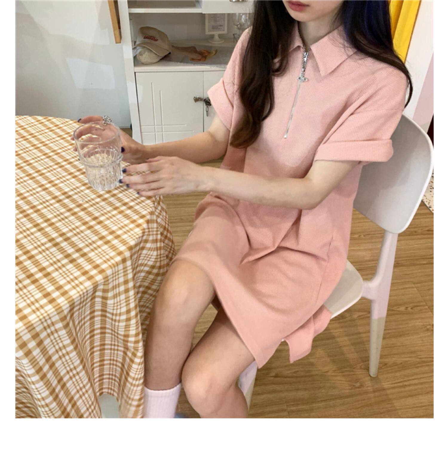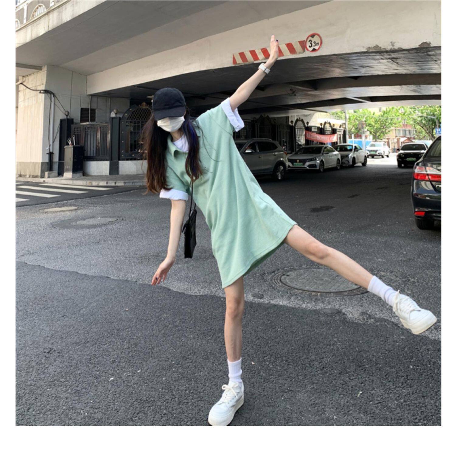 Японское мятное сексуальное платье, юбка, свободный прямой крой, воротник поло