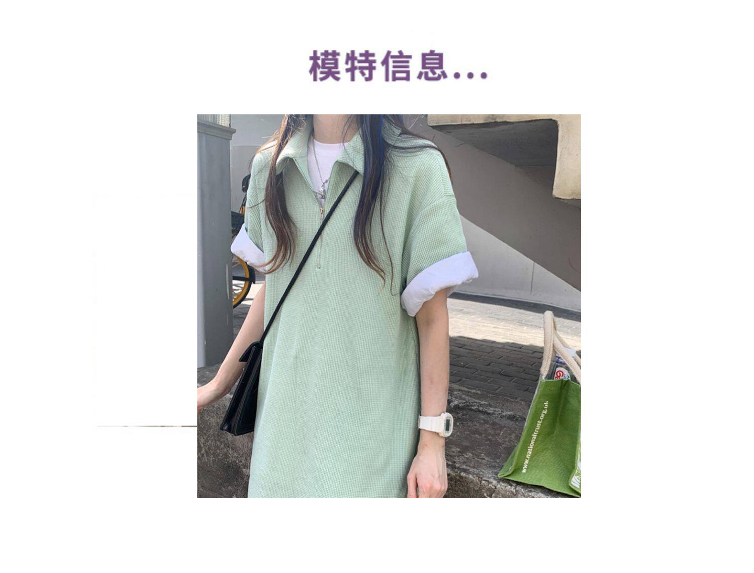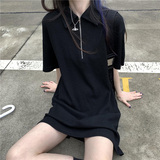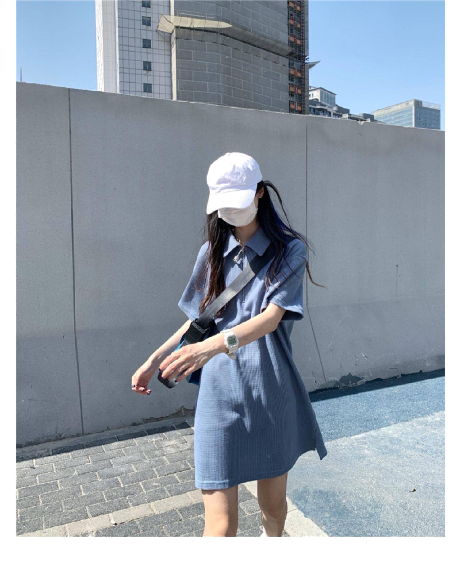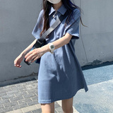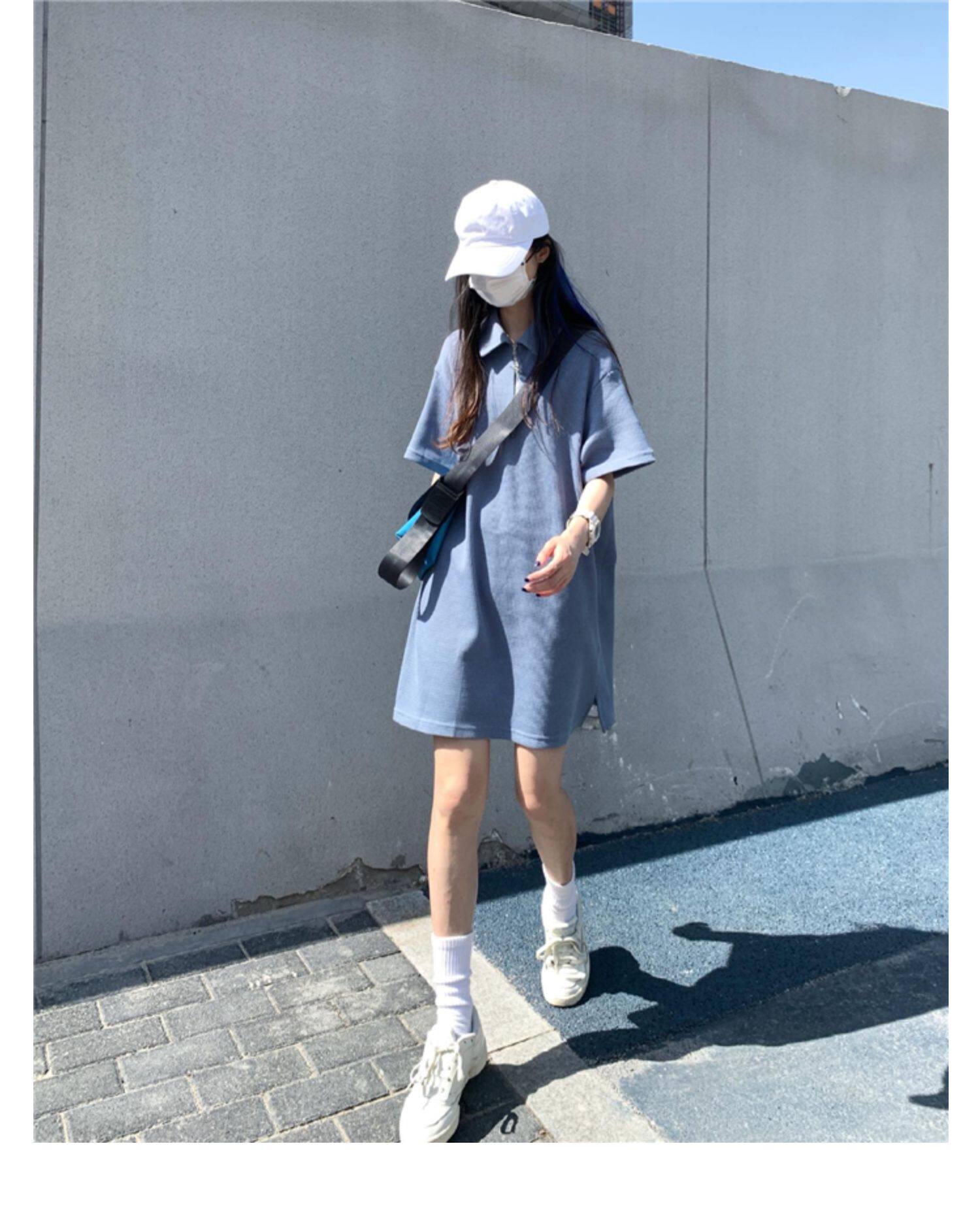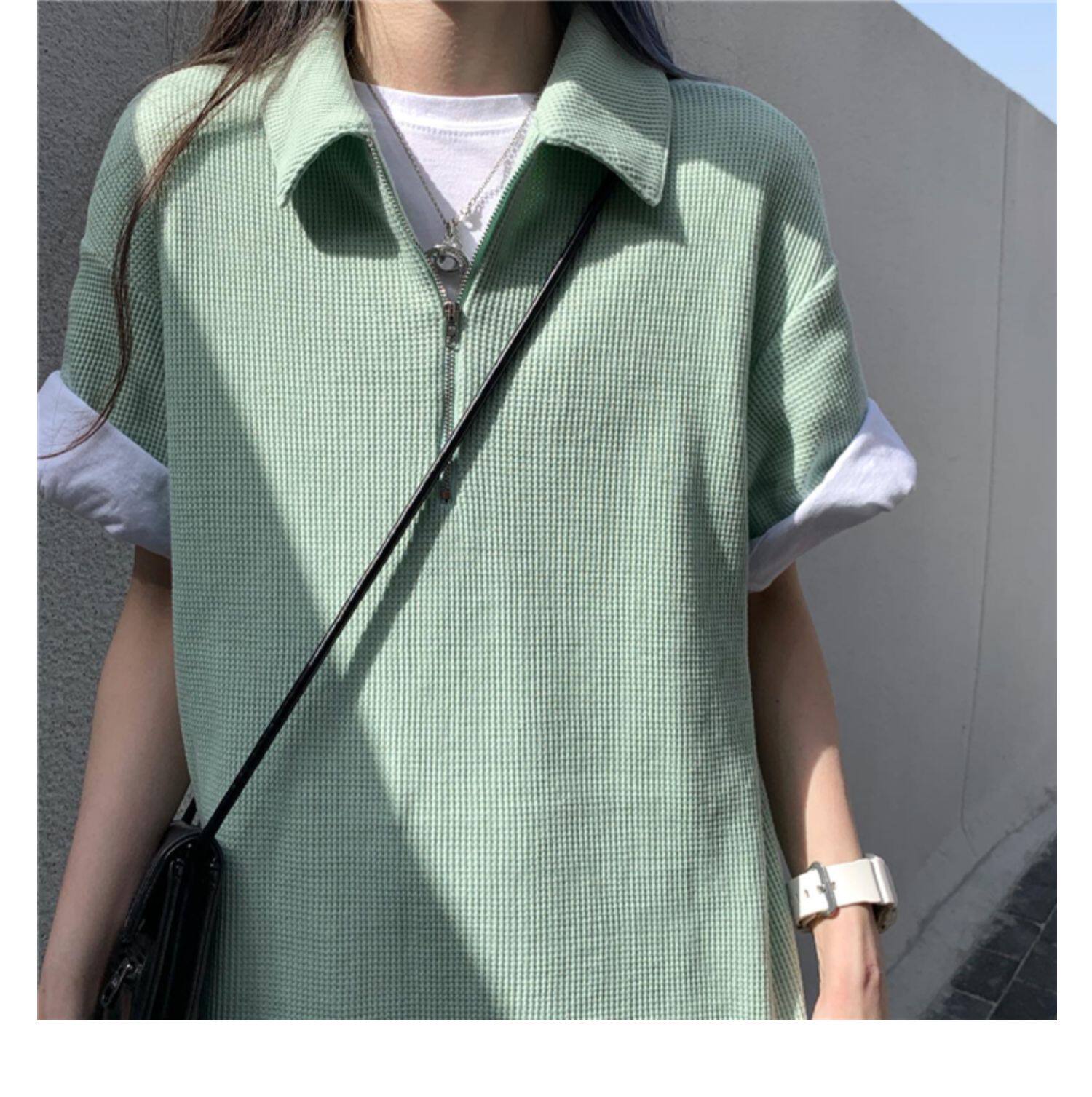 Японское мятное сексуальное платье, юбка, свободный прямой крой, воротник поло