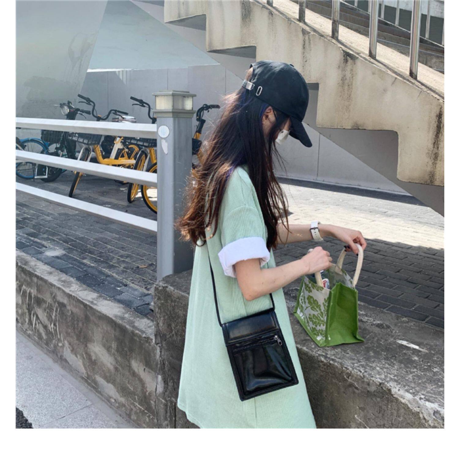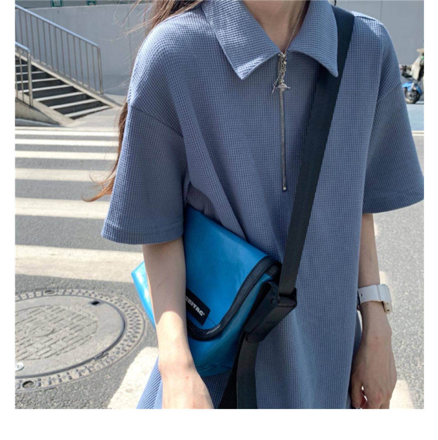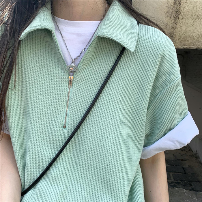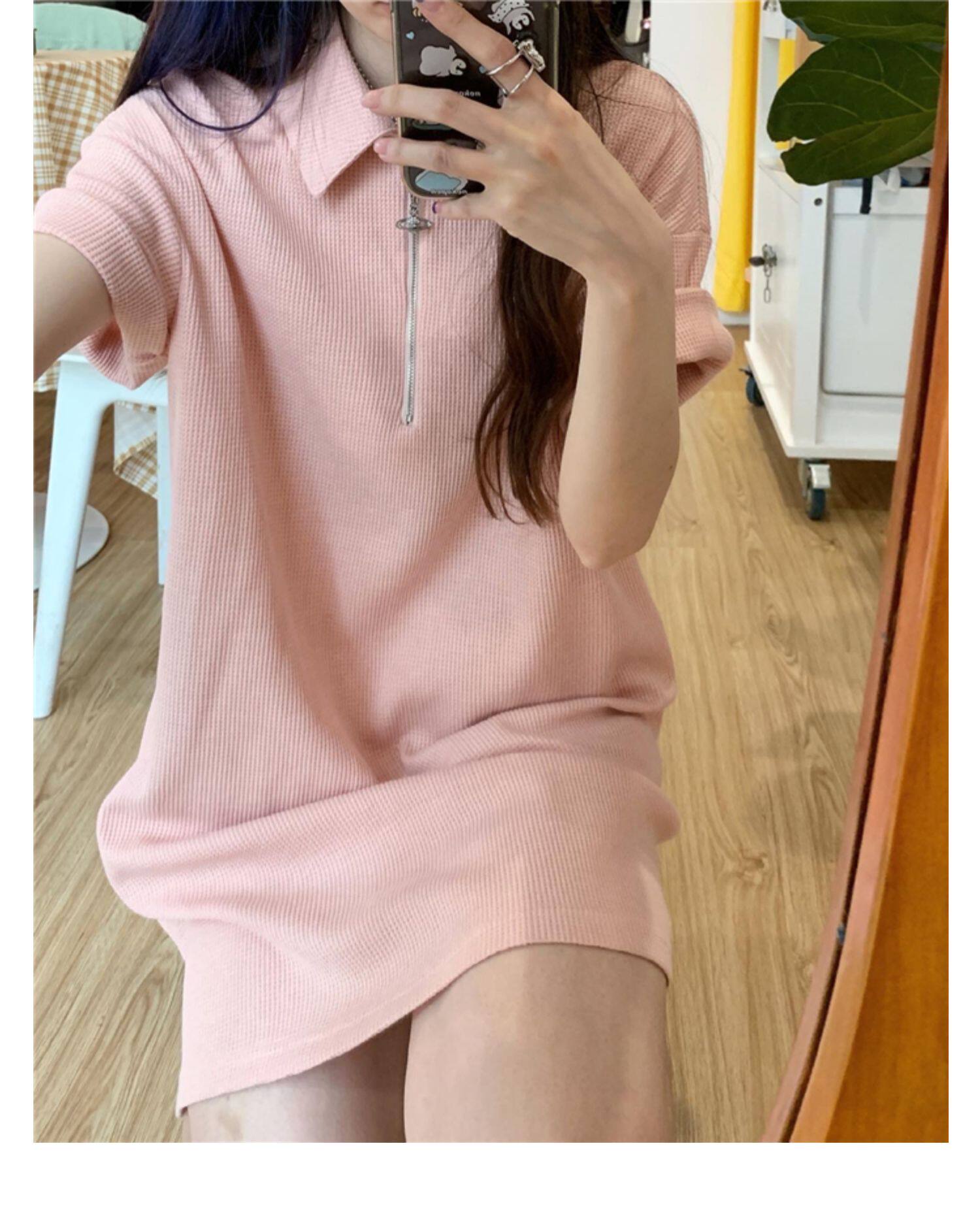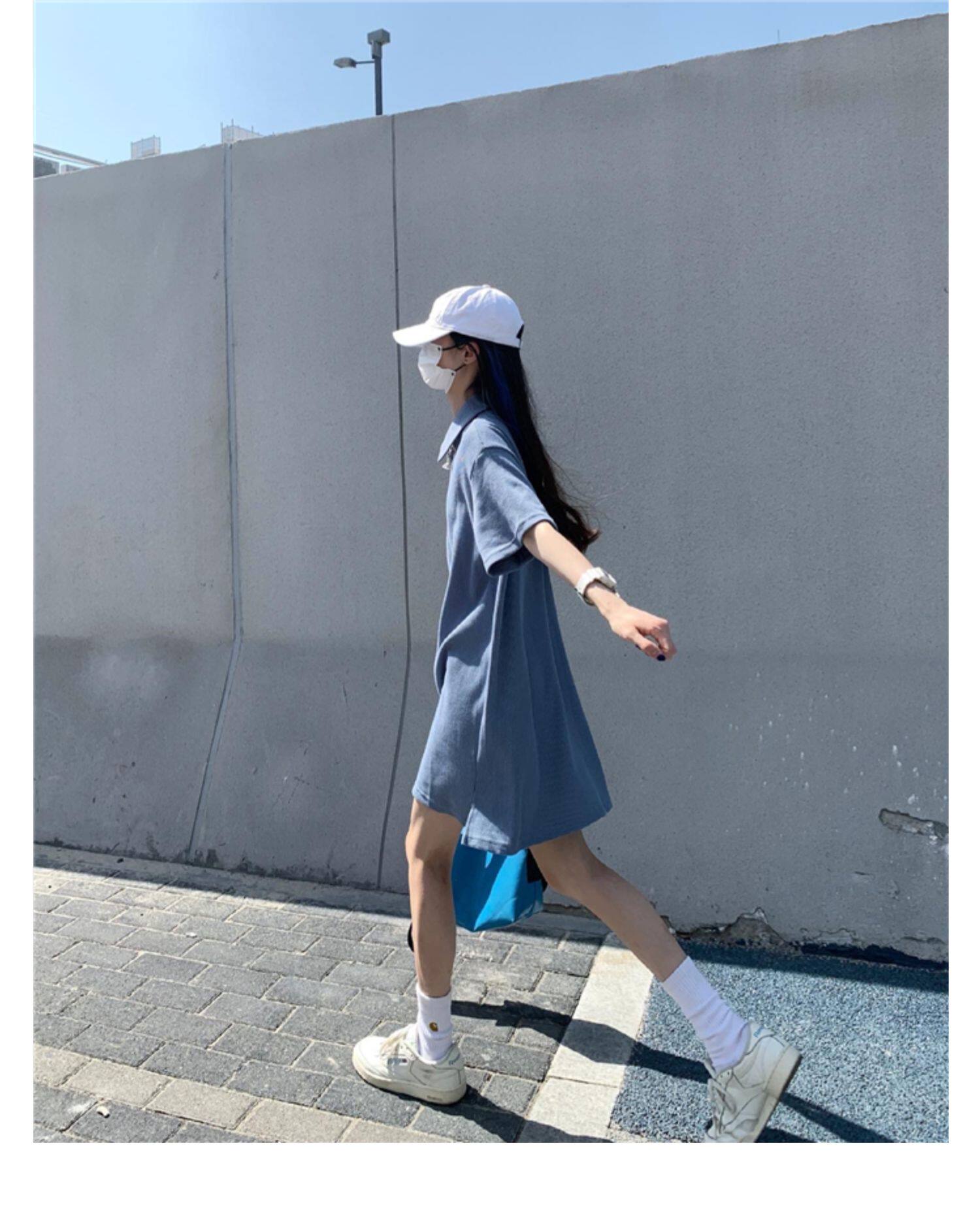 Японское мятное сексуальное платье, юбка, свободный прямой крой, воротник поло