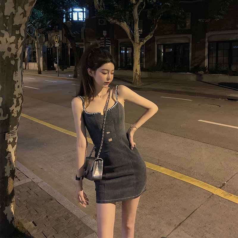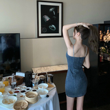 Сексуальное приталенное джинсовое платье, эффект подтяжки, высокая талия, с акцентом на бедрах