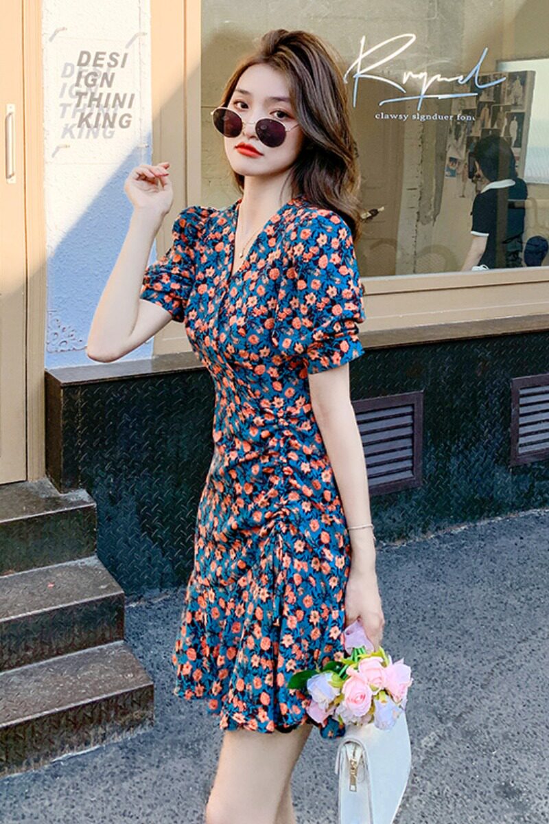 Тонкое шифоновое платье, подходит для подростков, 2021 года, V-образный вырез
