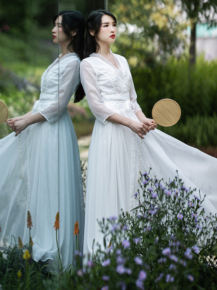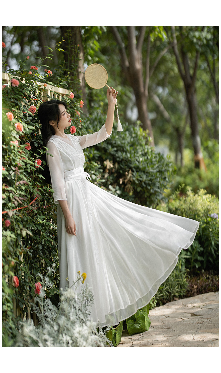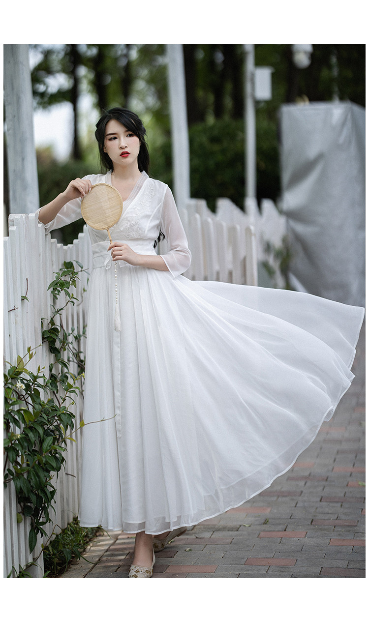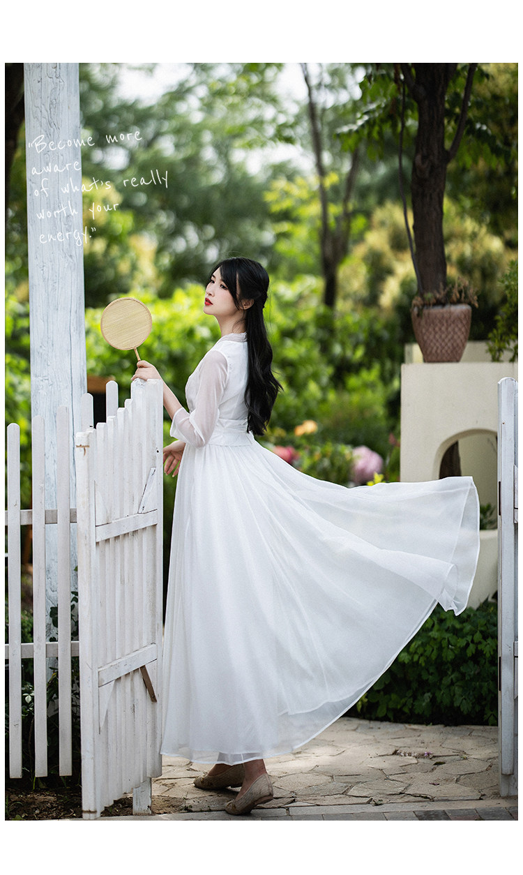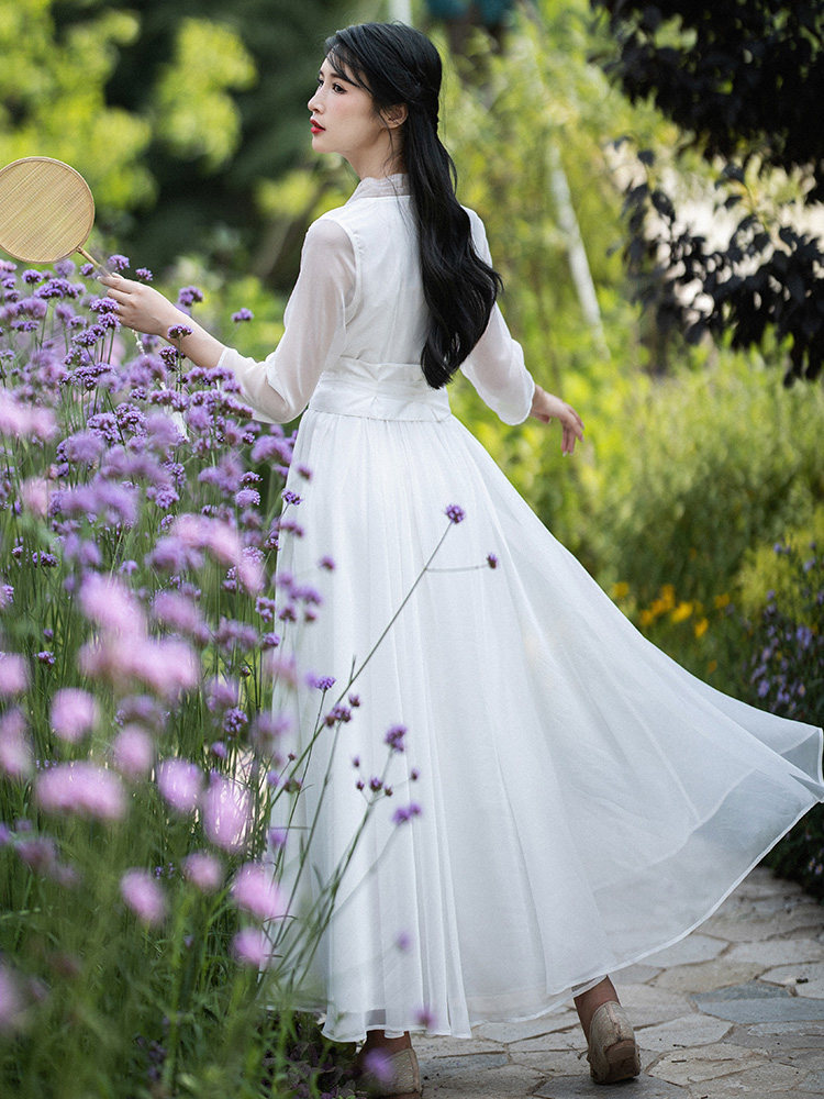 Белое летнее платье, шифоновая длинная юбка, из хлопка и льна, коллекция 2022, городской стиль