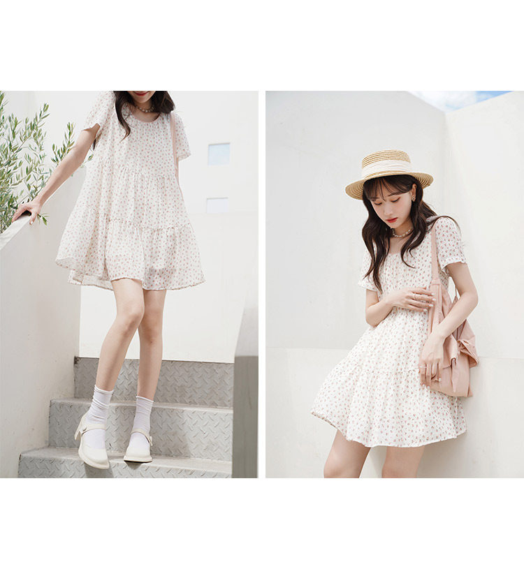 Свежее розовое летнее платье, шифоновая кукла, в цветочек, сезон 2021, свободный крой