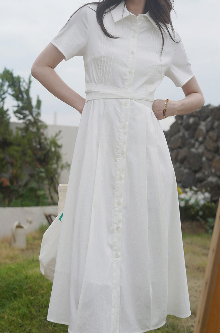 Приталенная рубашка, корсет, платье, длинная белая длинная юбка для школьников и студентов, в корейском стиле, короткий рукав, А-силуэт