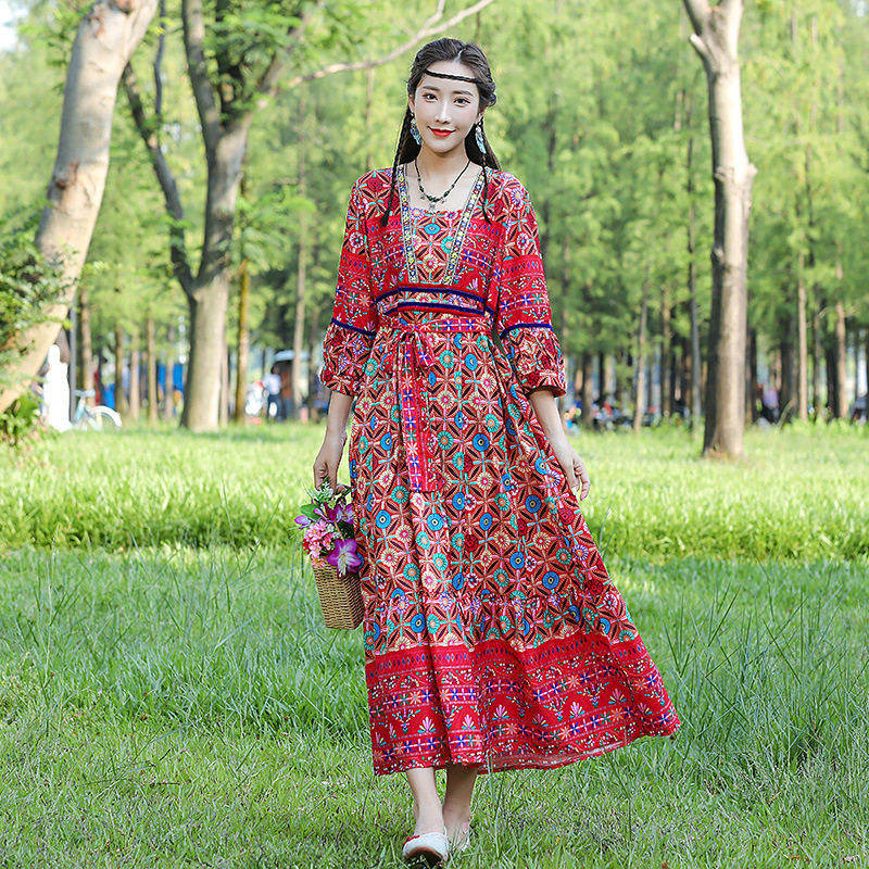 Синьцзян Сишуанбаньна путешествие отпуск фото Юньнань Лицзян длинное женское платье в этническом стиле Санья луга