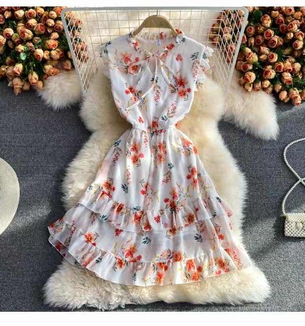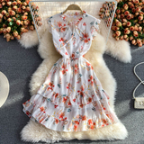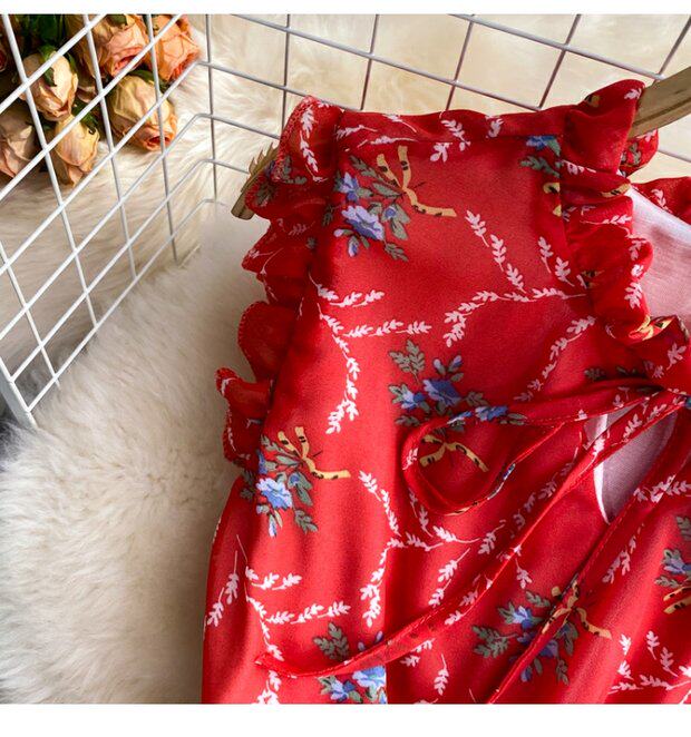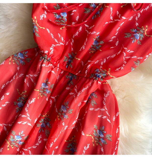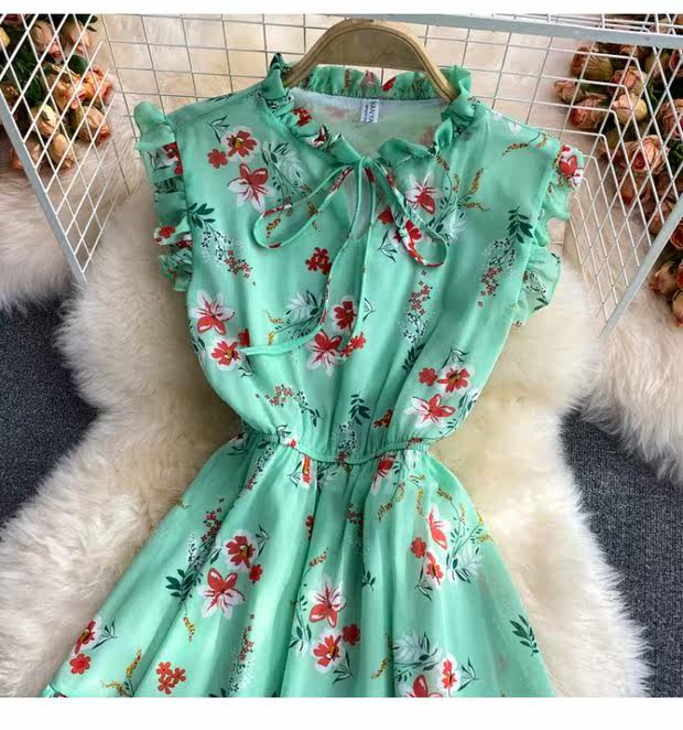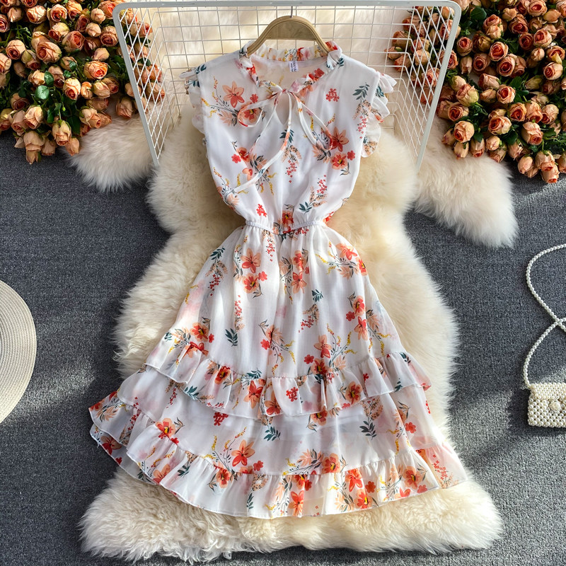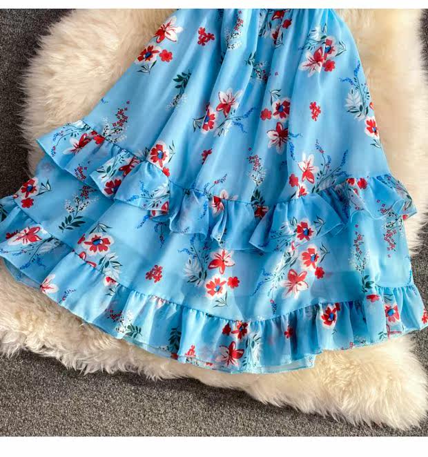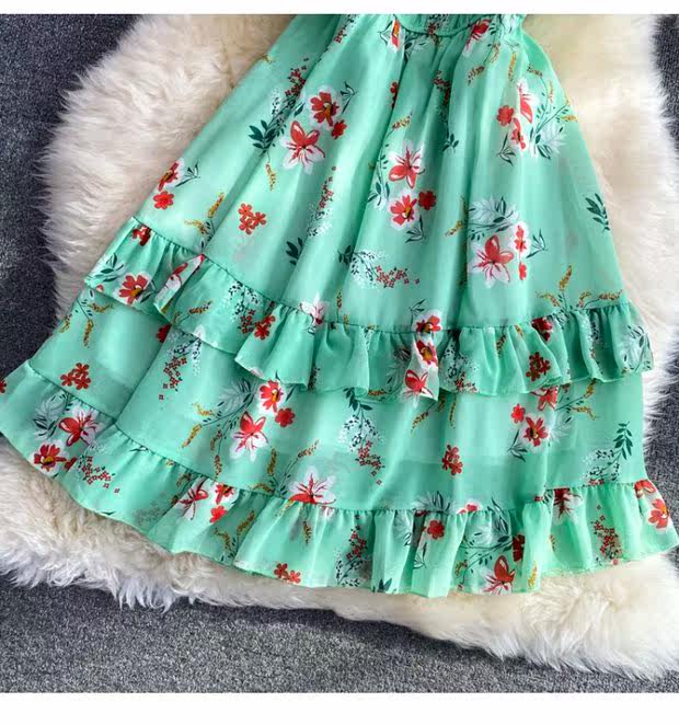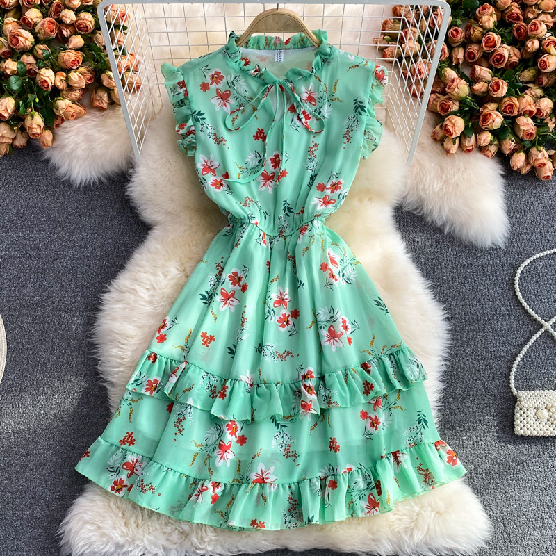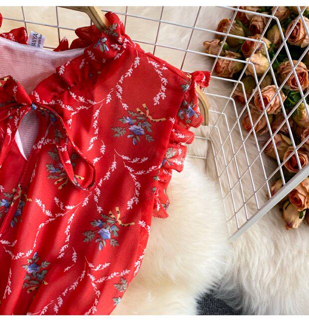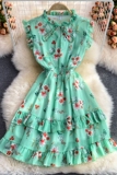 Летний свежий приталенный корсет, шифоновое платье, сезон 2021, цветочный принт