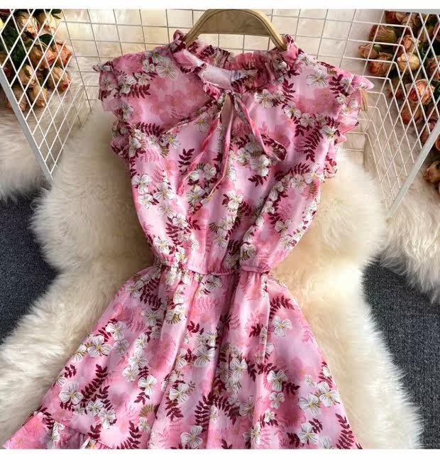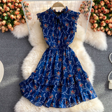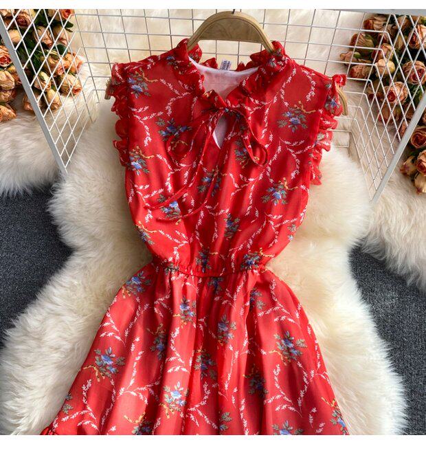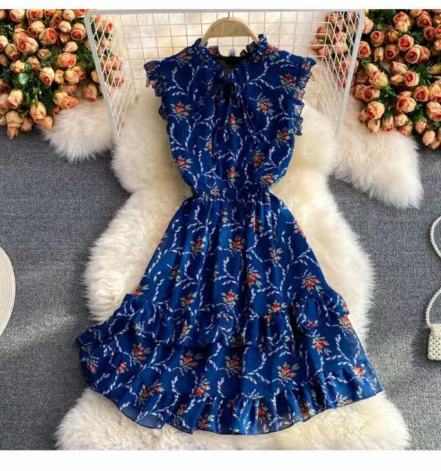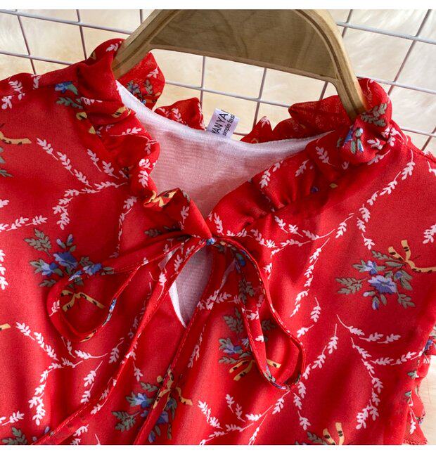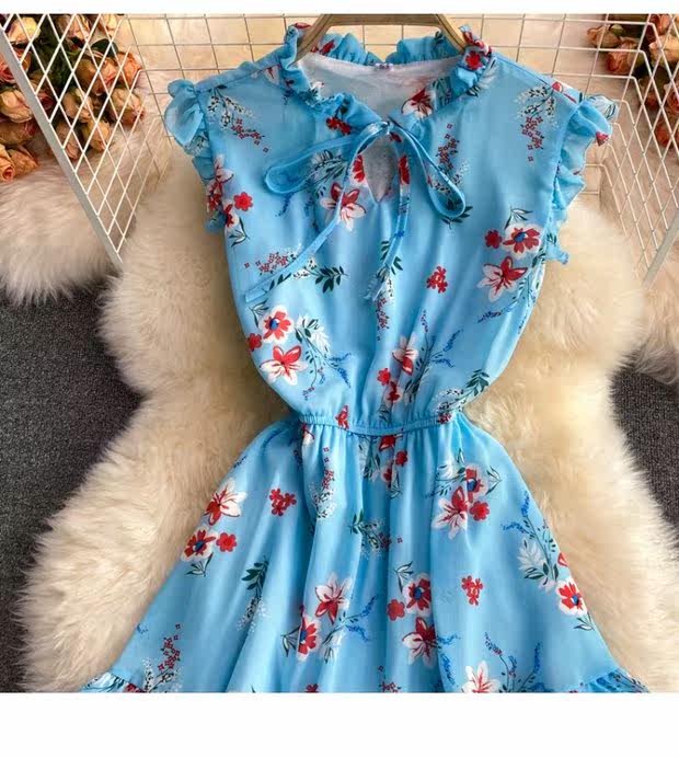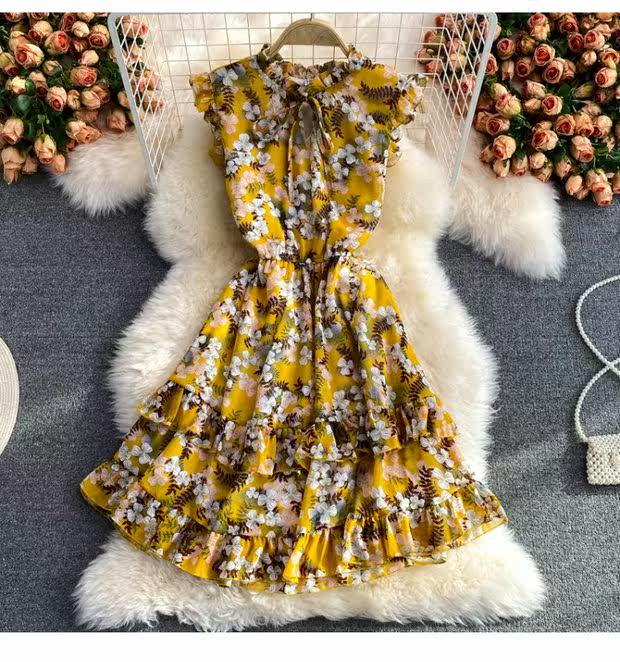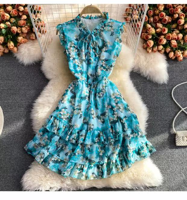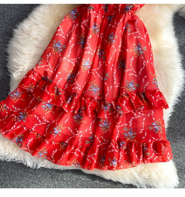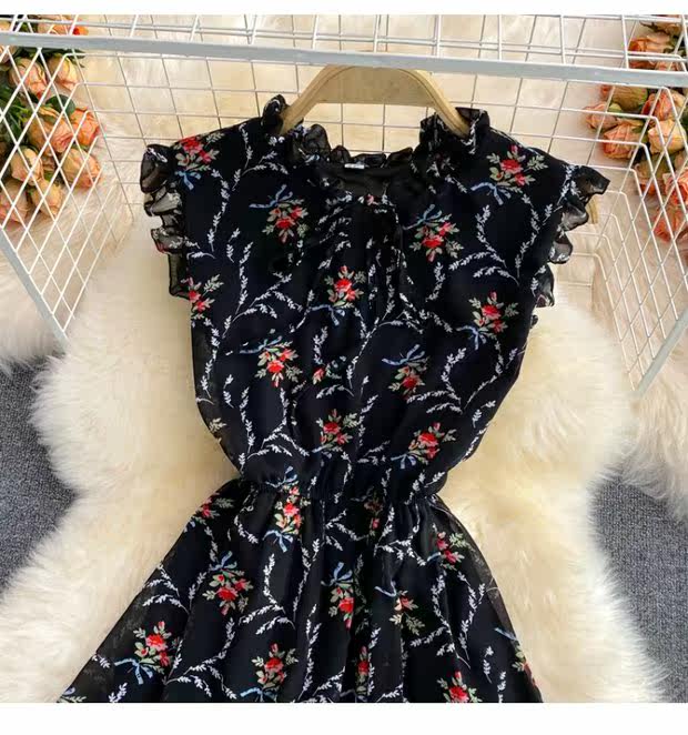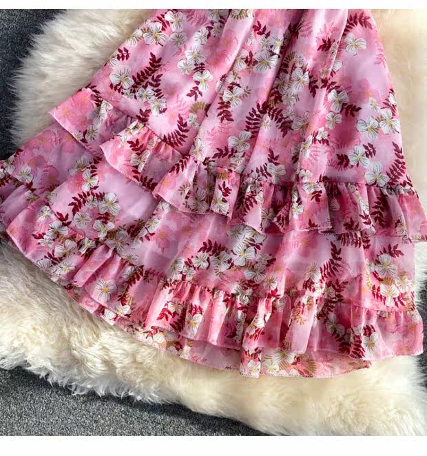 Летний свежий приталенный корсет, шифоновое платье, сезон 2021, цветочный принт