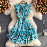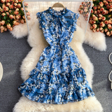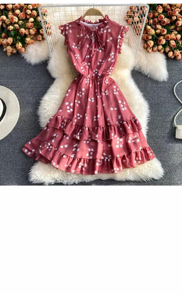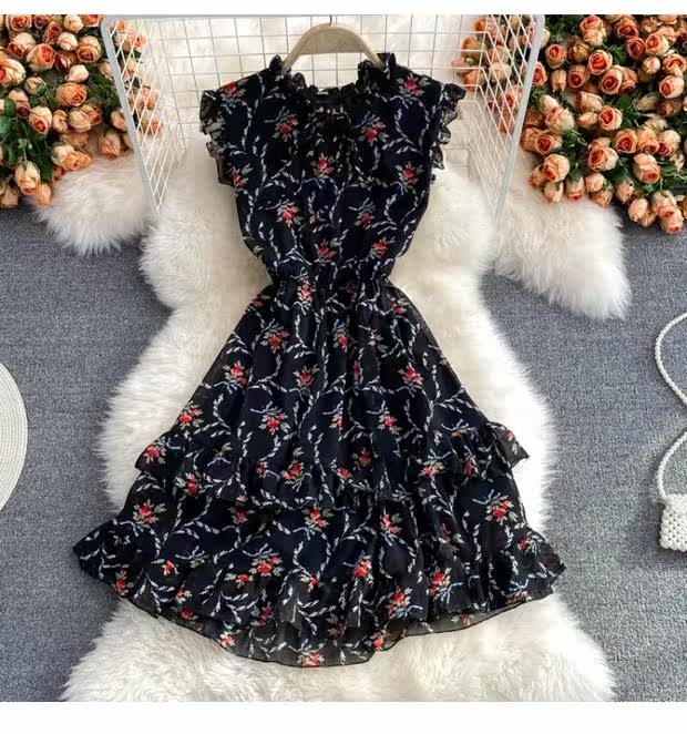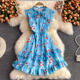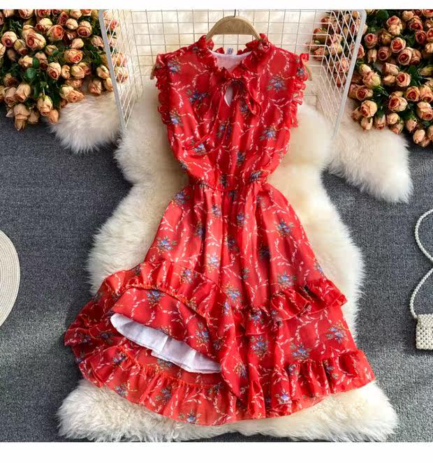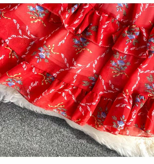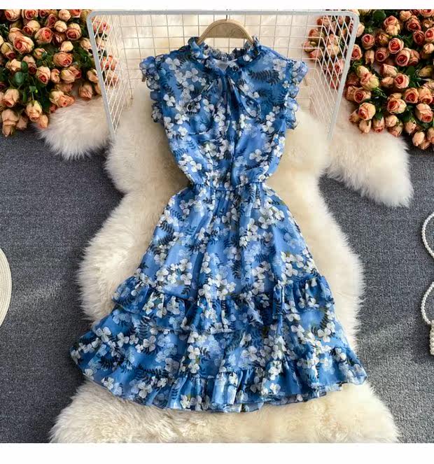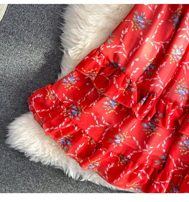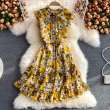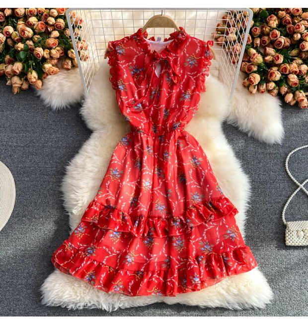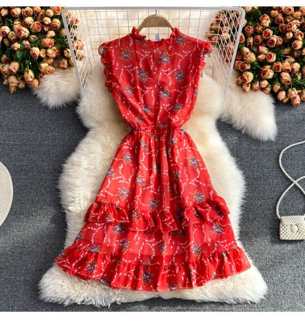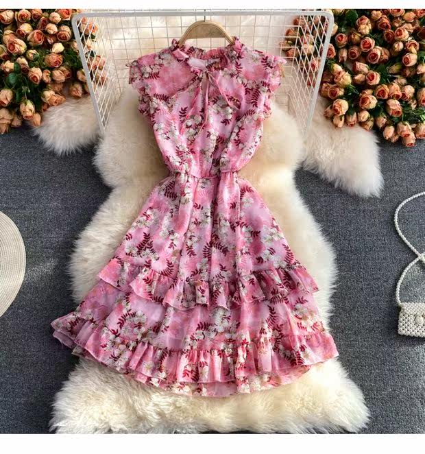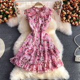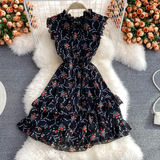 Летний свежий приталенный корсет, шифоновое платье, сезон 2021, цветочный принт