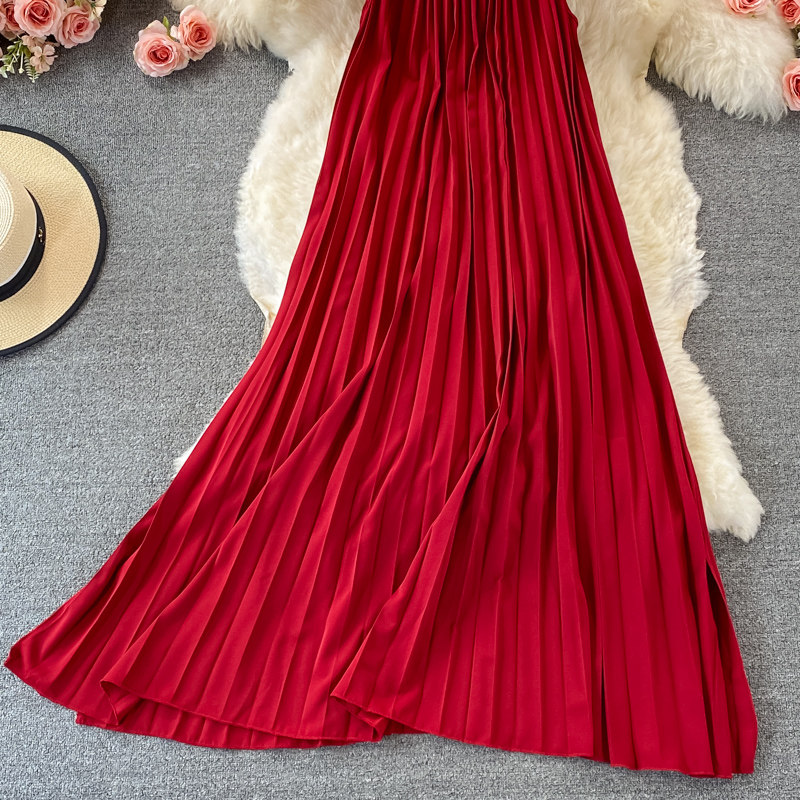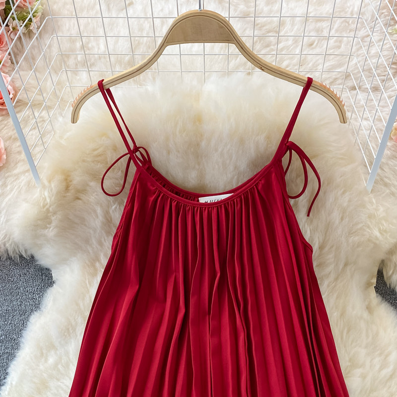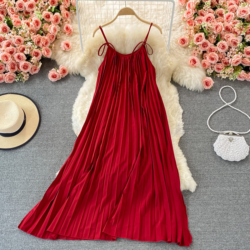 Летнее платье-комбинация, пляжное платье, длинная юбка, 2025 года, свободный крой, с открытой спиной, плиссированная юбка, пляжный стиль, длина макси