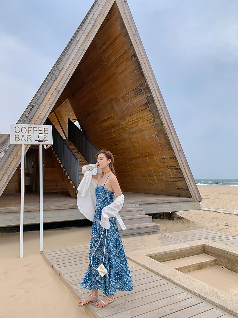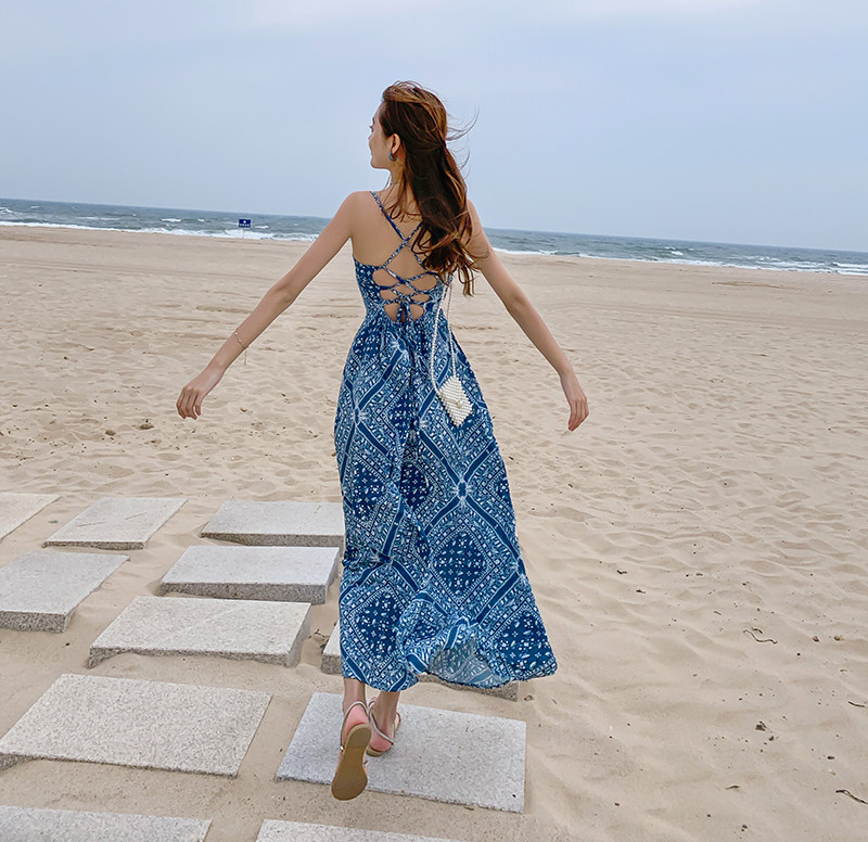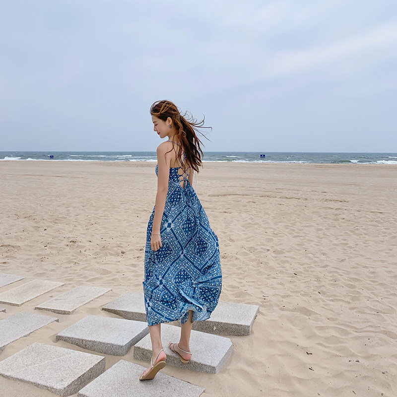 Пляжное платье, этническая юбка, стиль бохо, Таиланд, эффект подтяжки, с открытой спиной