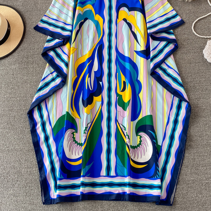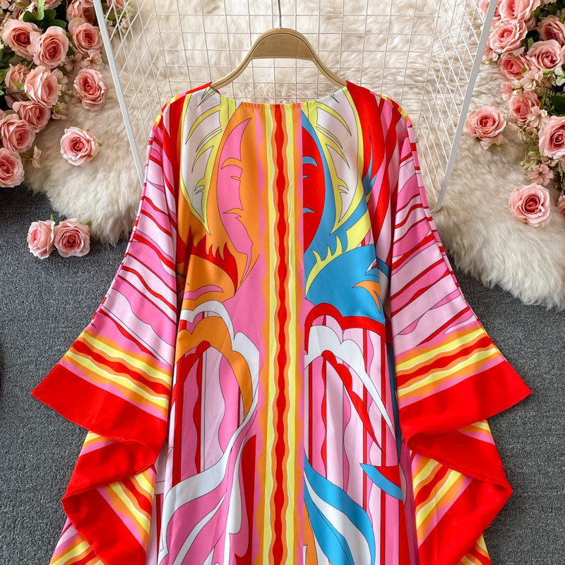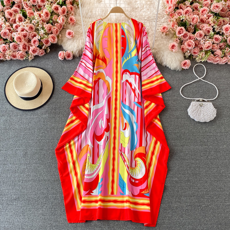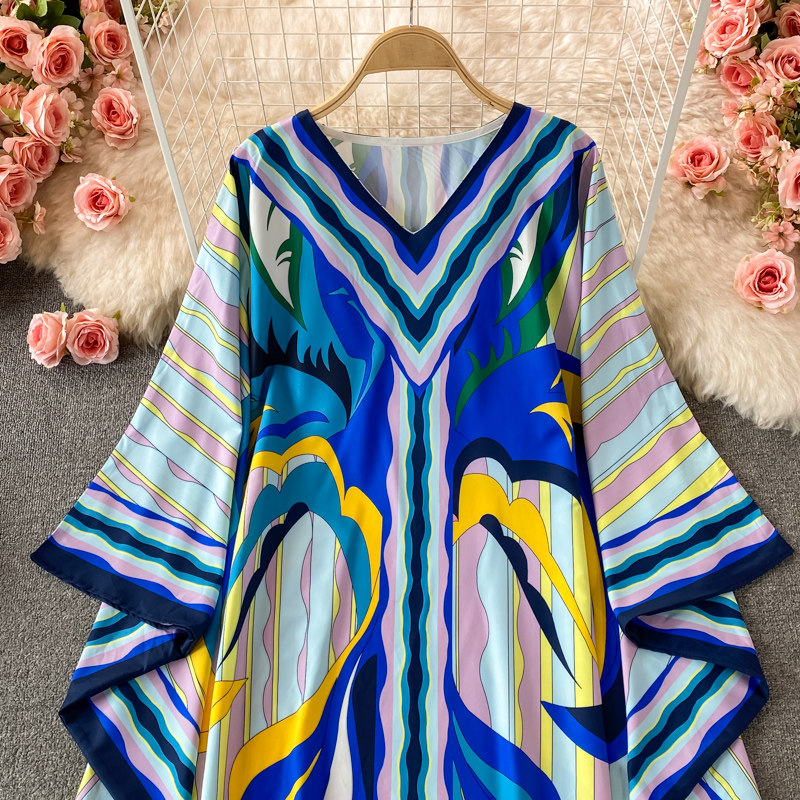 Ретро платье, одежда для защиты от солнца, длинная юбка, стиль бохо, V-образный вырез, свободный крой, с рукавом, длина макси
