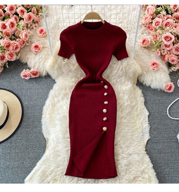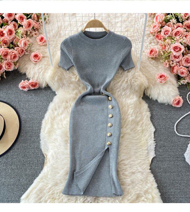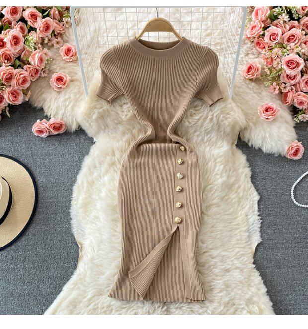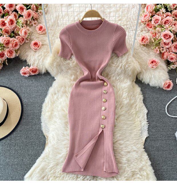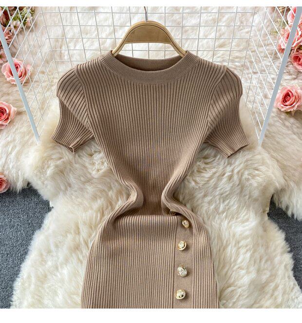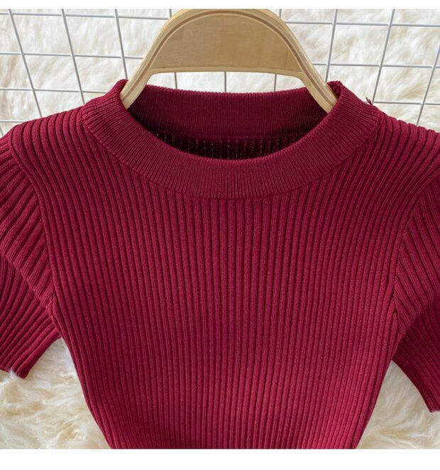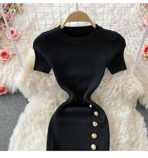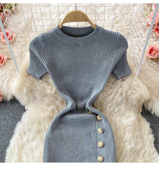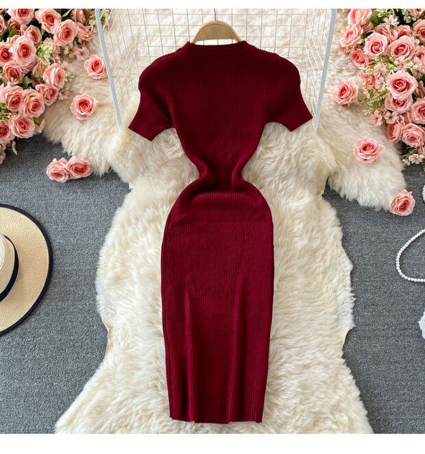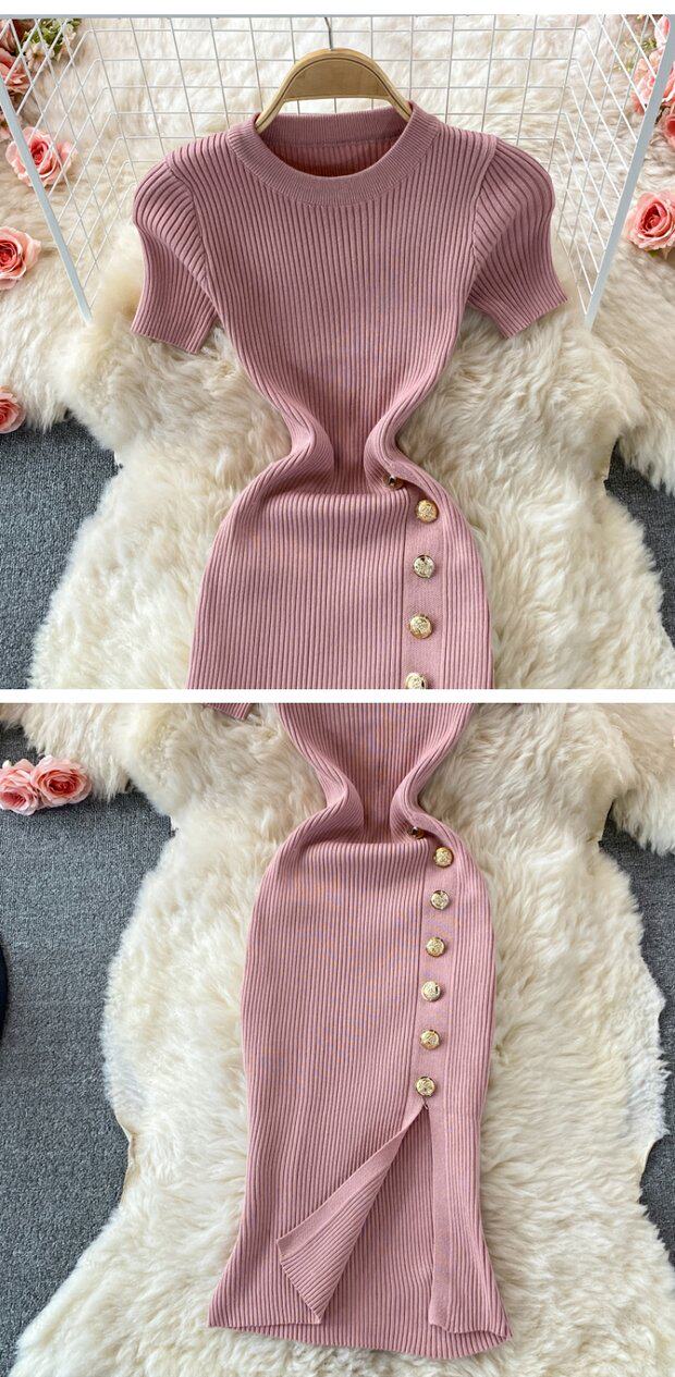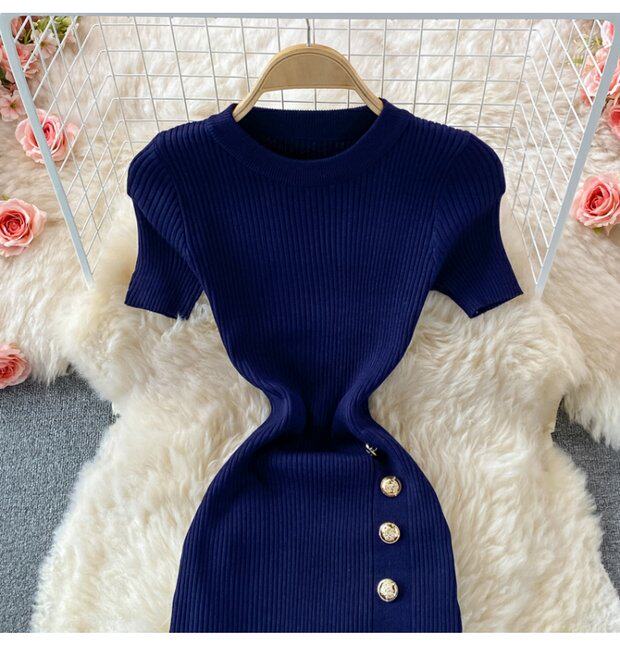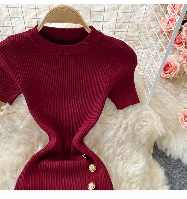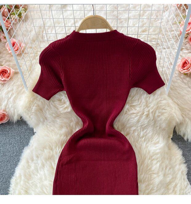 Летнее цветное эластичное трикотажное платье, мини-юбка, в корейском стиле, облегающий крой, короткий рукав, с акцентом на бедрах