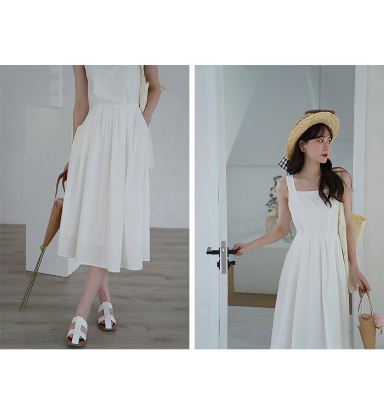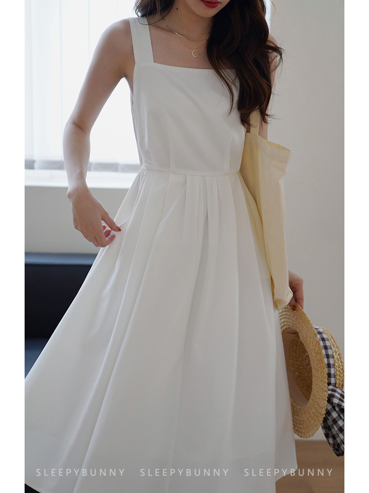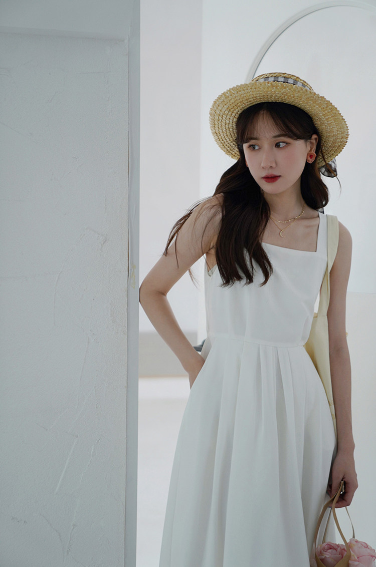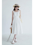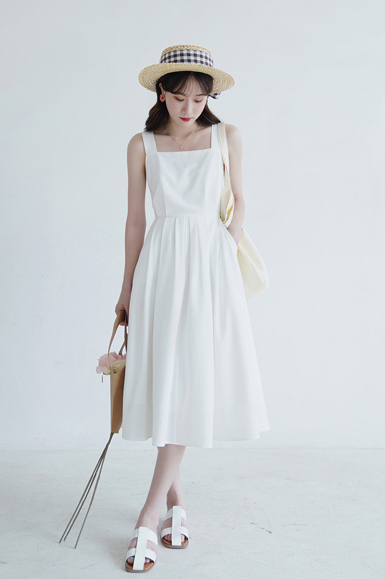 Длинное белое платье, японская юбка, средней длины, квадратный вырез, А-силуэт