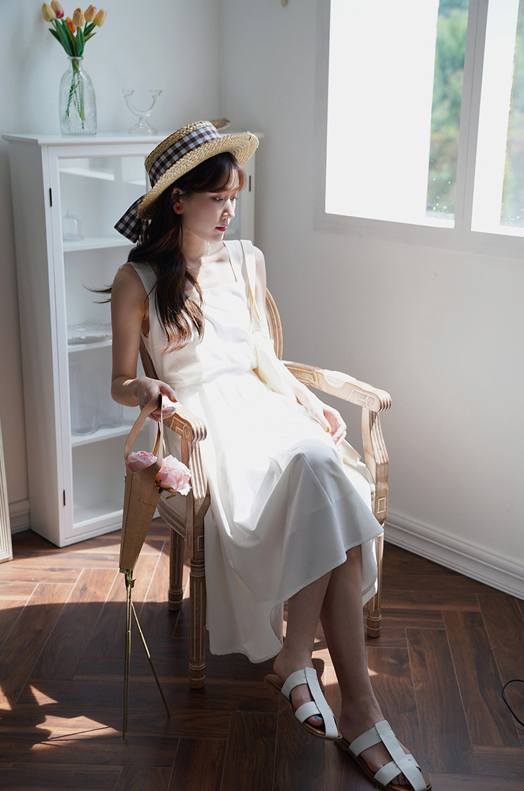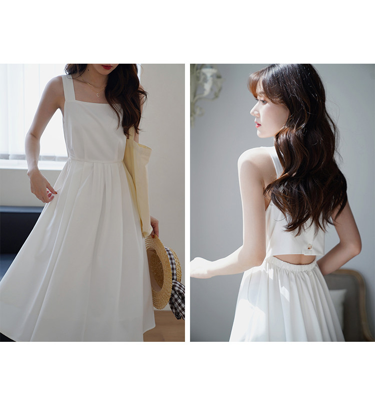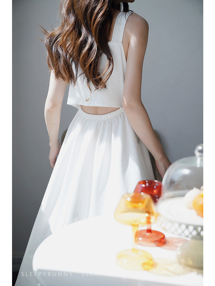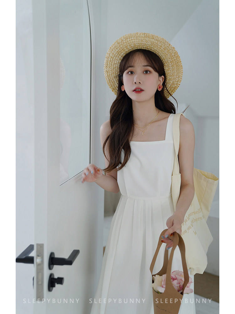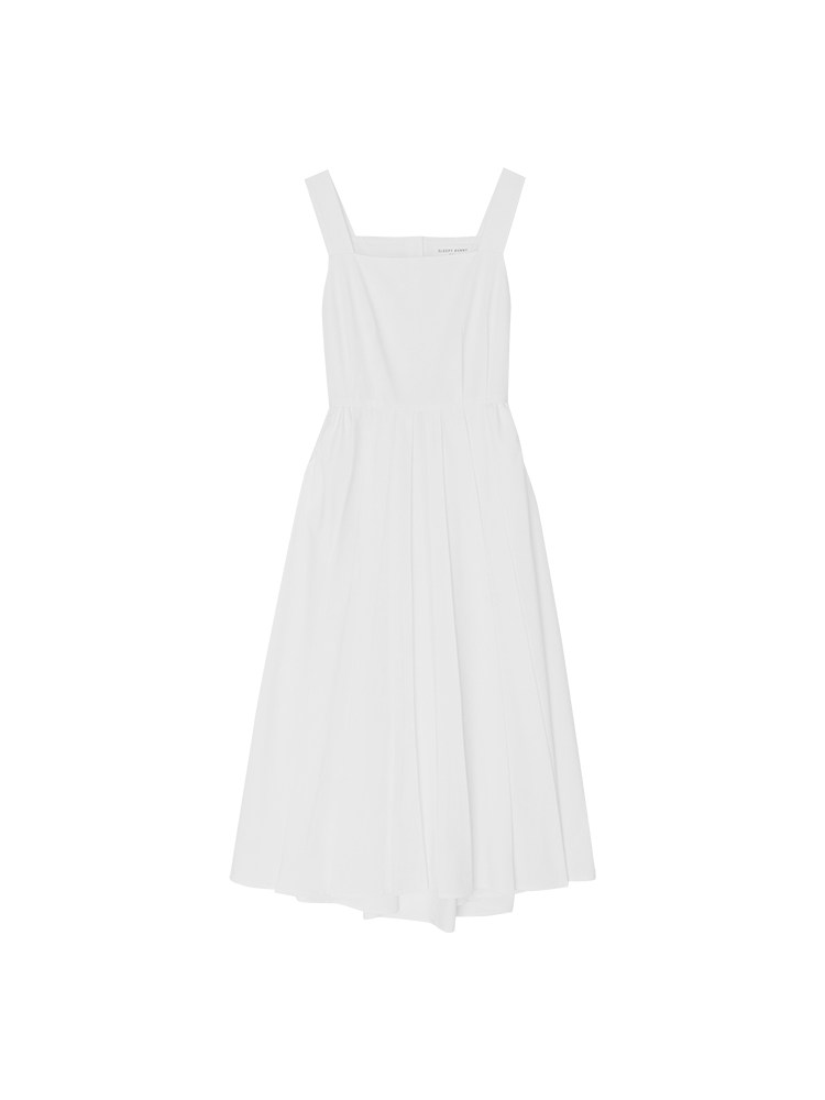 Длинное белое платье, японская юбка, средней длины, квадратный вырез, А-силуэт