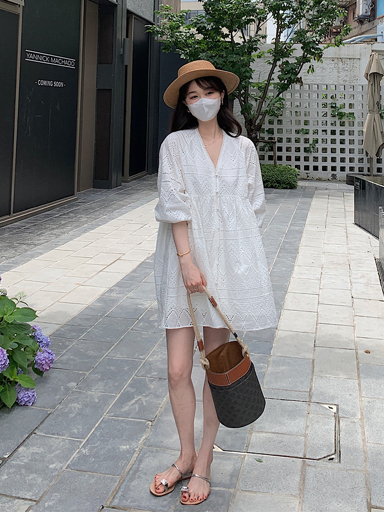 Белое летнее платье, юбка, кружевная кукла, изысканный стиль, подходит для подростков