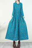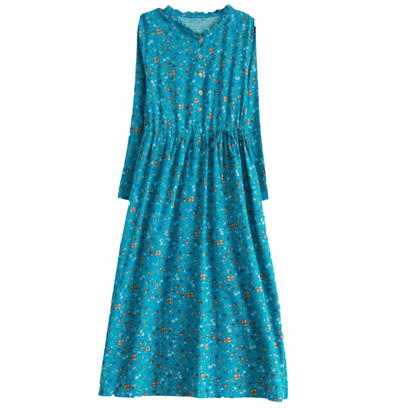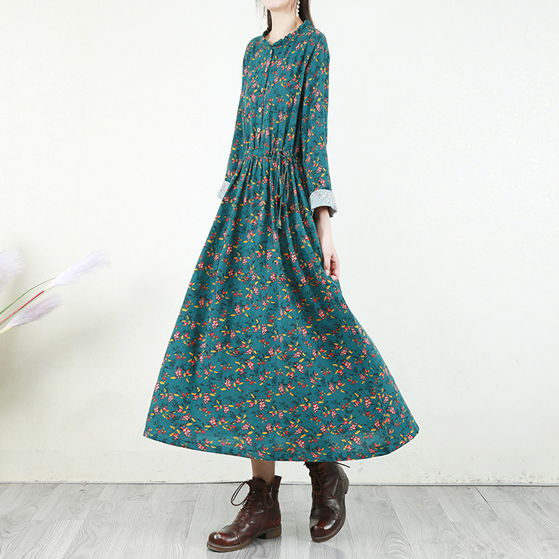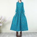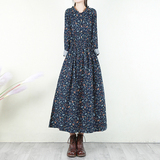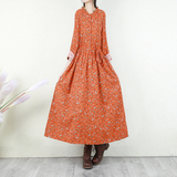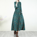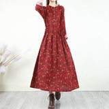 Ретро платье, лонгслив, длинная базовая юбка, из хлопка и льна, в цветочек, свободный крой