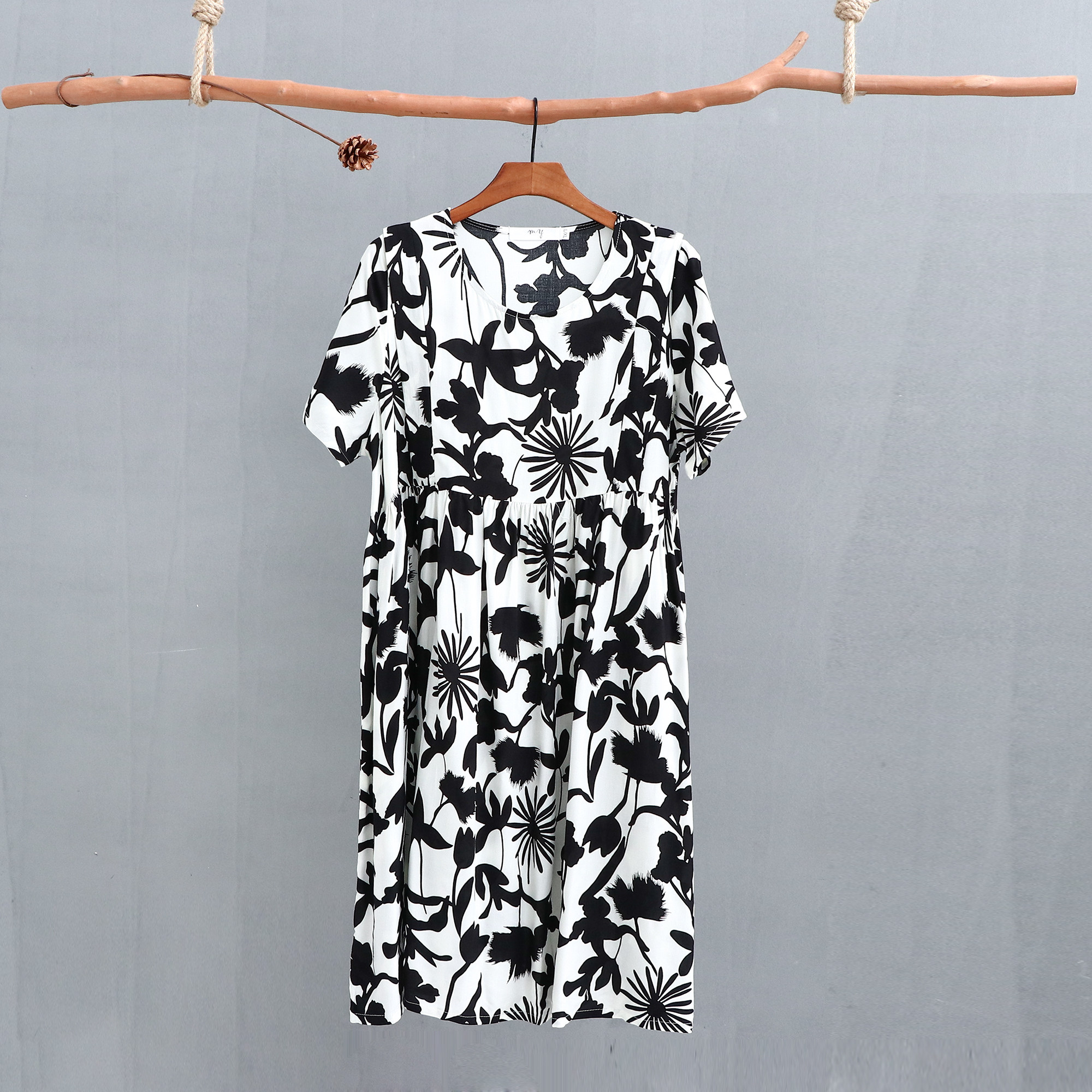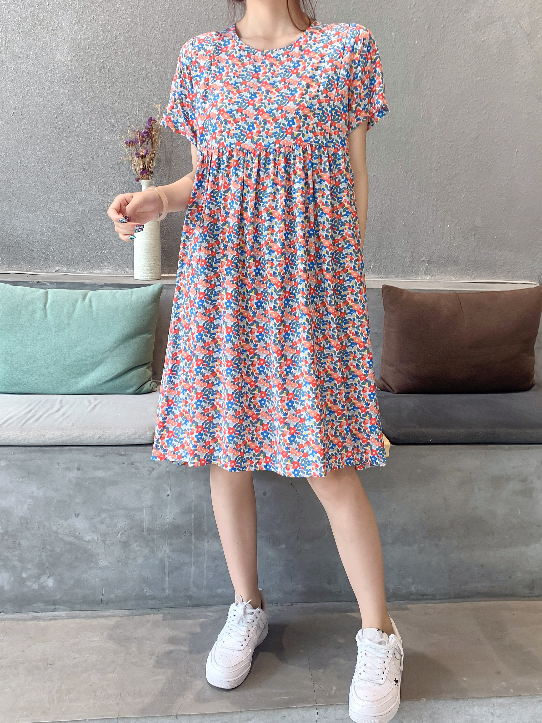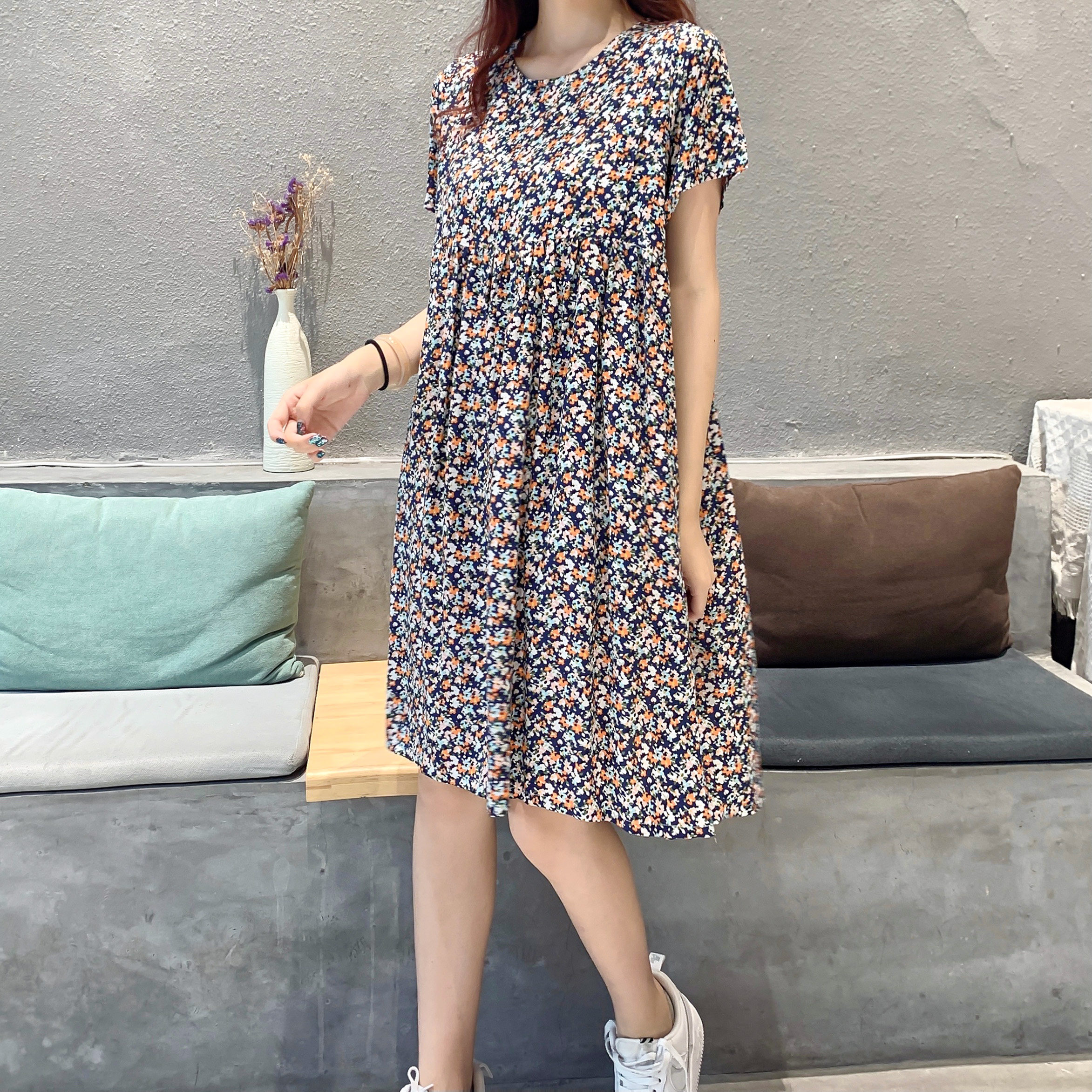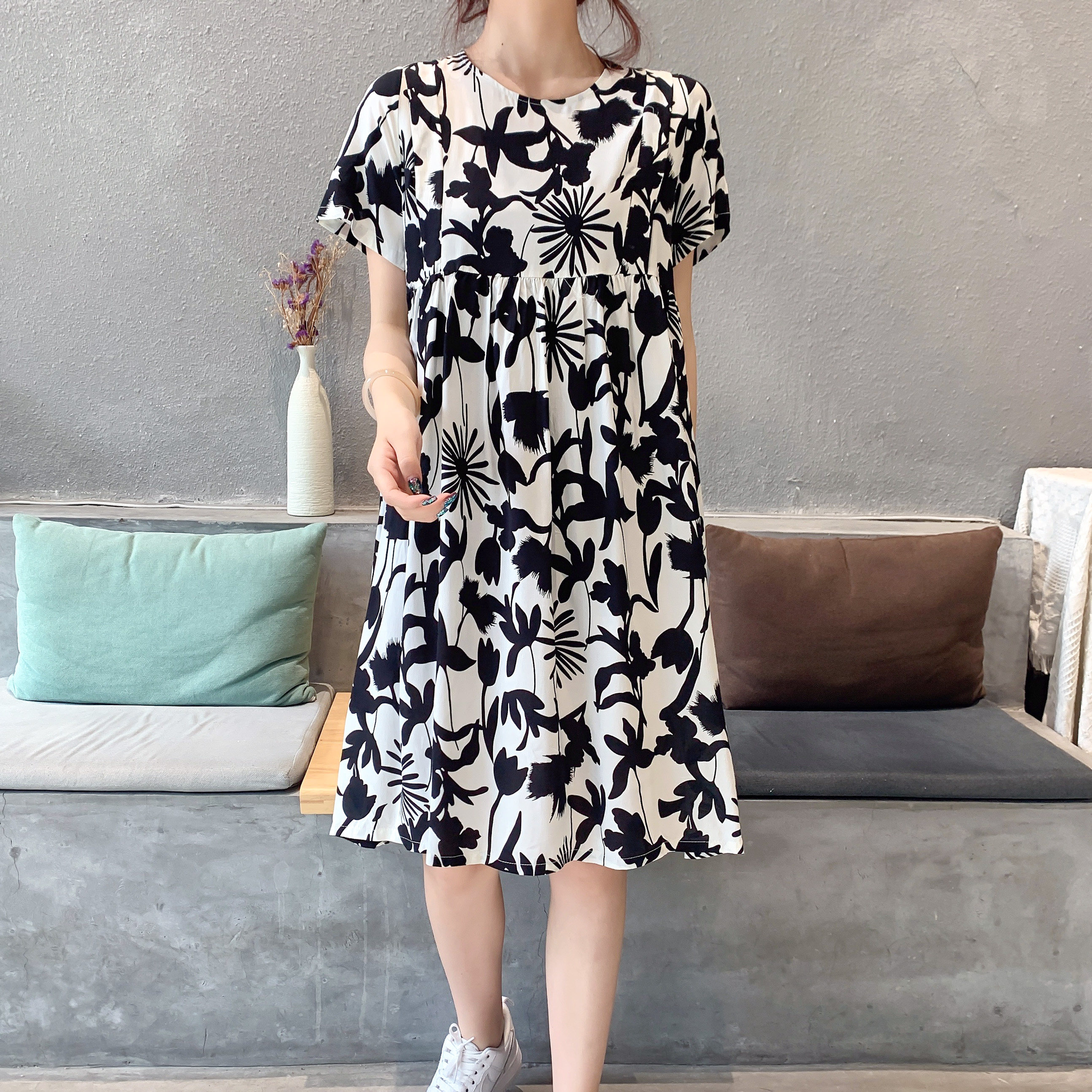 Летнее платье, модная юбка, короткий рукав, цветочный принт, большой размер, по фигуре