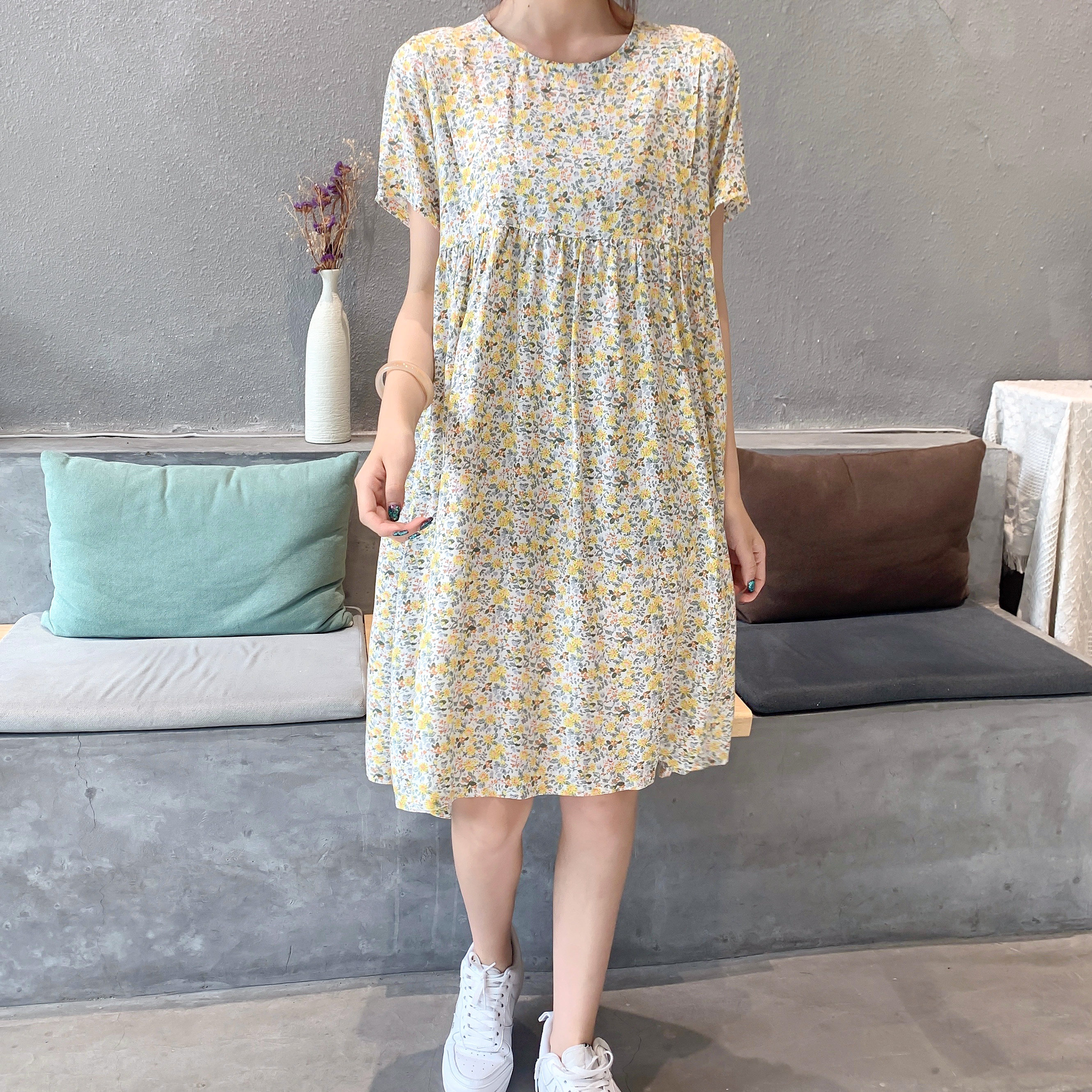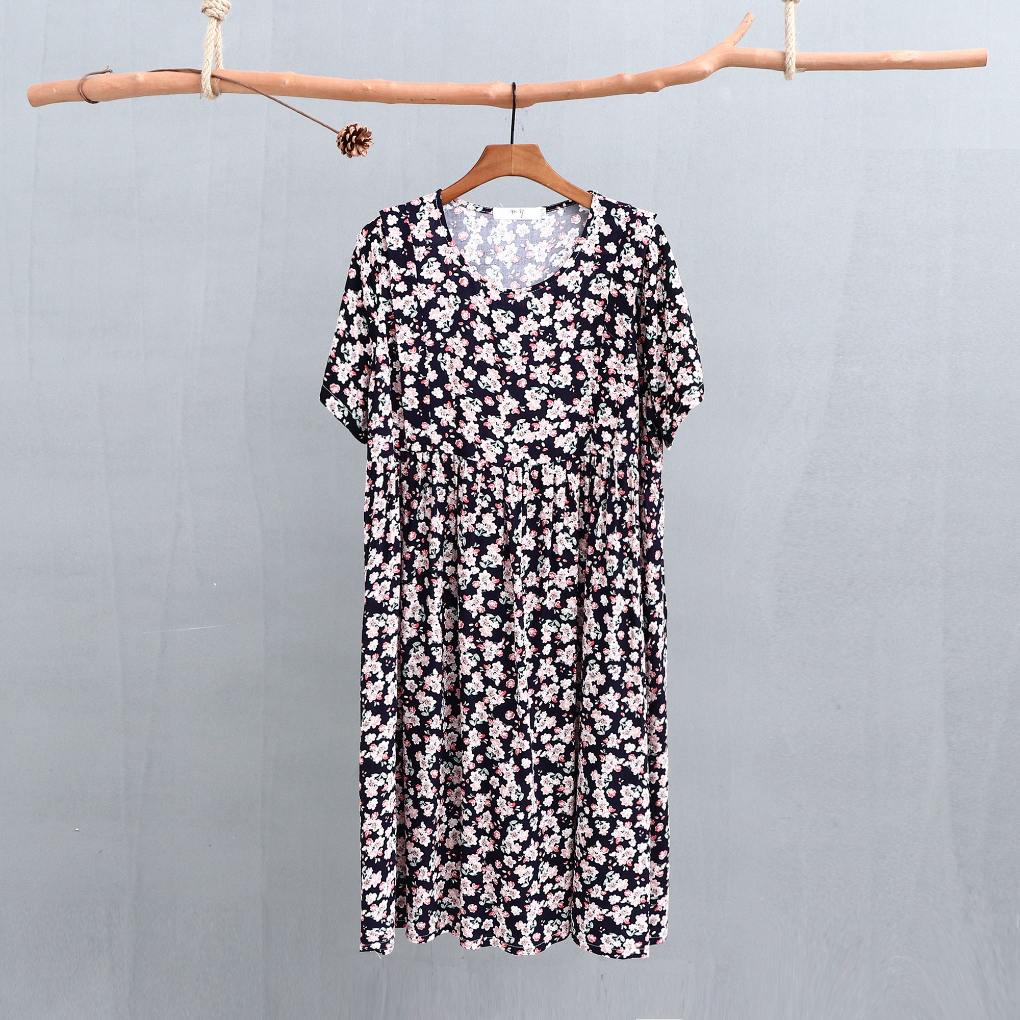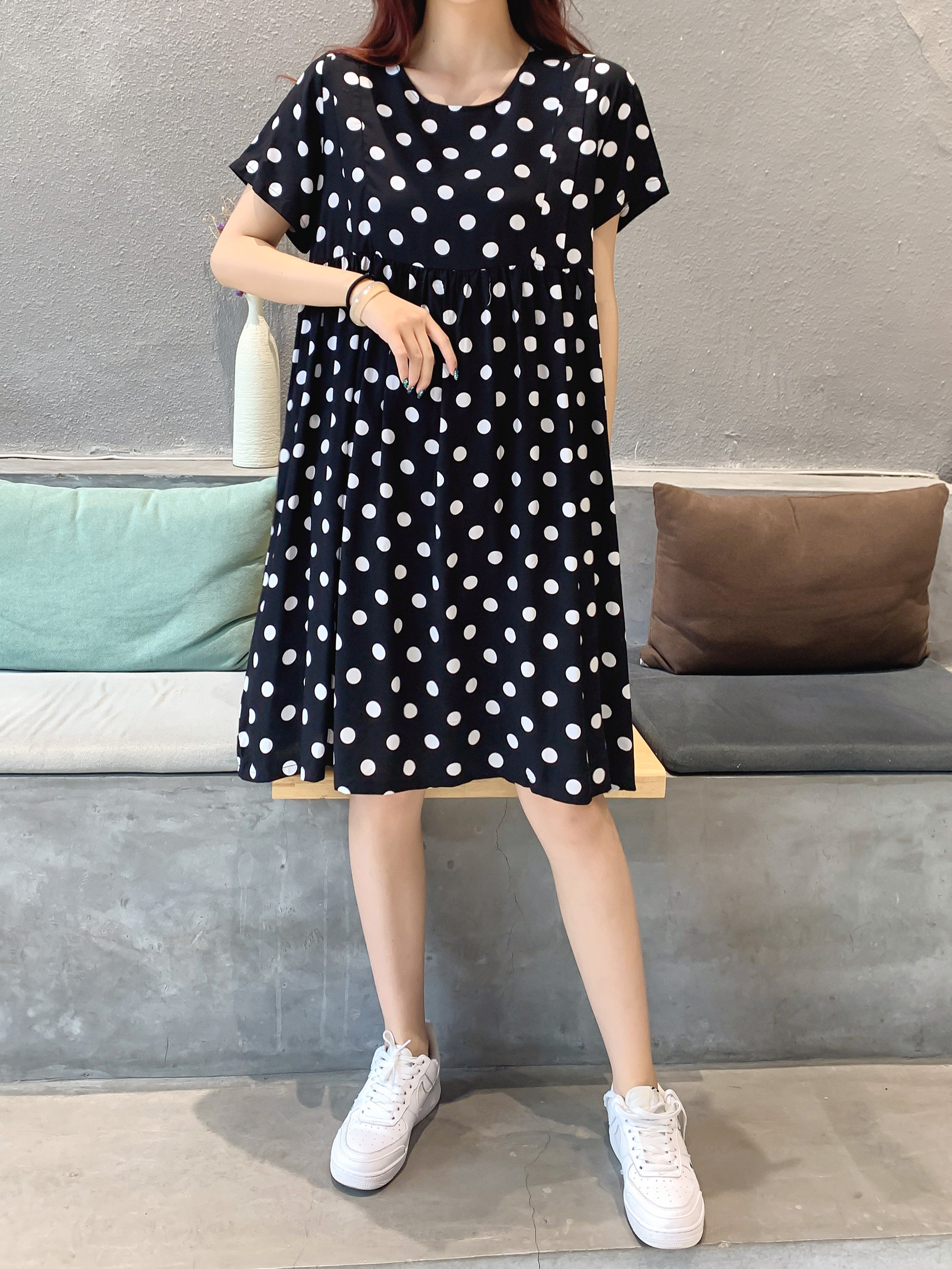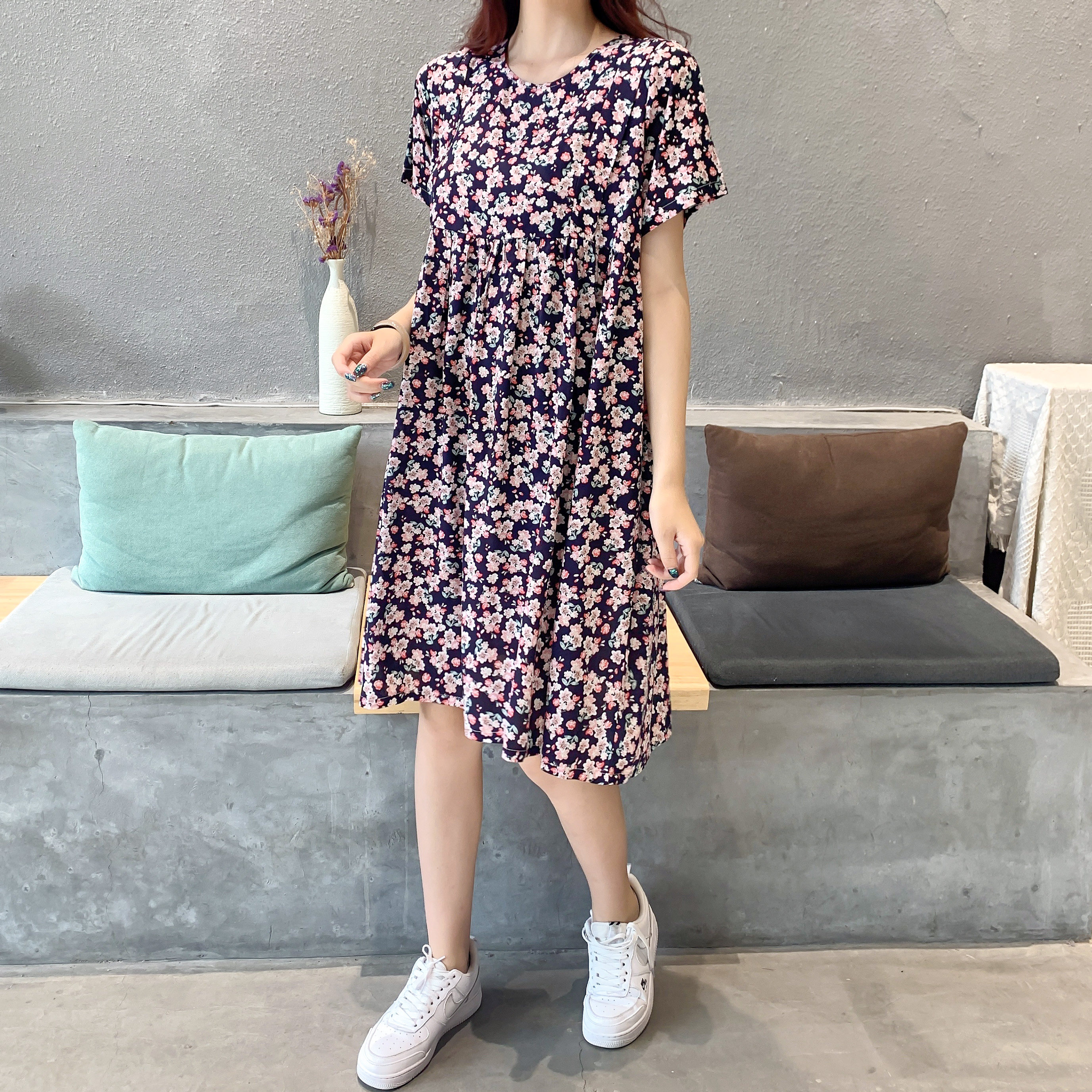 Летнее платье, модная юбка, короткий рукав, цветочный принт, большой размер, по фигуре