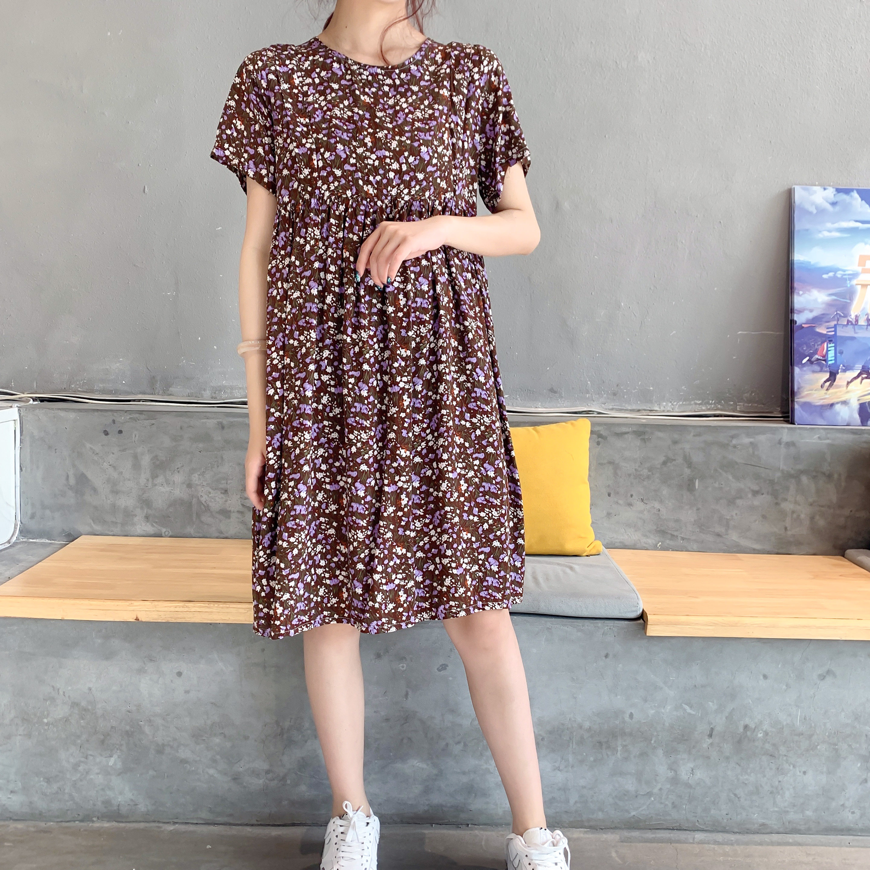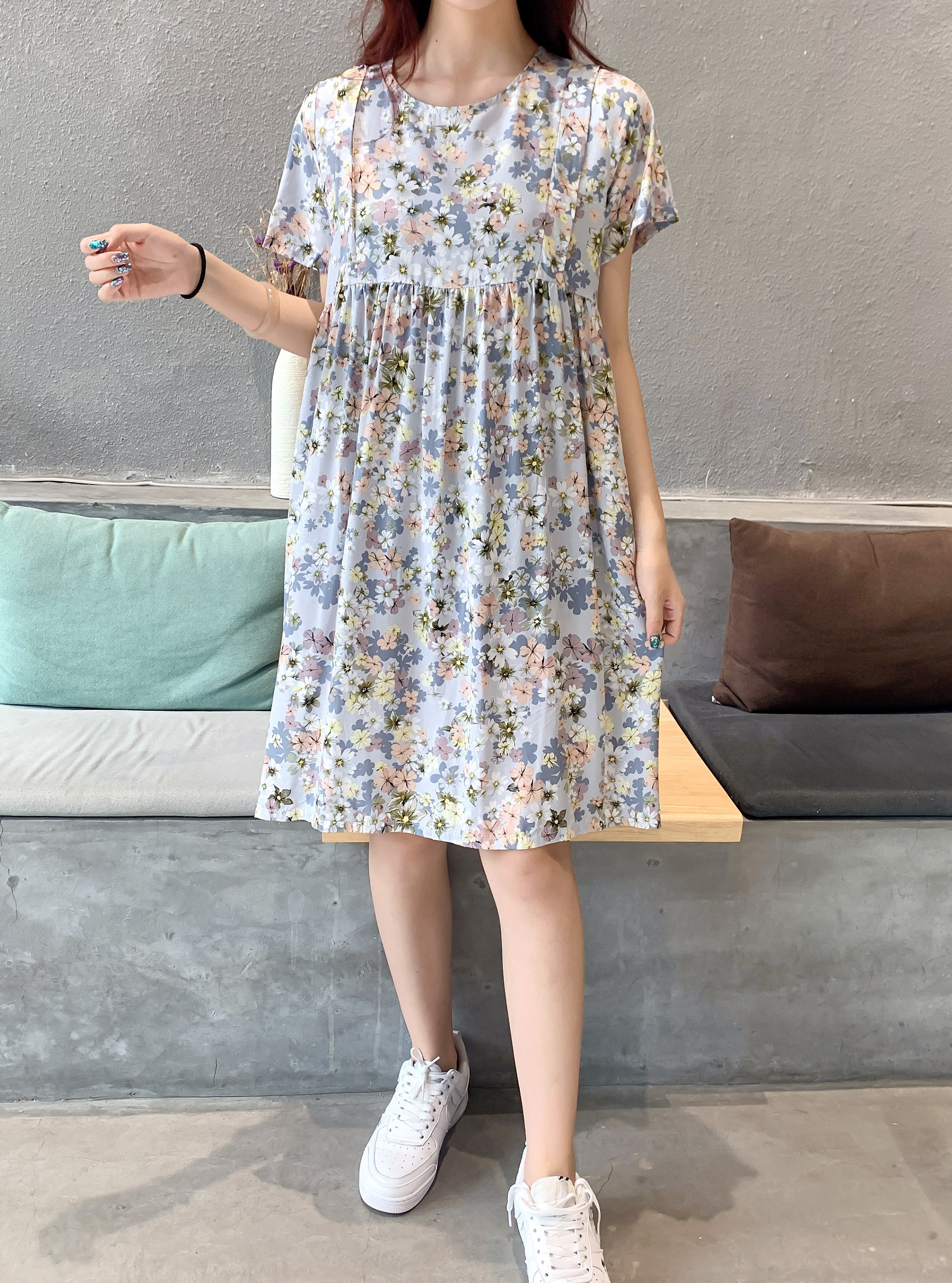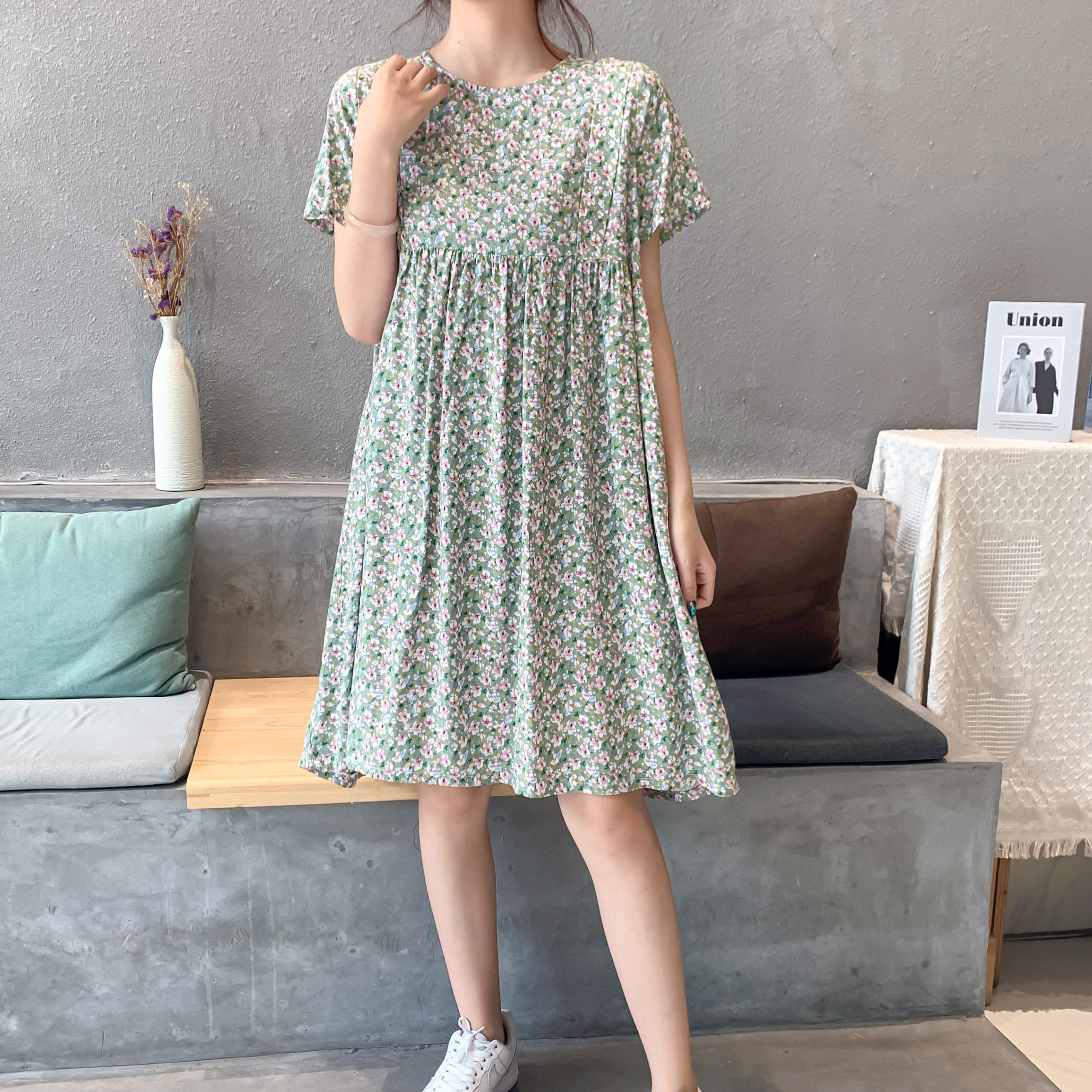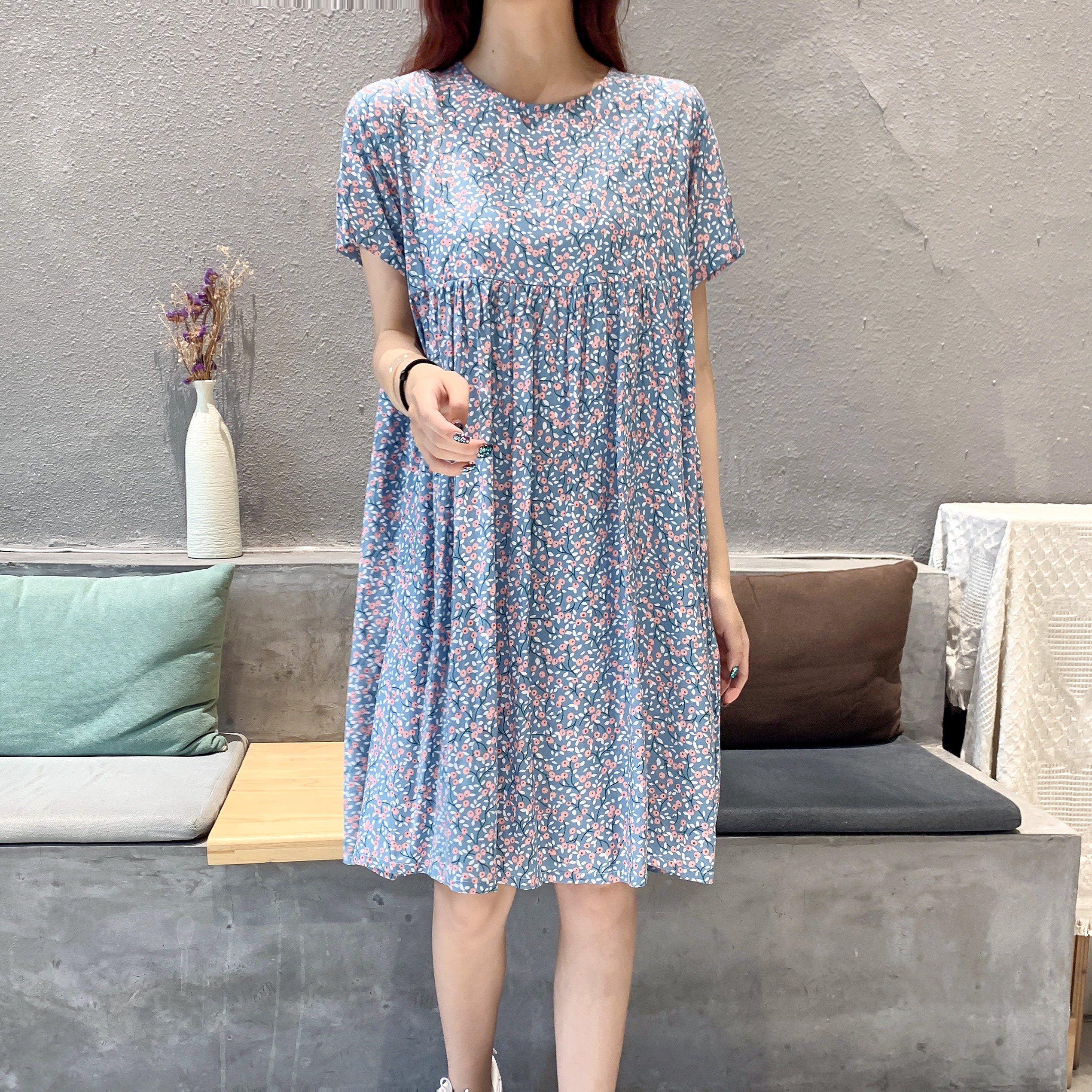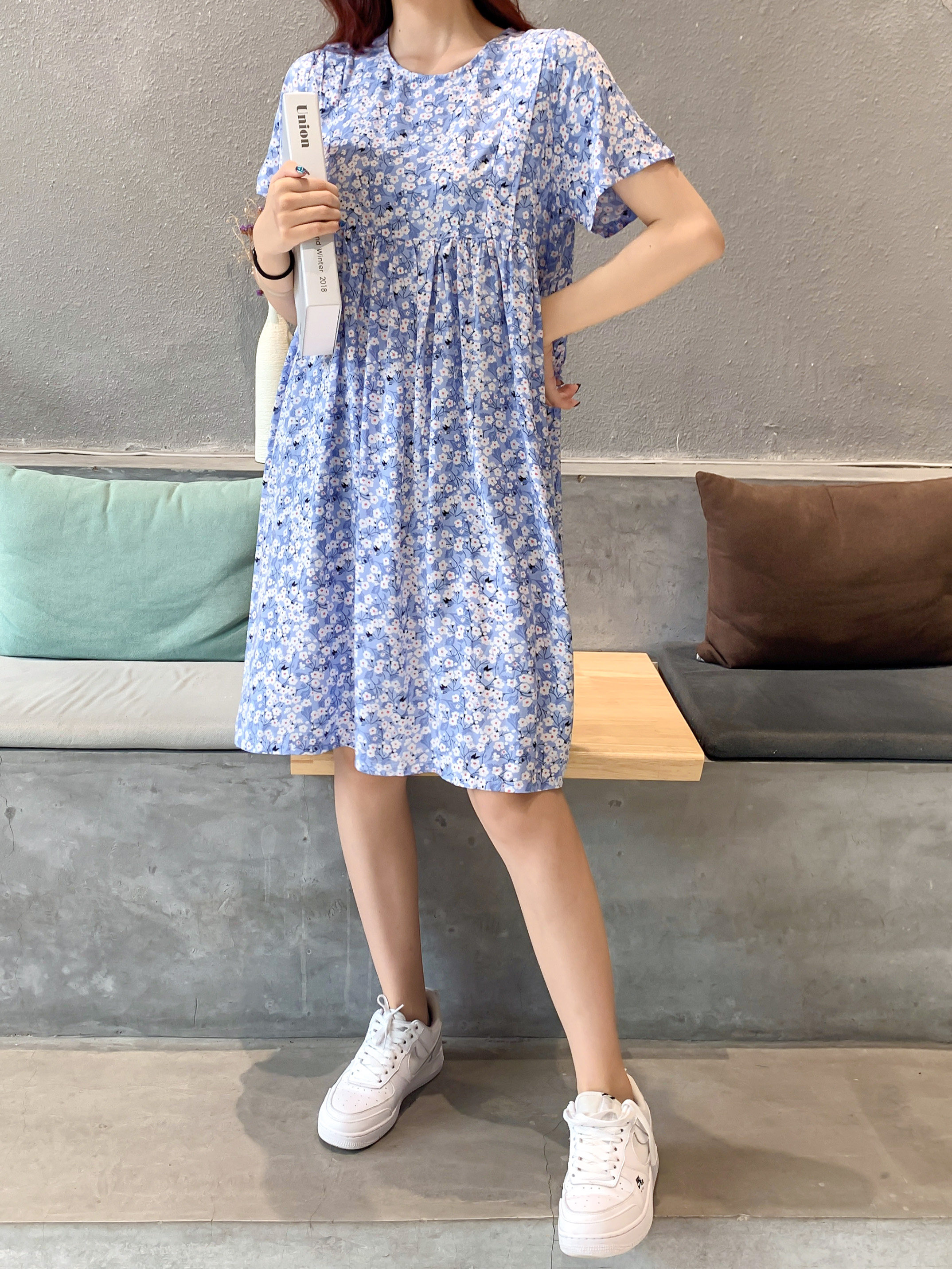 Летнее платье, модная юбка, короткий рукав, цветочный принт, большой размер, по фигуре