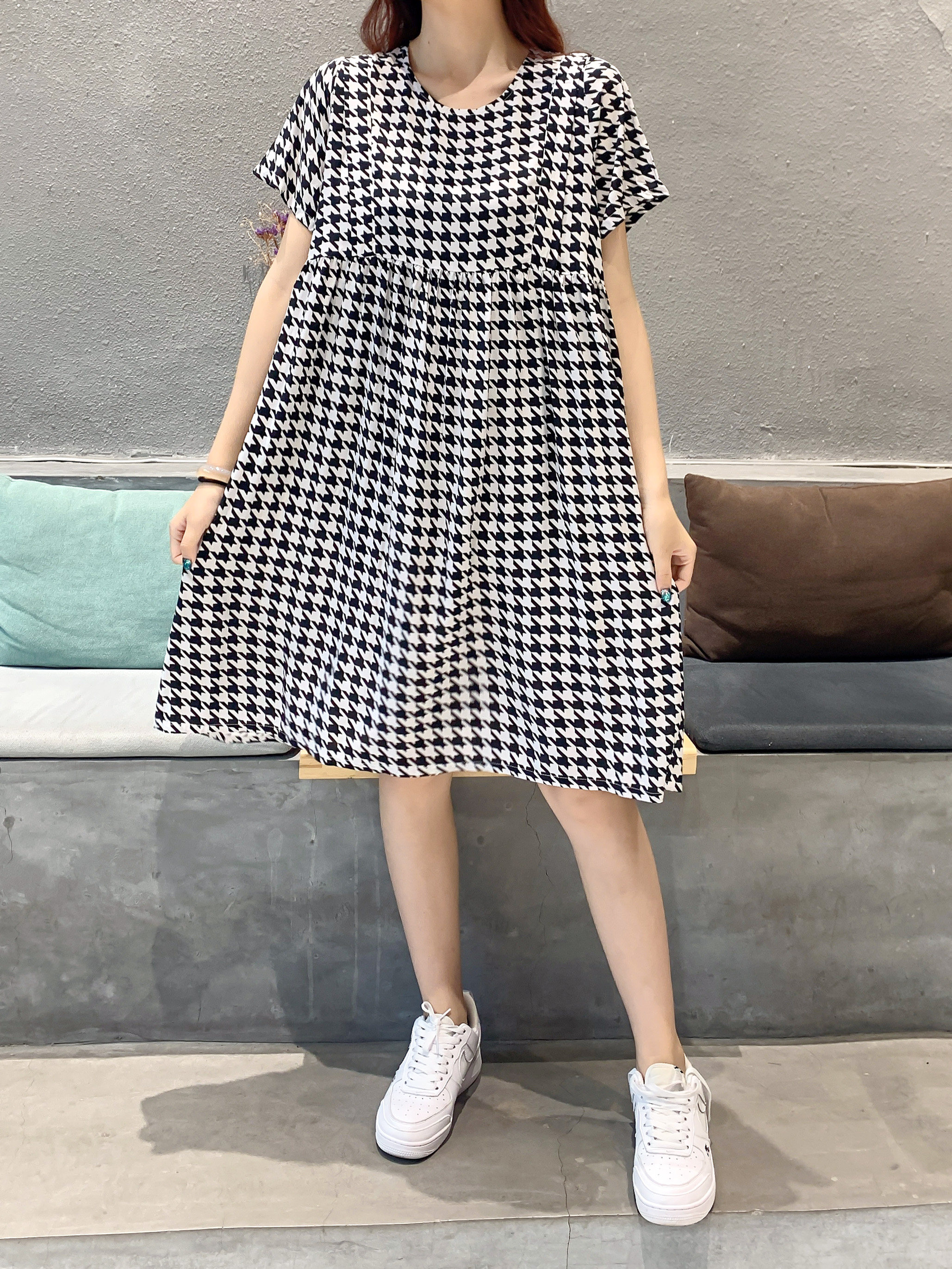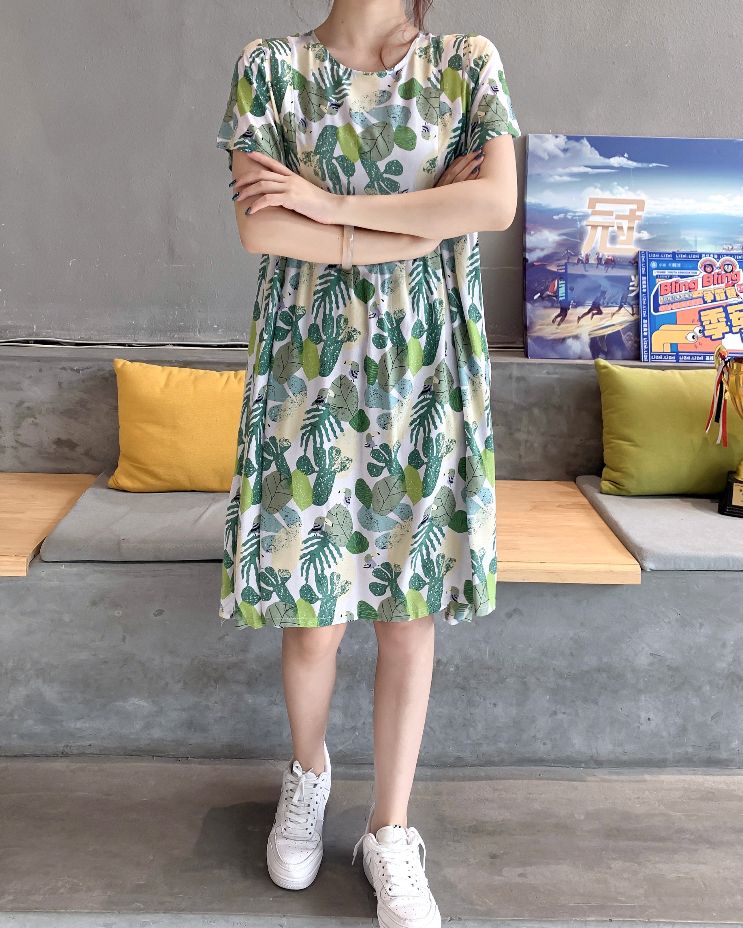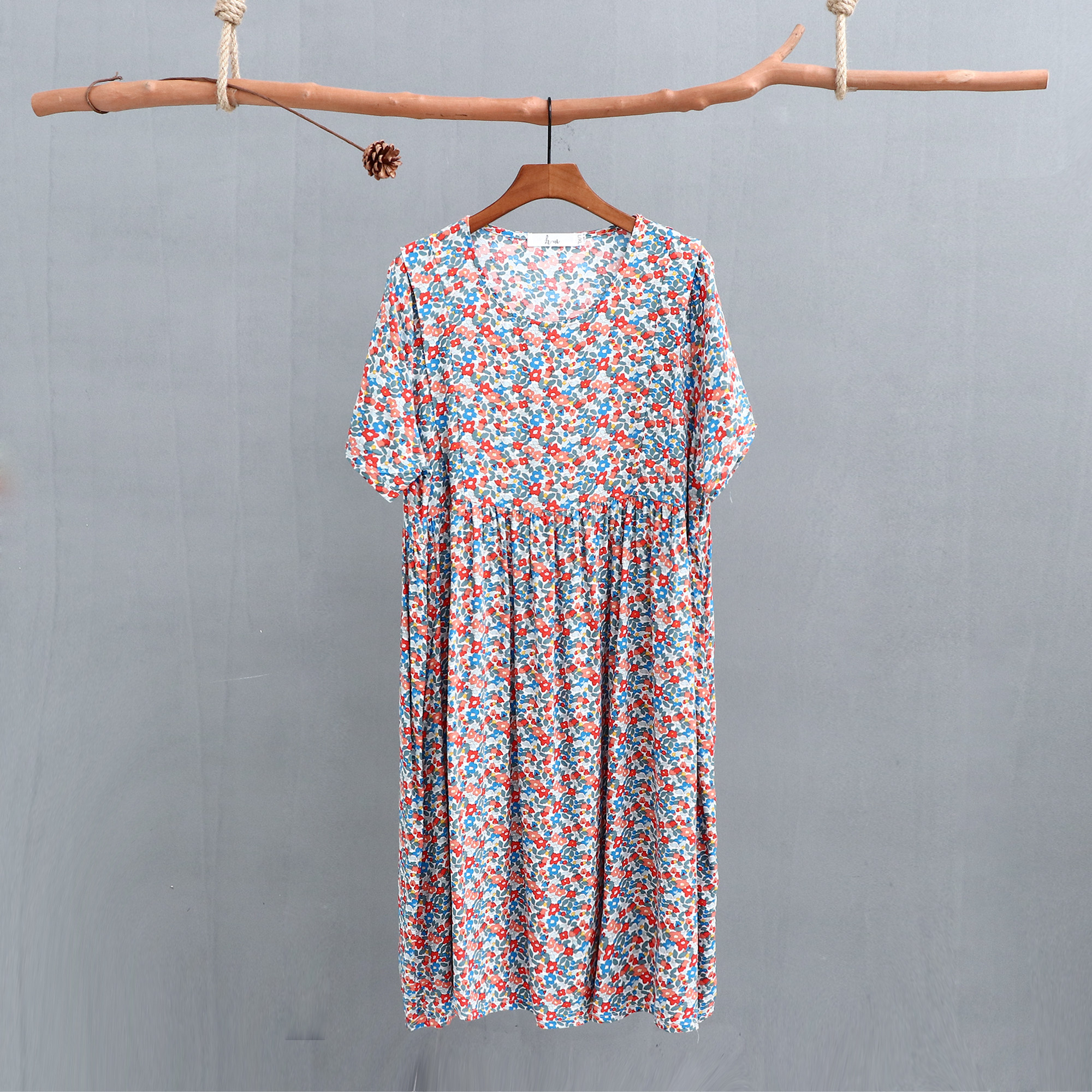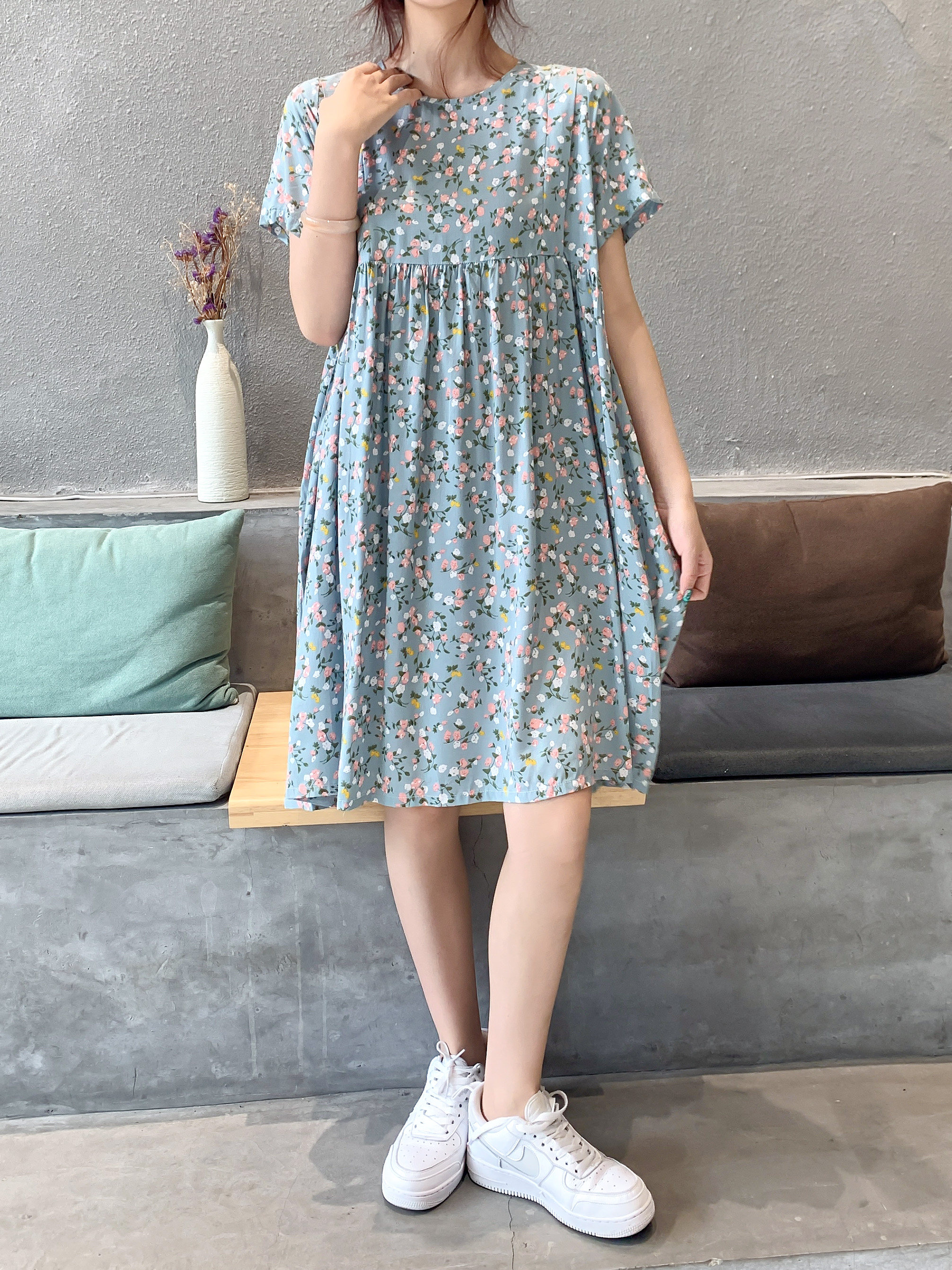 Летнее платье, модная юбка, короткий рукав, цветочный принт, большой размер, по фигуре