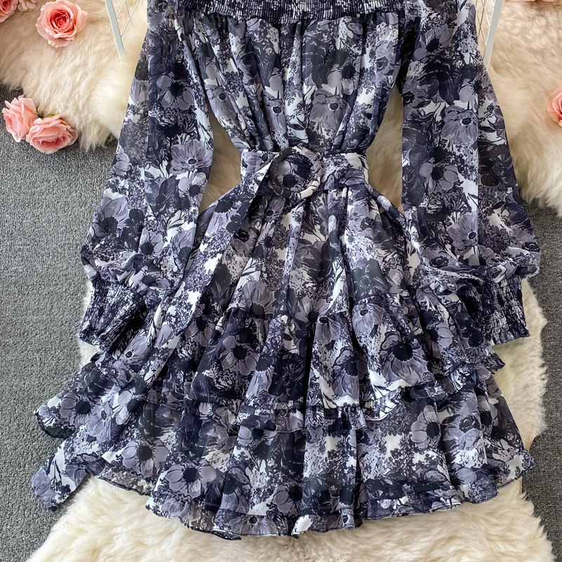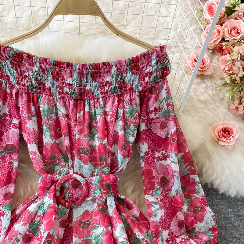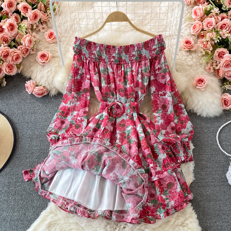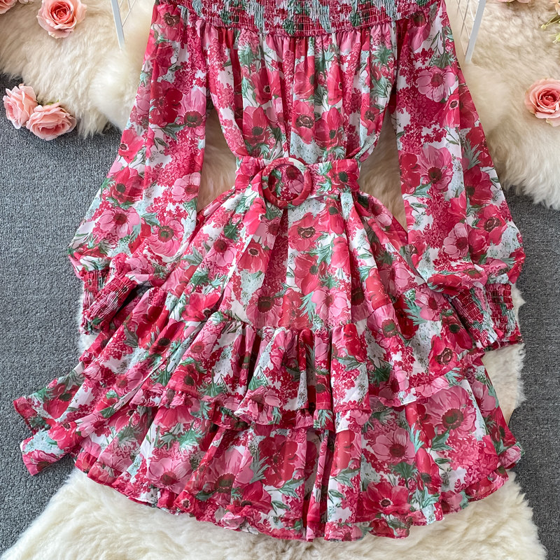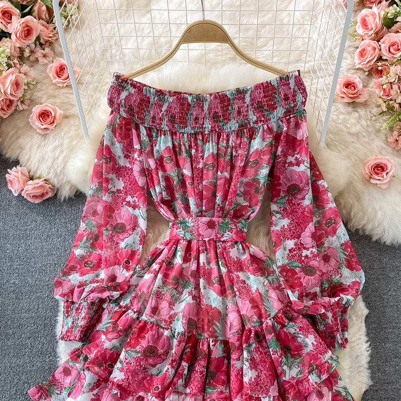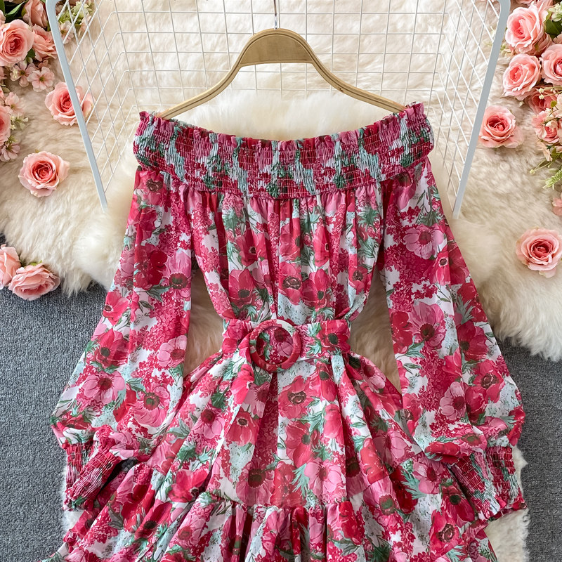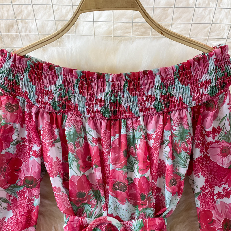 Лонгслив, приталенный корсет, юбка, открытые плечи, цветочный принт, осенний, рукава фонарики