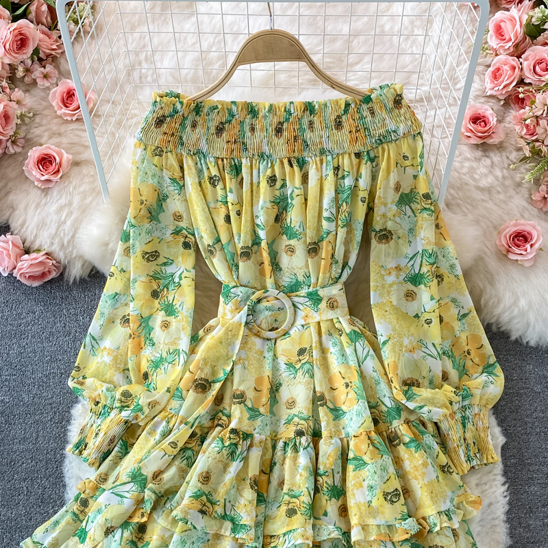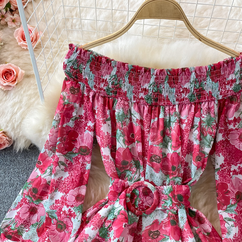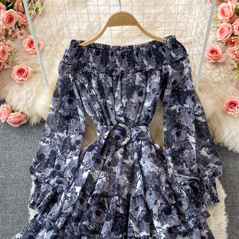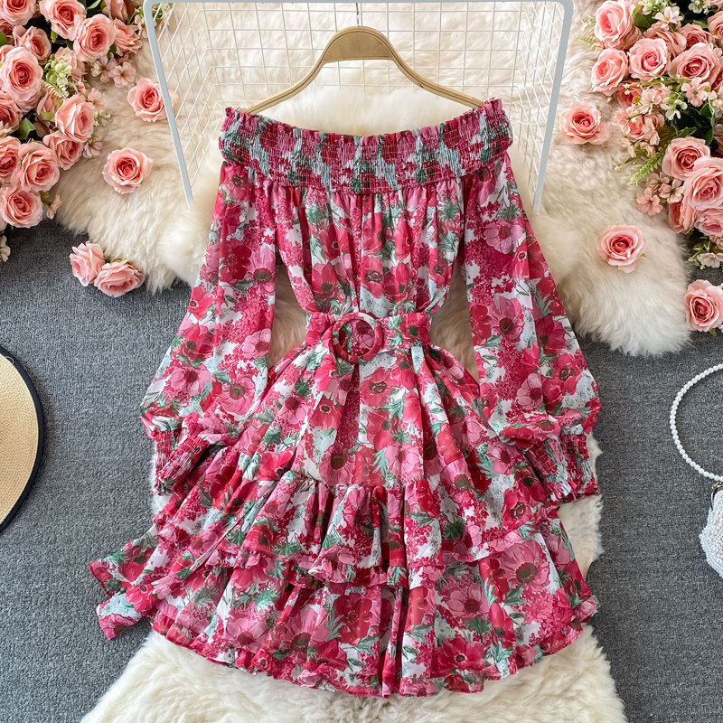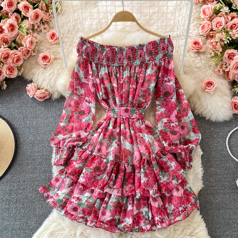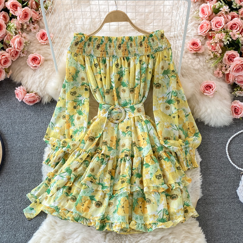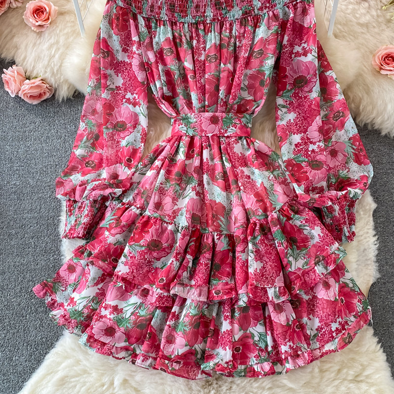 Лонгслив, приталенный корсет, юбка, открытые плечи, цветочный принт, осенний, рукава фонарики