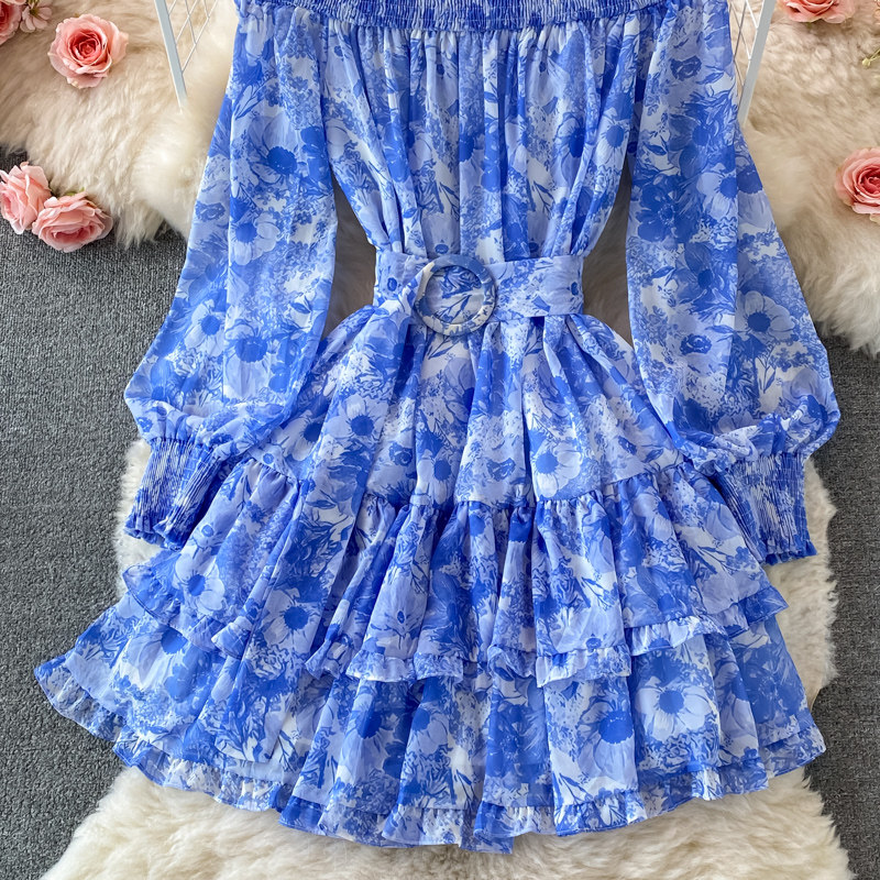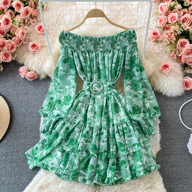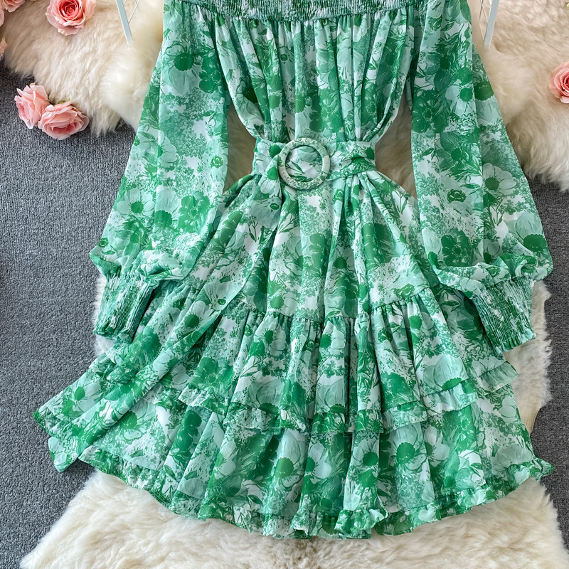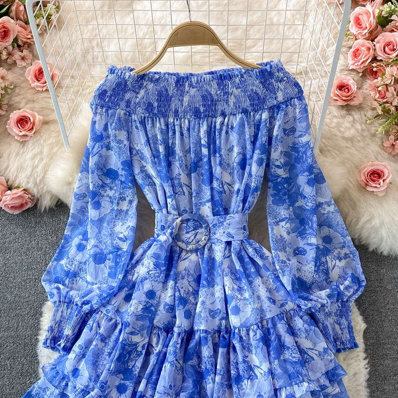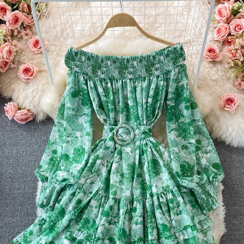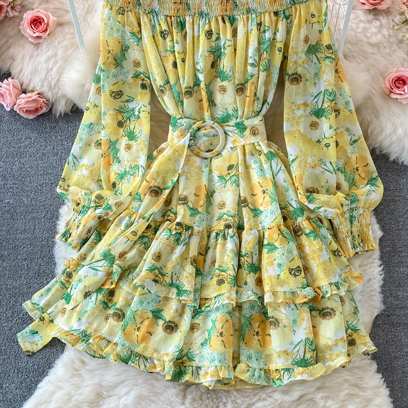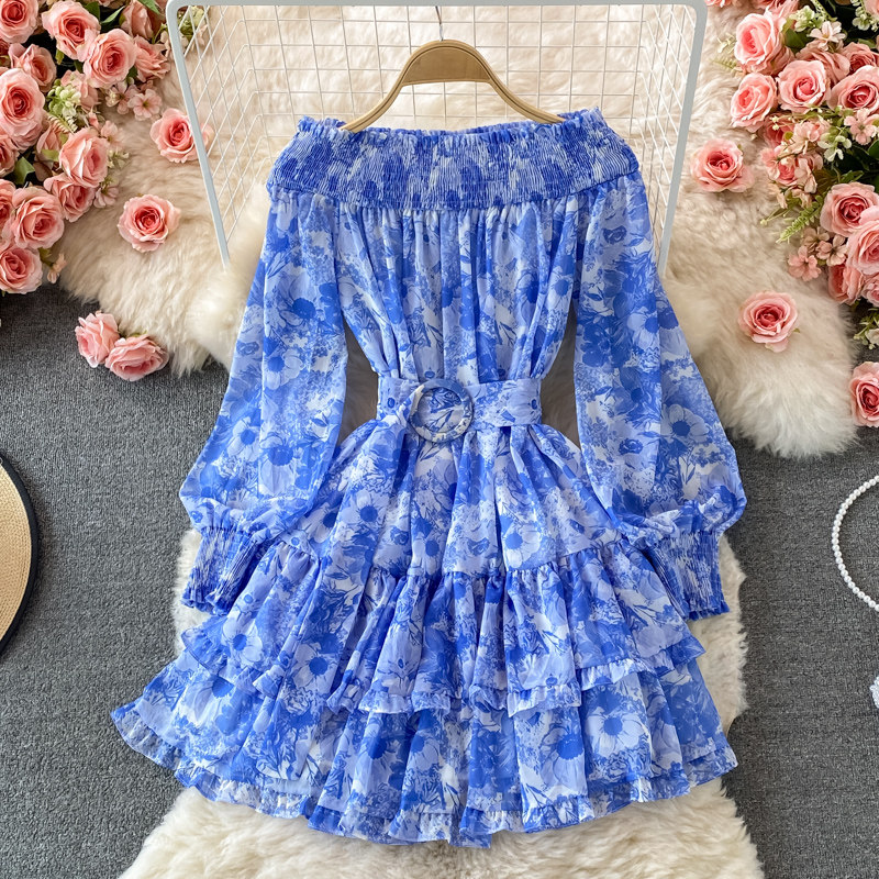 Лонгслив, приталенный корсет, юбка, открытые плечи, цветочный принт, осенний, рукава фонарики