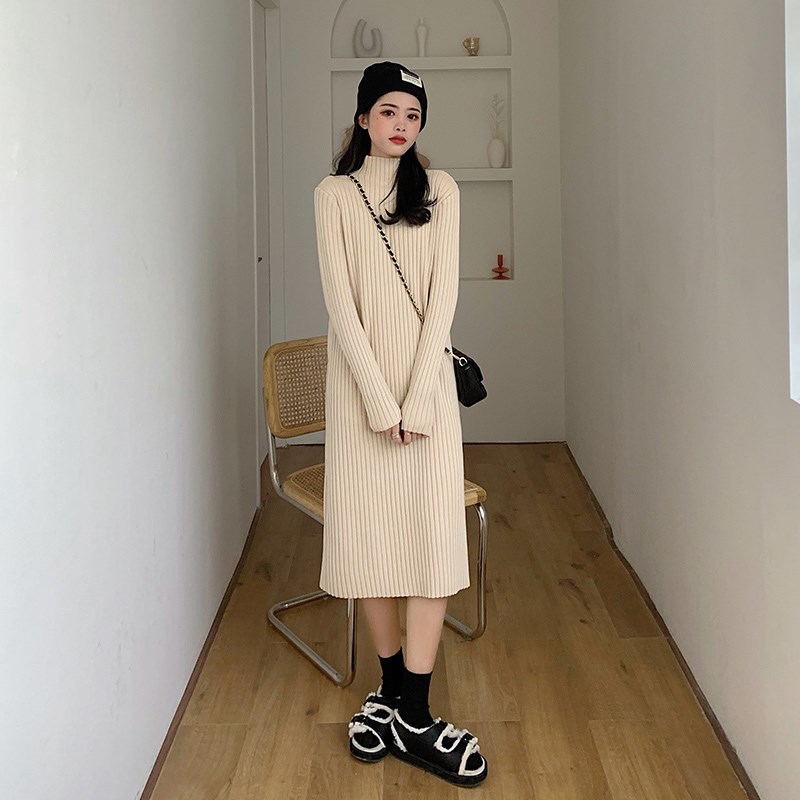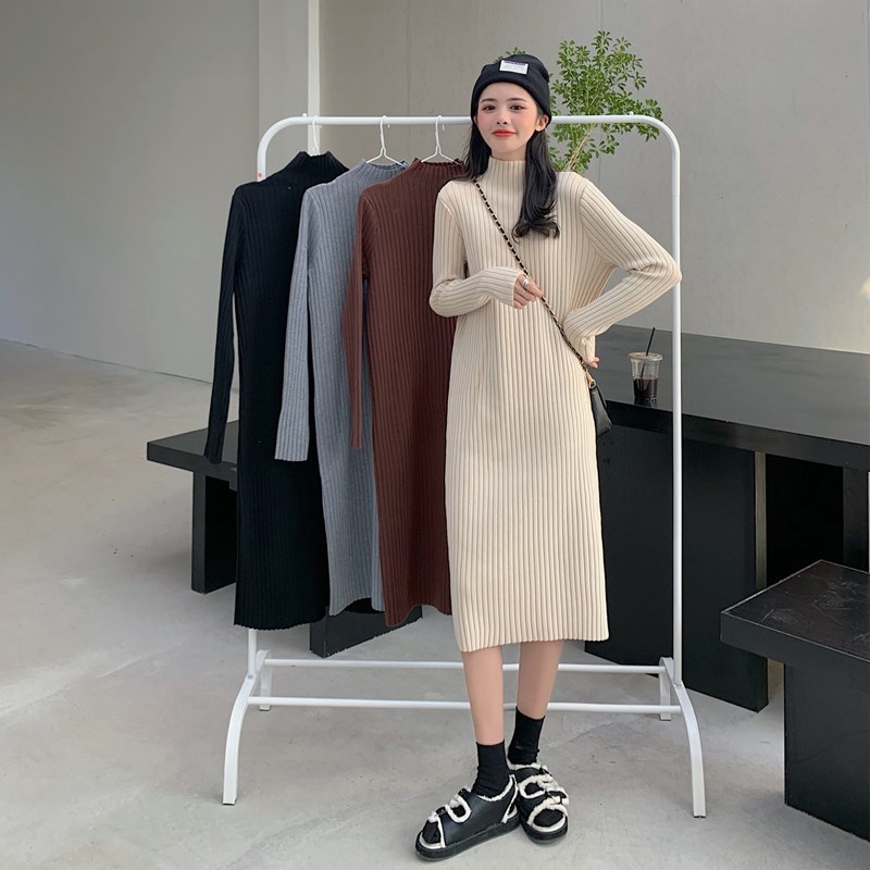 Трикотажный свитер, демисезонное платье, длинная юбка, яркий броский стиль, по фигуре