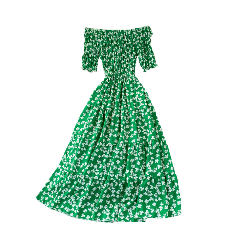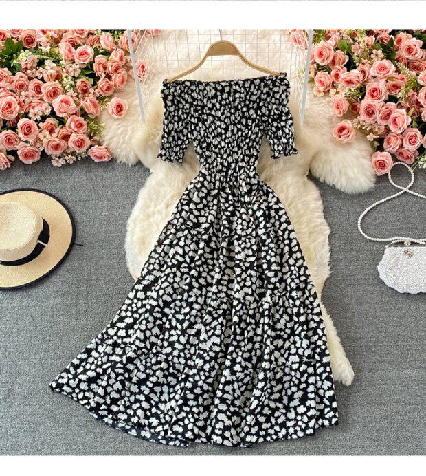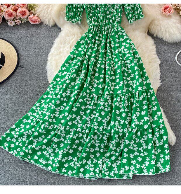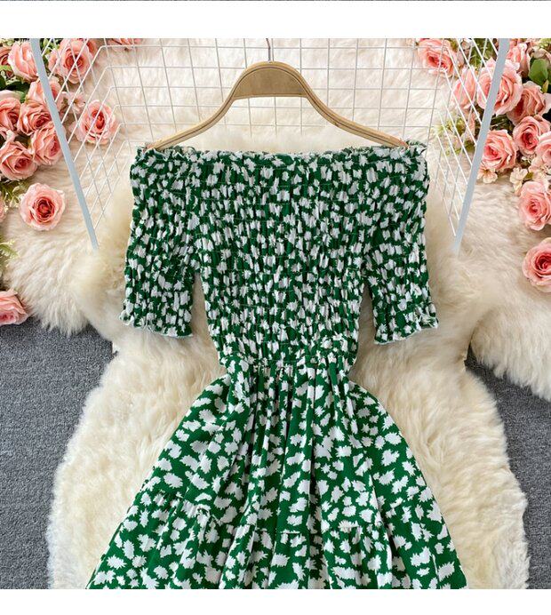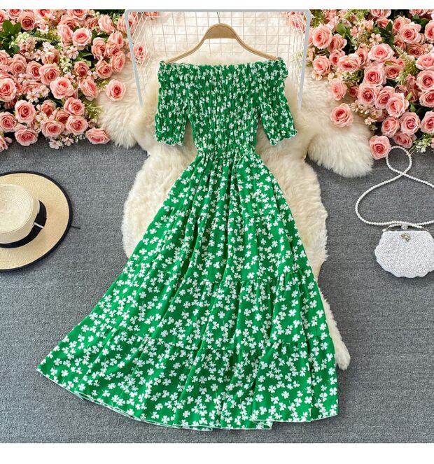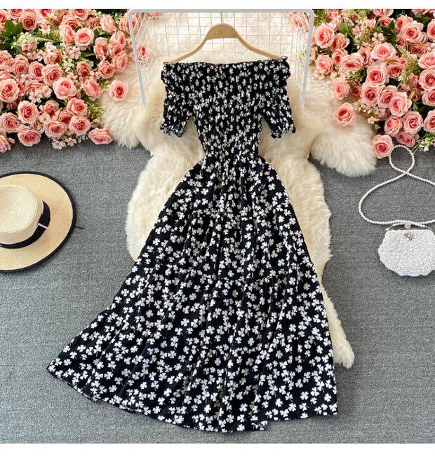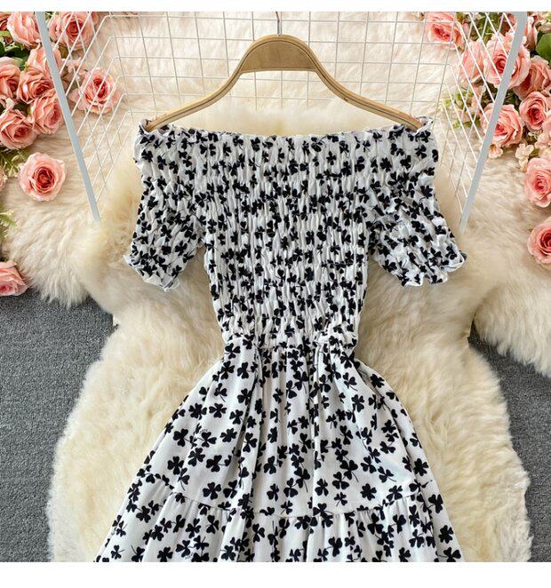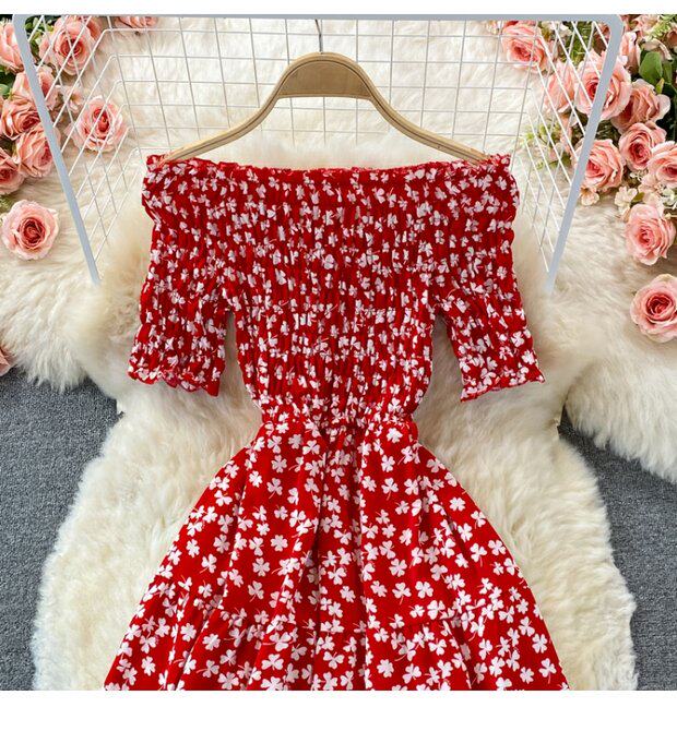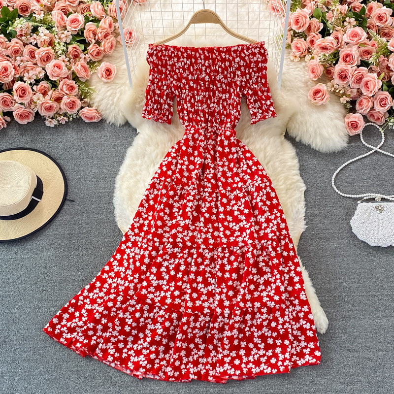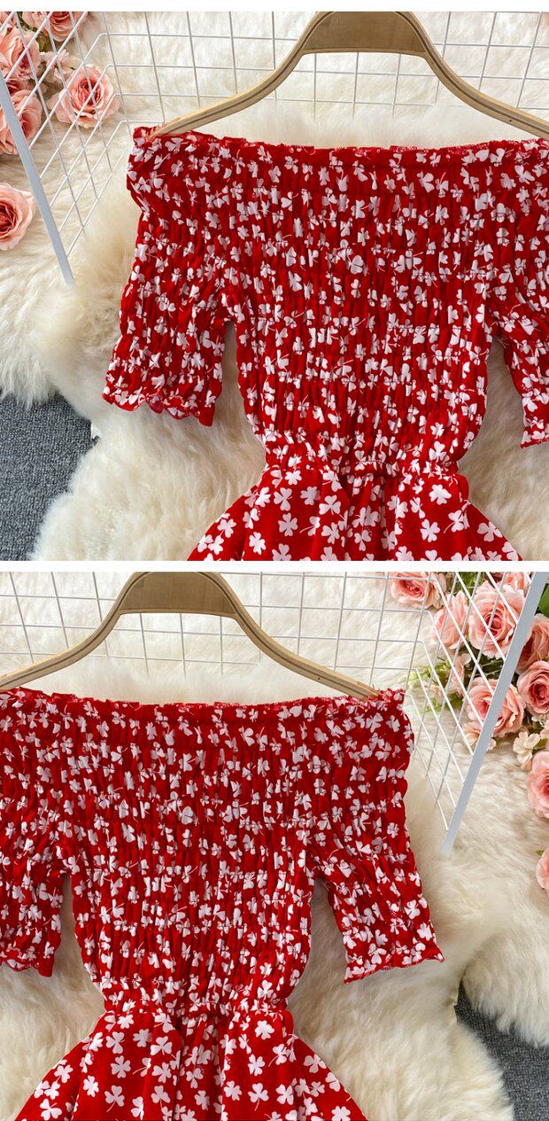 Мини-юбка, приталенное пляжное платье, корсет, летняя длинная юбка, открытые плечи, в цветочек, короткий рукав