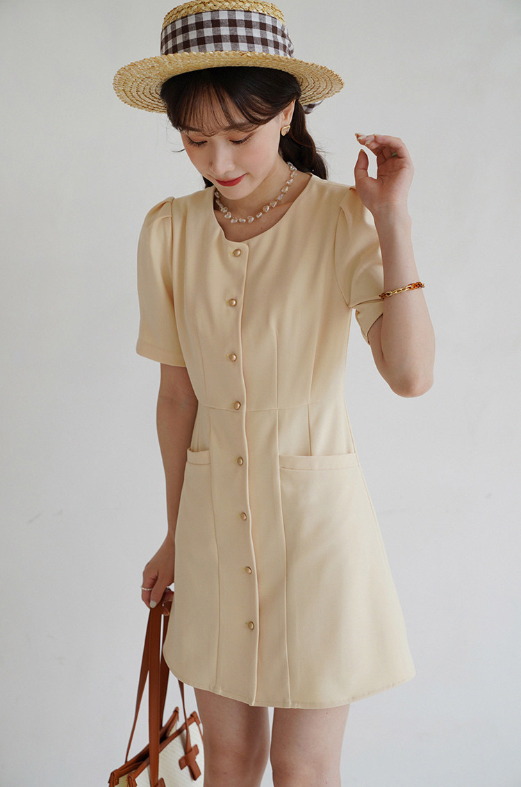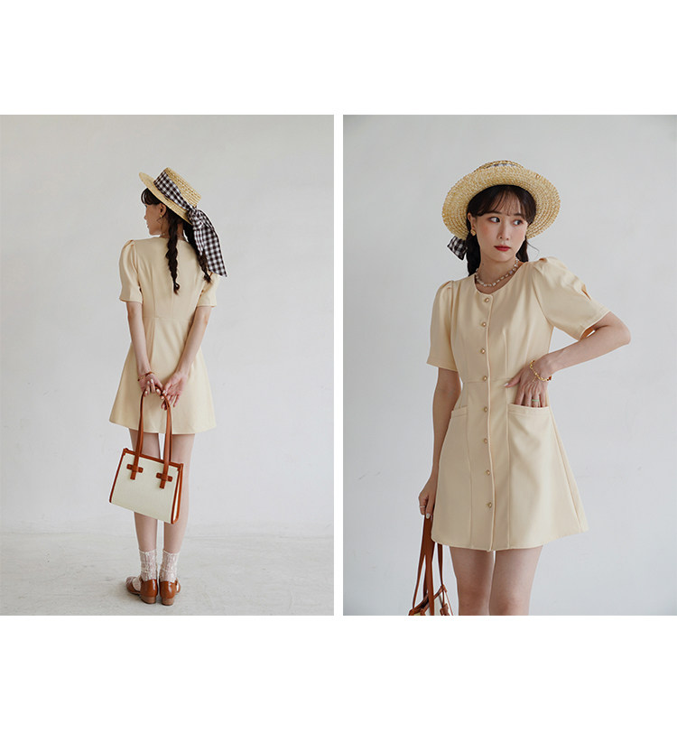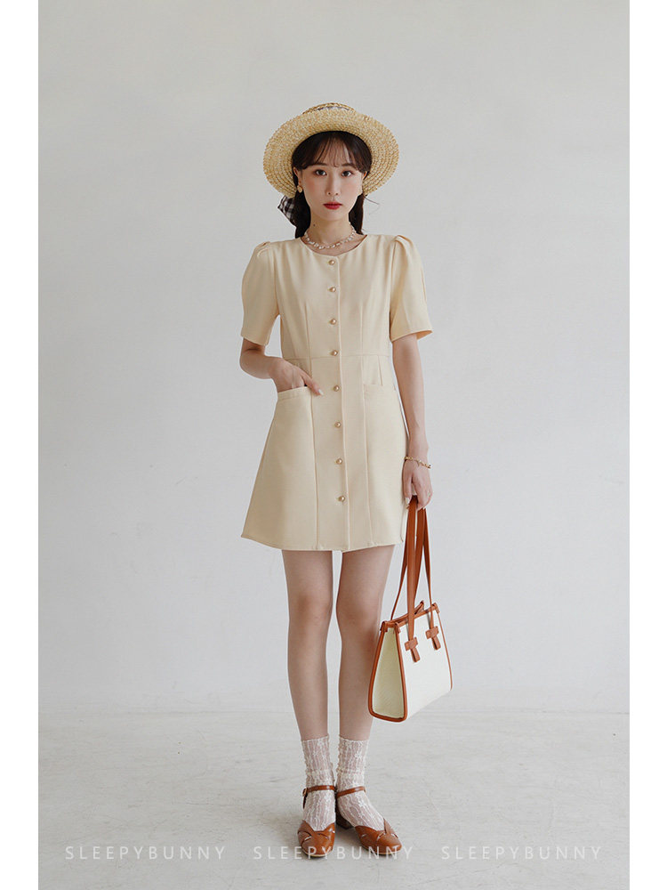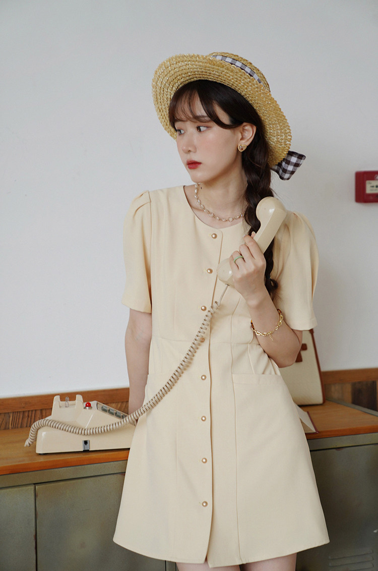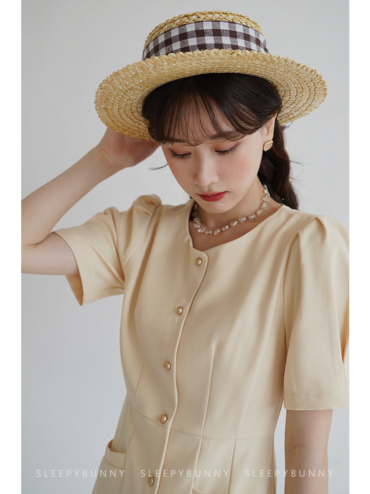 Платье с круглым воротником, ретро приталенный корсет, рубашка, короткий рукав, французский стиль