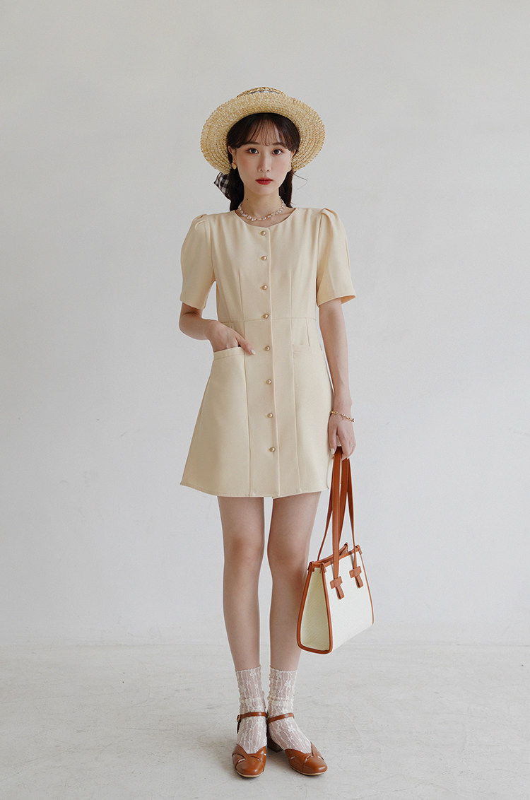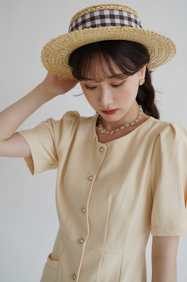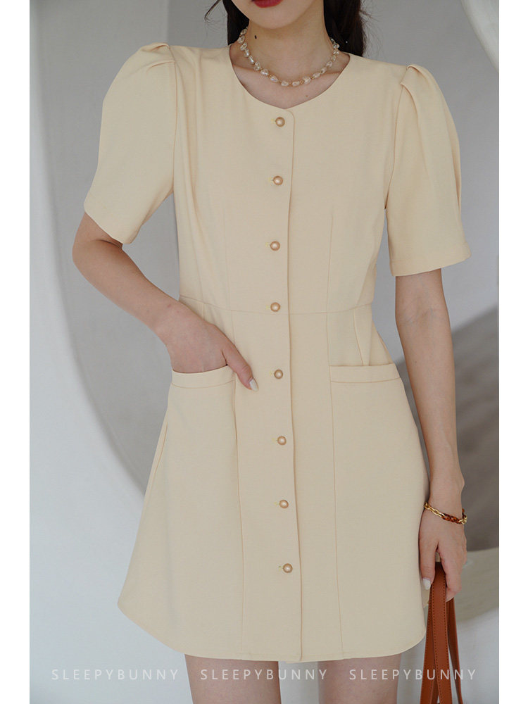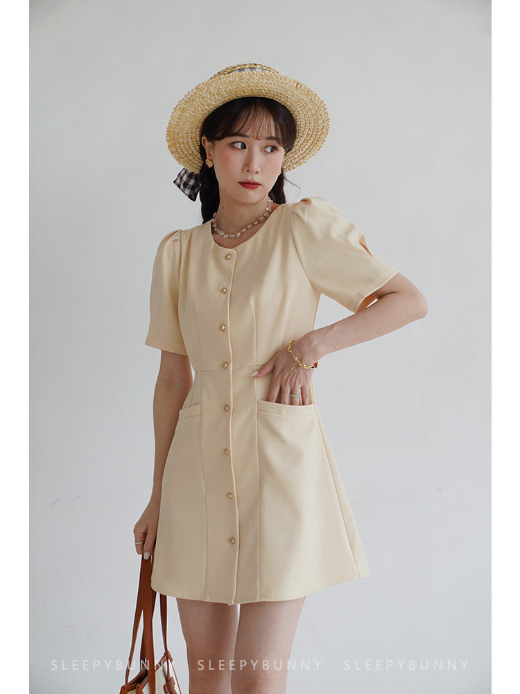 Платье с круглым воротником, ретро приталенный корсет, рубашка, короткий рукав, французский стиль