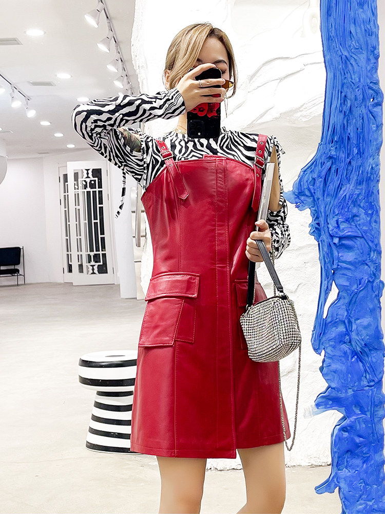 Демисезонное платье-комбинация, юбка, длинное платье, из натуральной кожи, свободный крой, длина миди