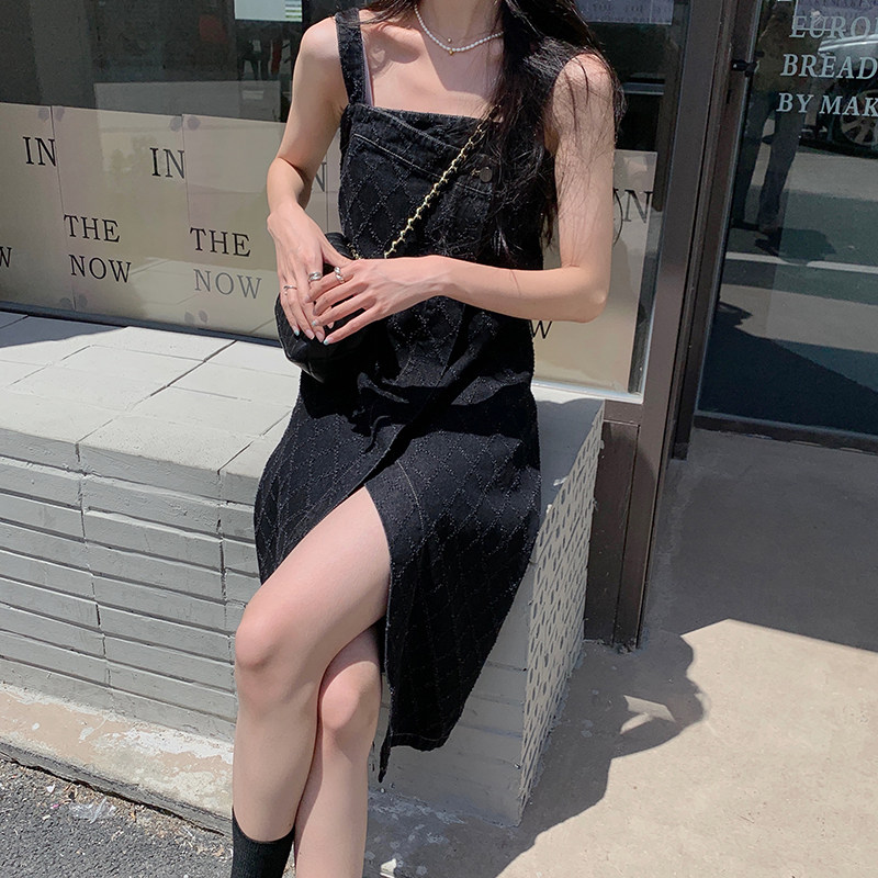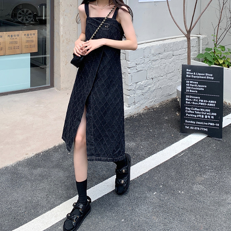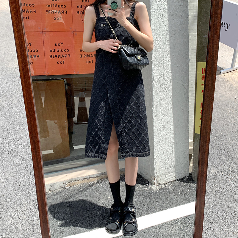 Осенняя ретро джинсовая юбка, платье-комбинация без рукавов, брендовое платье с рукавами, А-силуэт