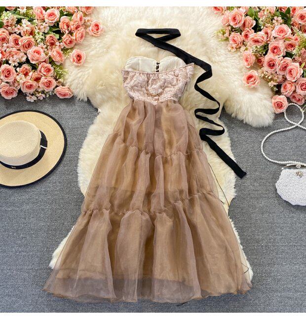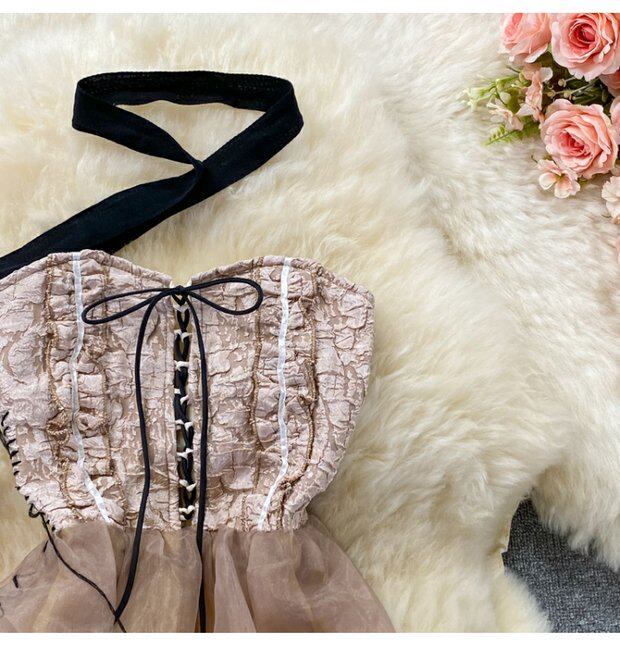 Элитный ретро топ без лямок, вечернее платье, французский ретро стиль, изысканный стиль
