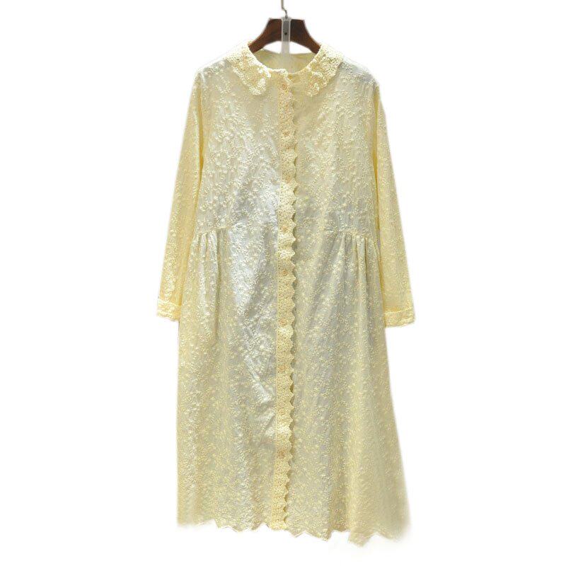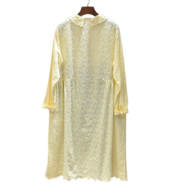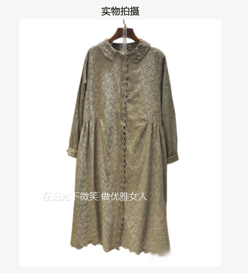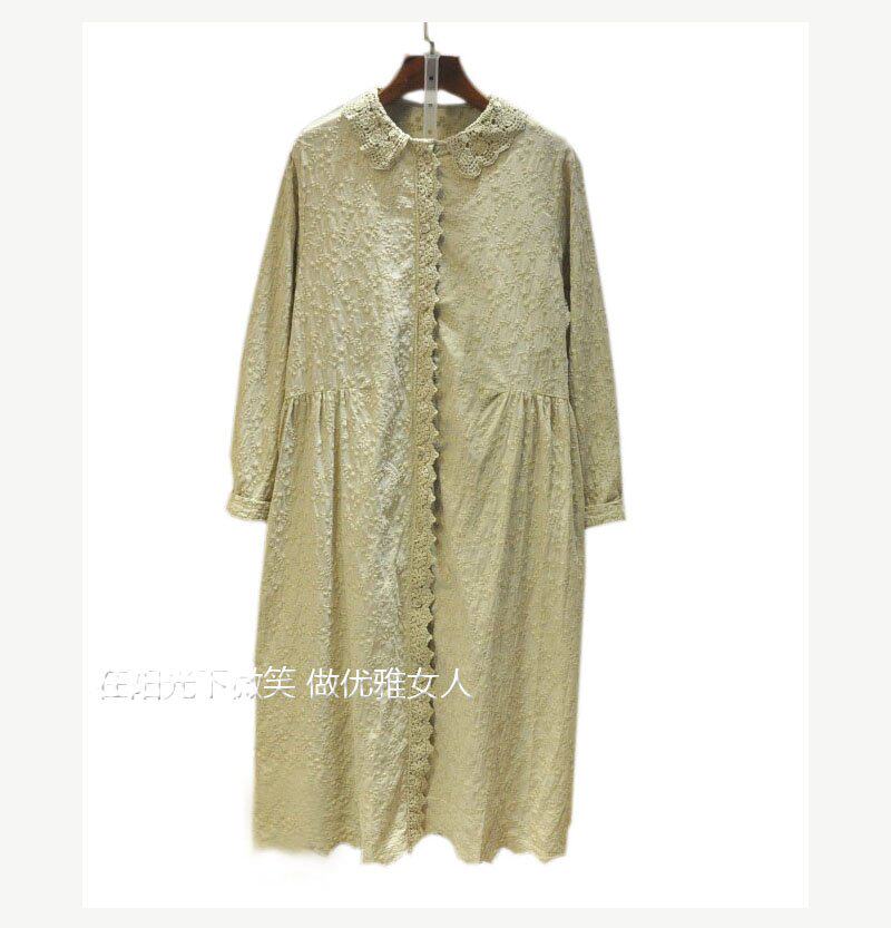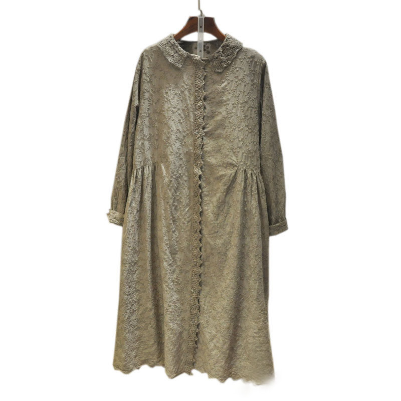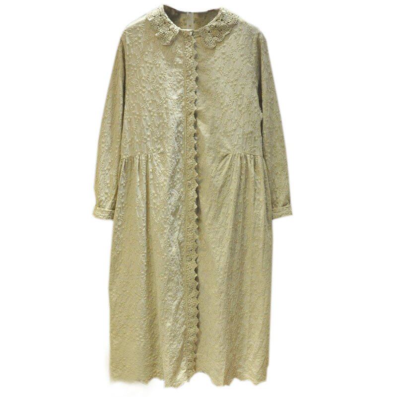 Кружевная базовая весенняя японская юбка, длинное платье, с вышивкой, коллекция 2021, свободный крой, средней длины, из хлопка и льна